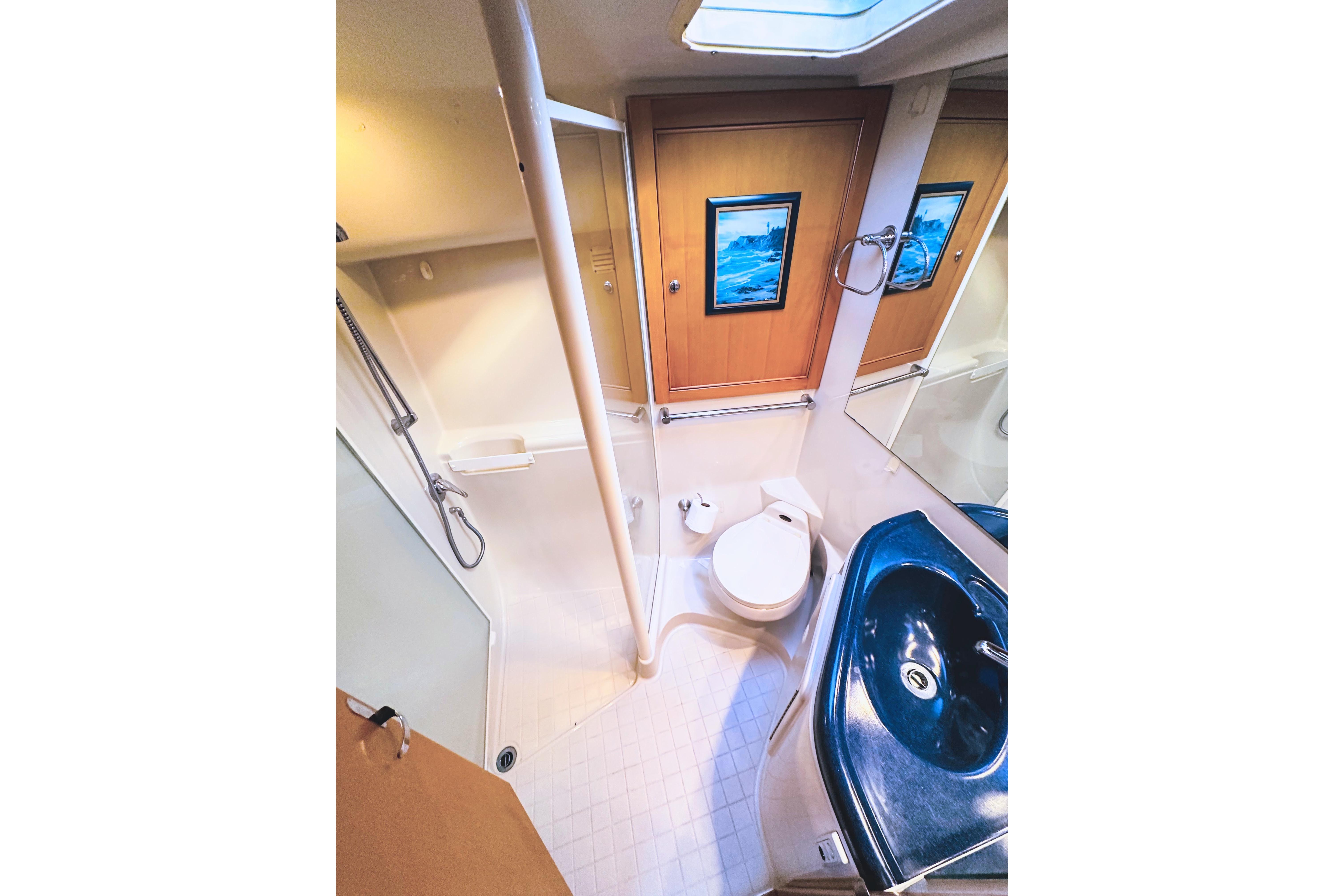 - TWO STATEROOMS + ENCLOSED HEAD WITH SEPARATE SHOWER – Ideal for family cruising or extended weekends