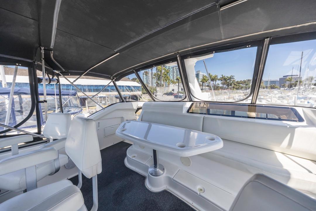 A large Flybridge and Aft Deck offer ample space for entertaining and relaxing.