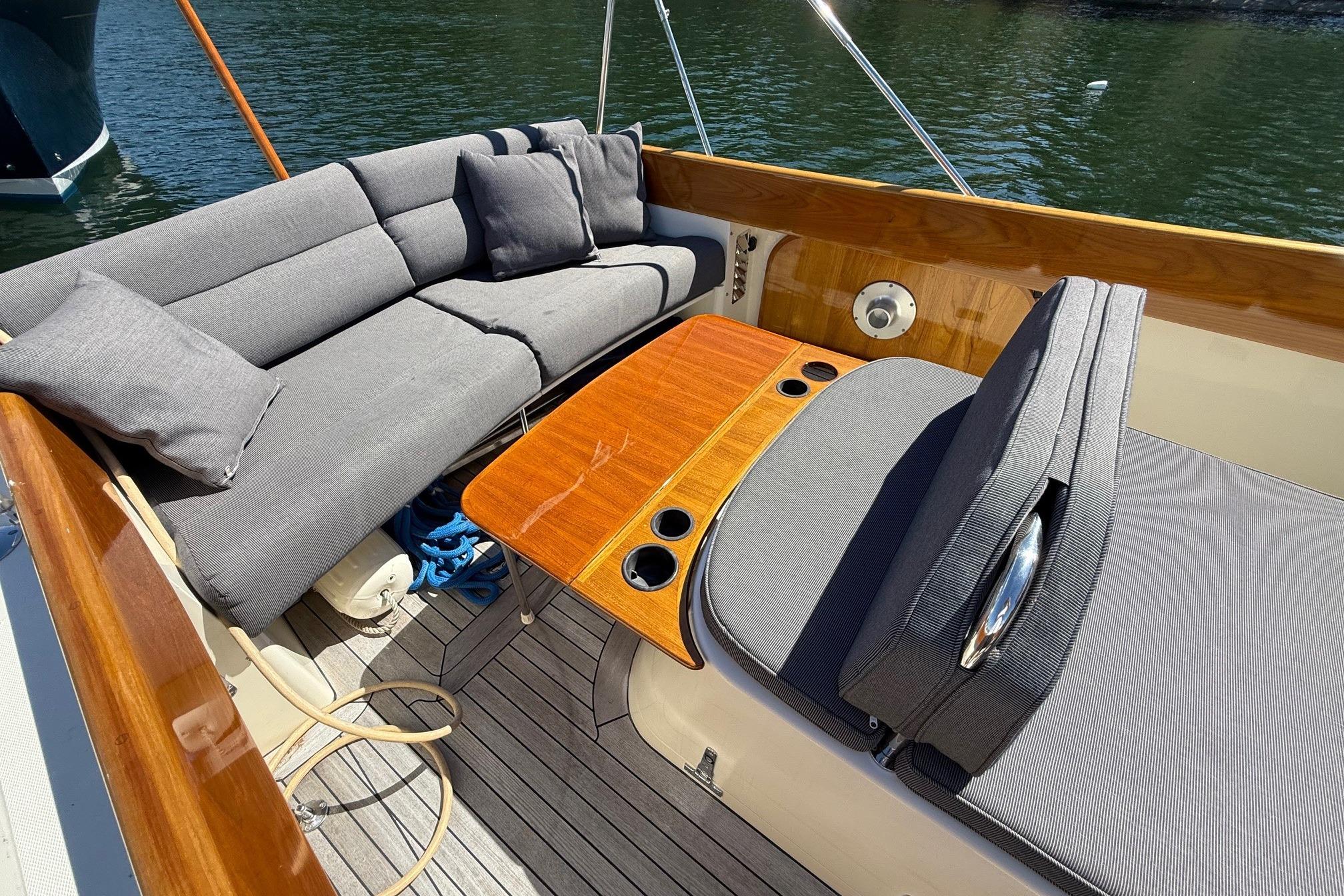 - Varnished teak cladding in Interior of cockpit, inside pilothouse and on entire dash.