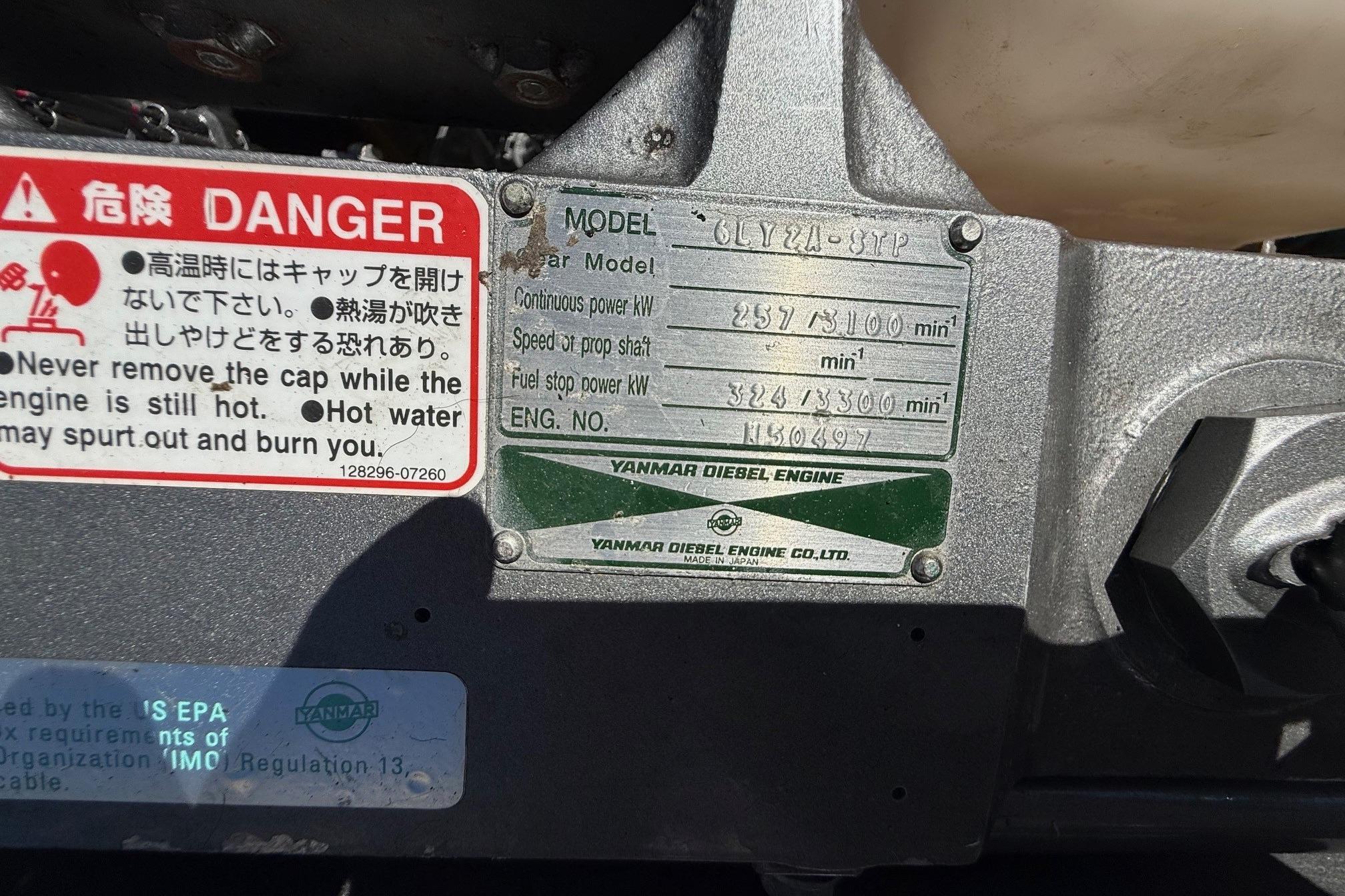 - Yanmar 6LY2-STP 420 HP diesel engine with Hamilton 292 Jet drive and twin disc transmission.
