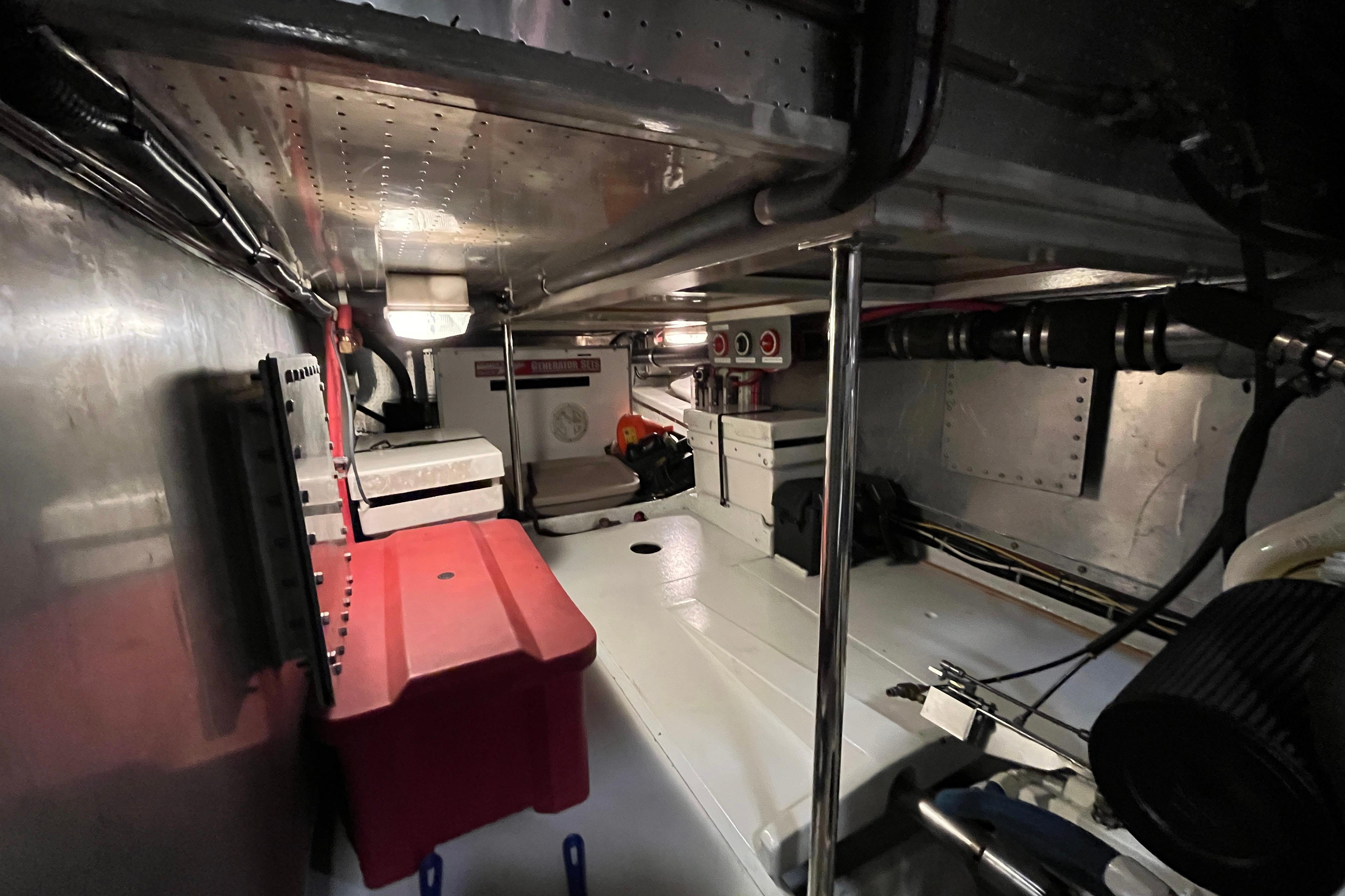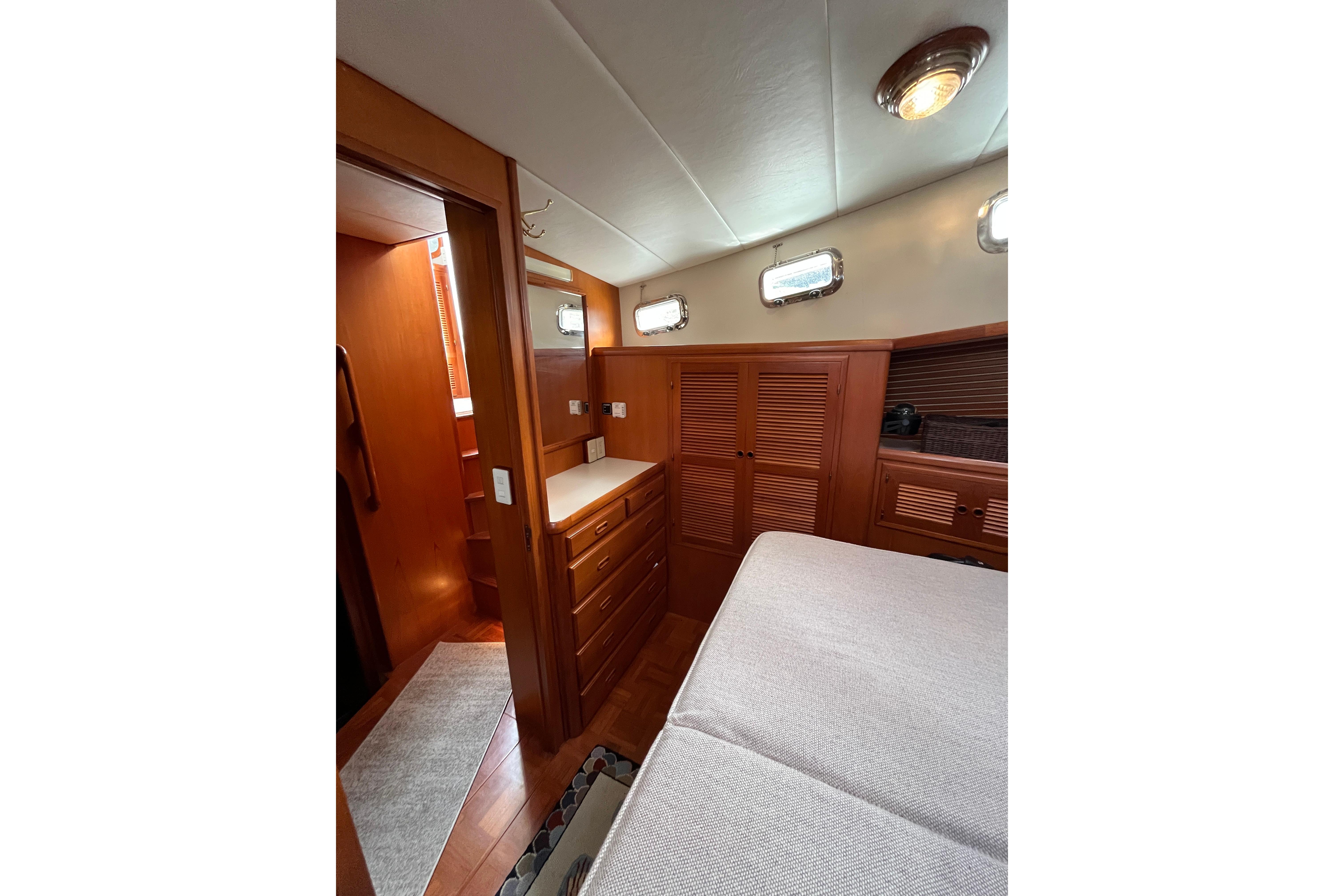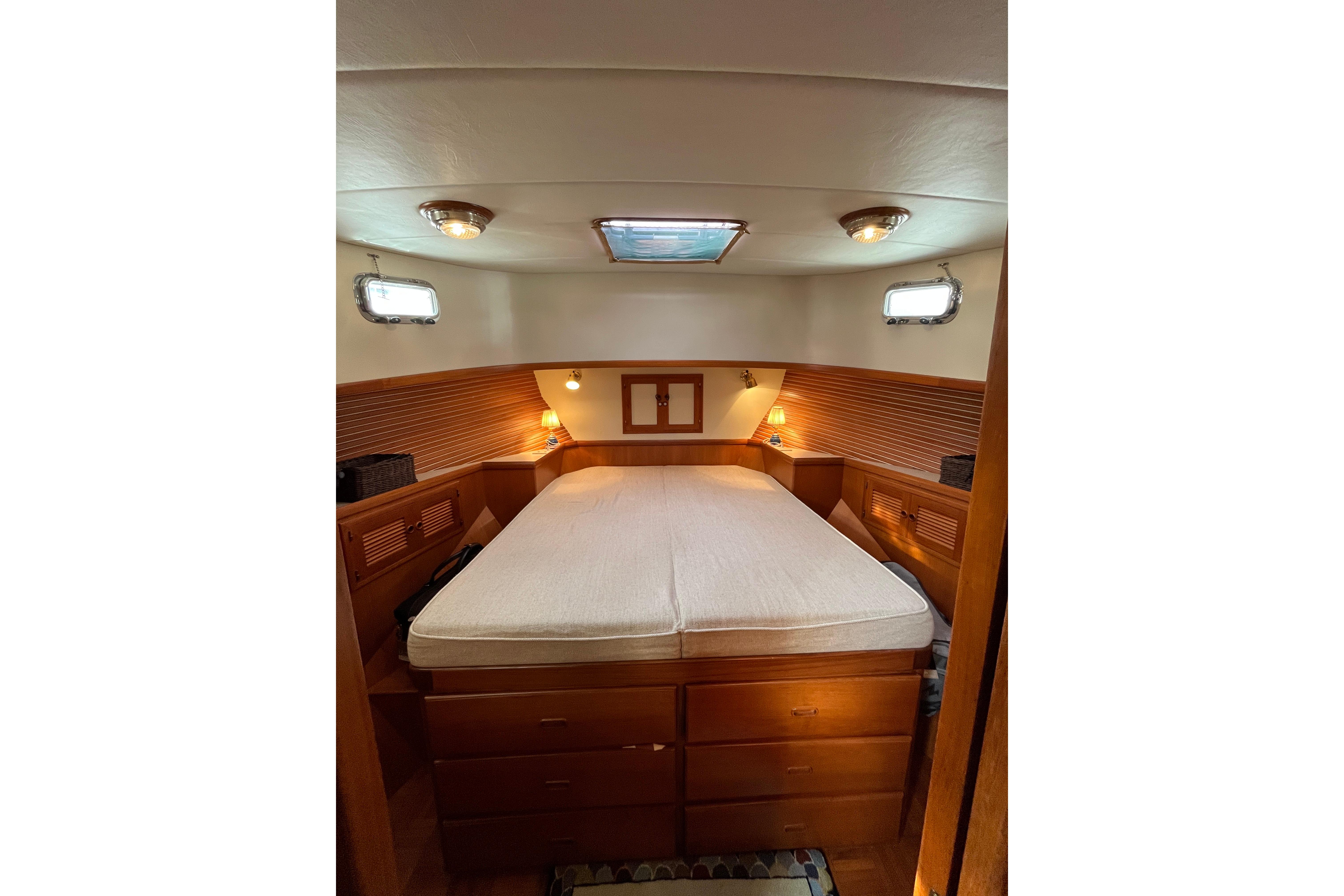 Down below the master cabin and head with separate shower is the ultimate in Captains quarters with a large centreline berth, tons of storage and easy access to the engine room if needed.