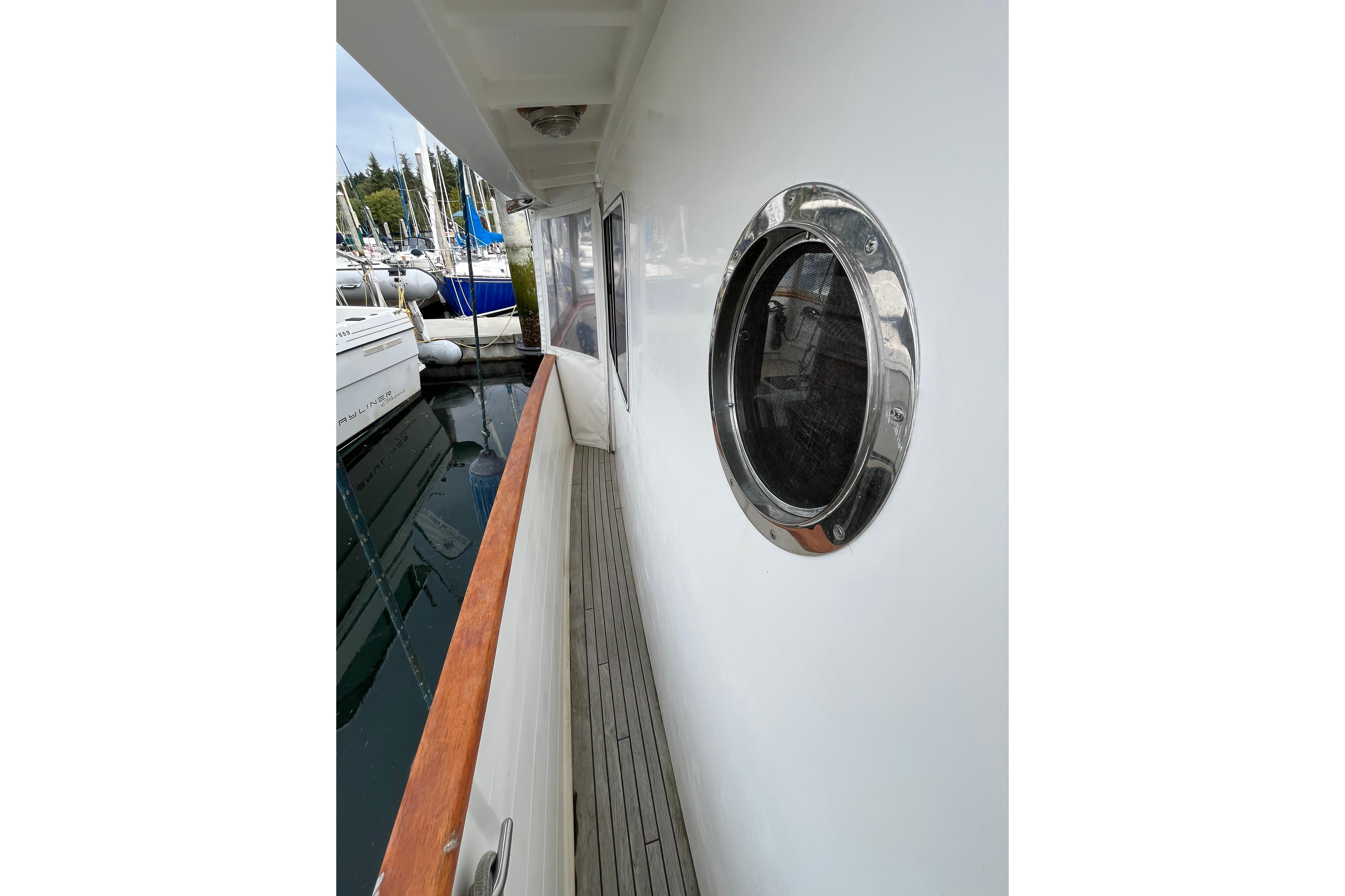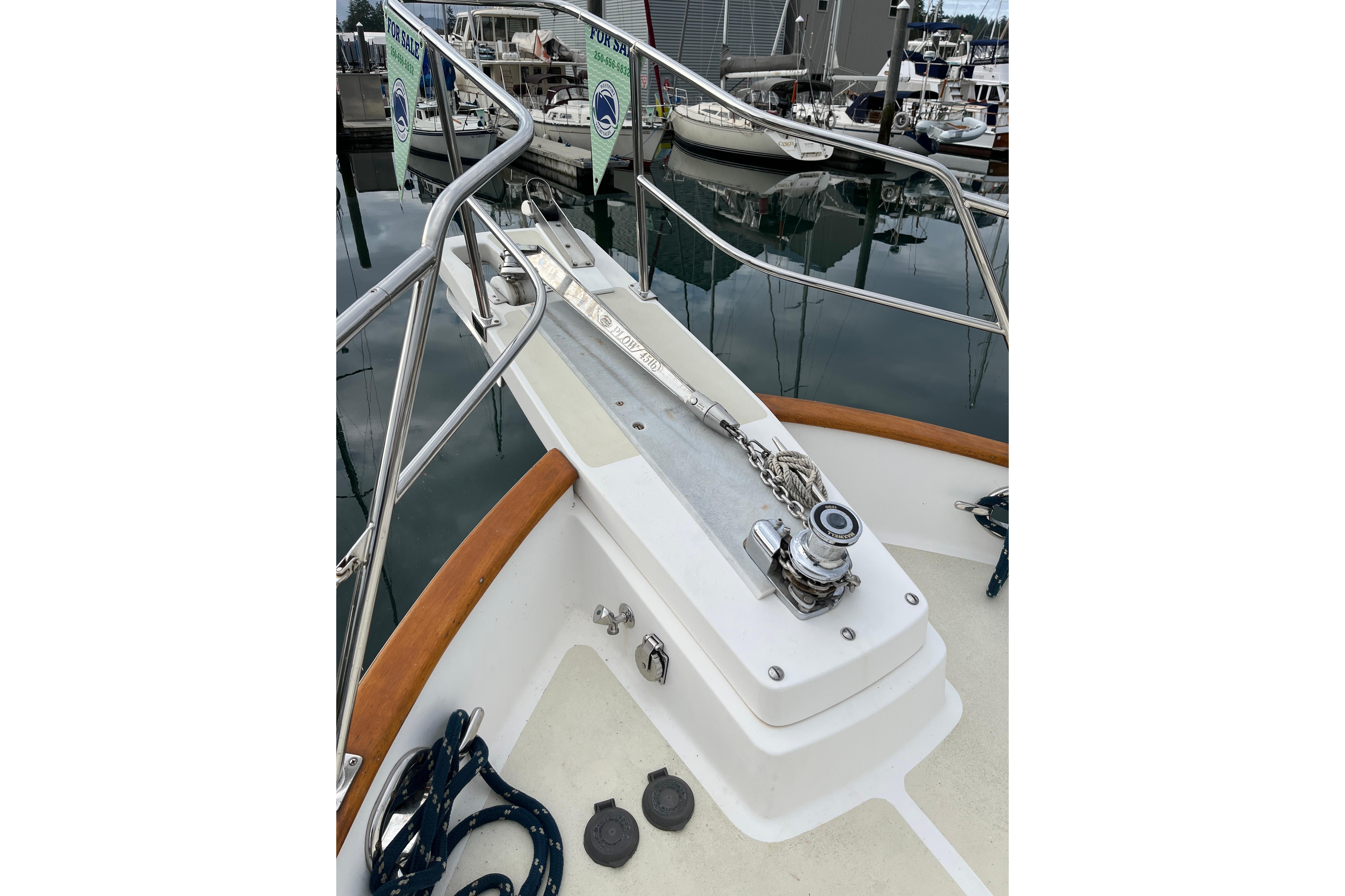 Fresh water kept, every element of this boat is superior. Powered by a single John Deere 115hp diesel housed in an engine room/workshop that offers standing headroom upon entry, these boats have unbeatable fuel efficiency capable of 2,400 nautical miles at 7.5 knots. The full displacement hull provides stability in all kinds of sea state yet she remains easily maneuverable thanks to the unique articulating rudder, large prop and bow thruster. The full walk-around deck design provides safety for the crew while they access the bow or come back to the fully enclosed aft deck.