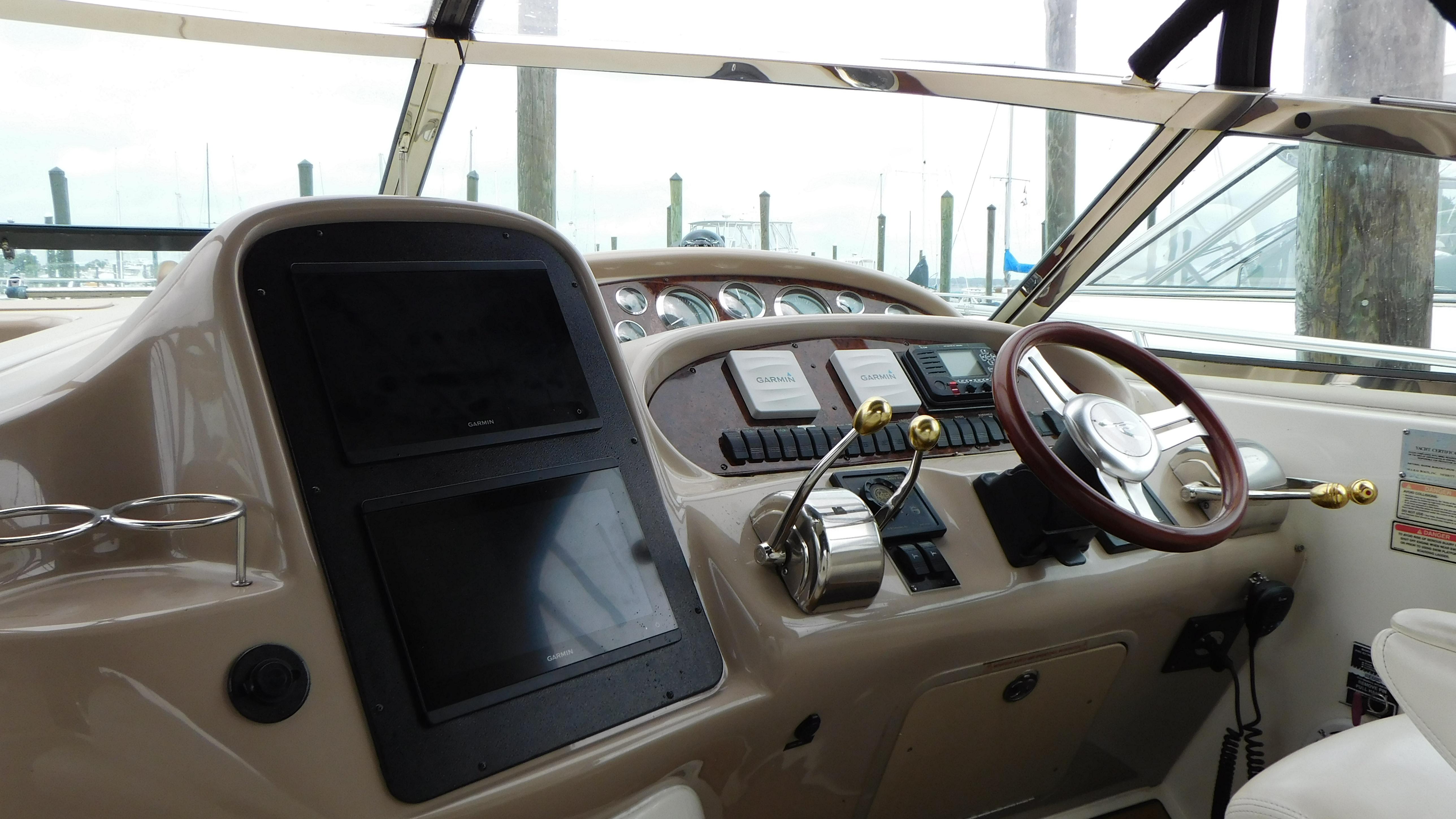 You will not find a nicer diesel-powered Sea Ray 380 for sale! This super low hour nearly mint vessel will not last long. The owner just added all new Garrmin touch screens, high-def radar, sat tv, sea decking and cockpit TV, cockpit refrigerator and so much more. The diesel powered 350hp Cat 3126 (non French) engines only have 540hours and generator with only 507hours. This rare vessel is truly turn key and in the water ready to go!