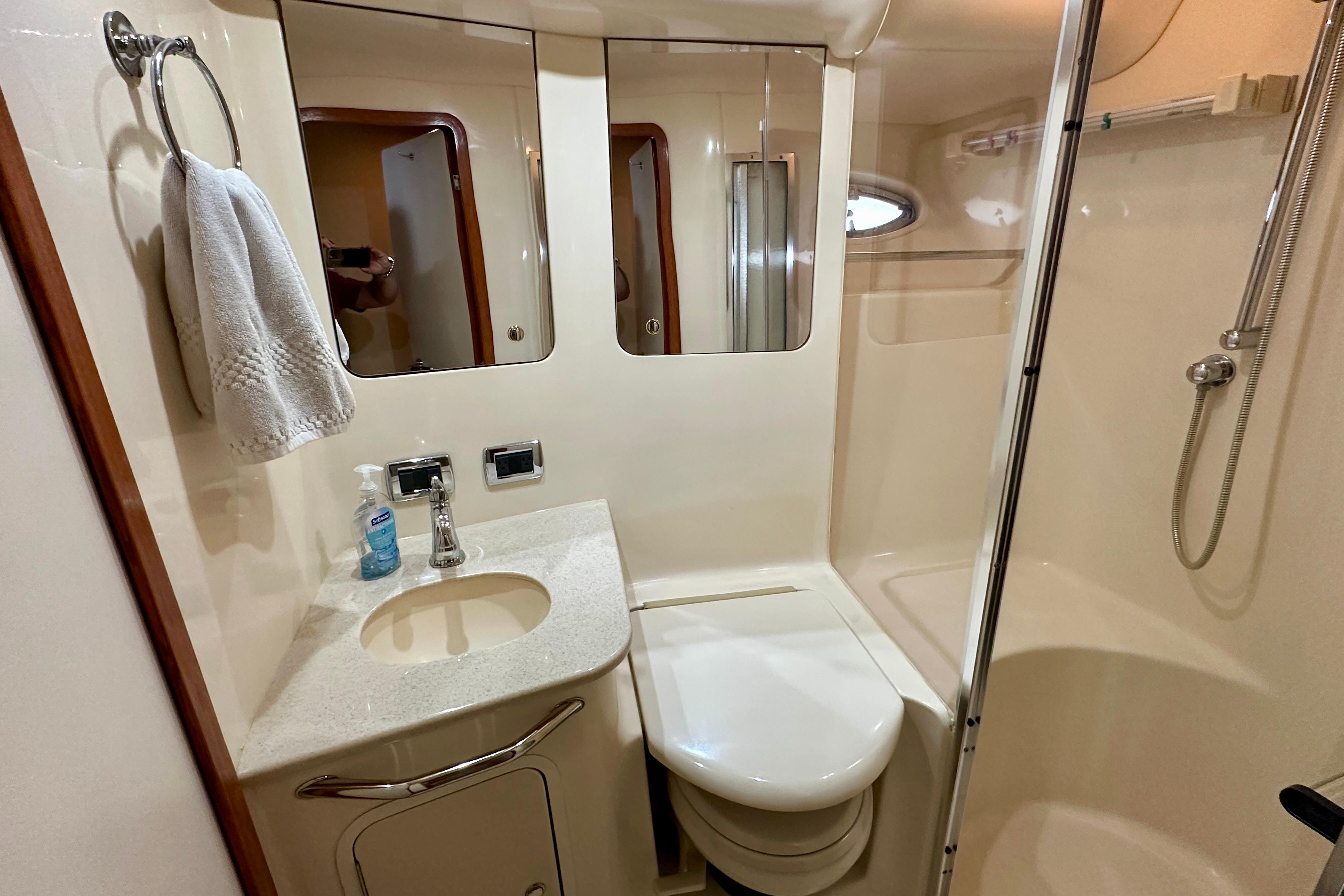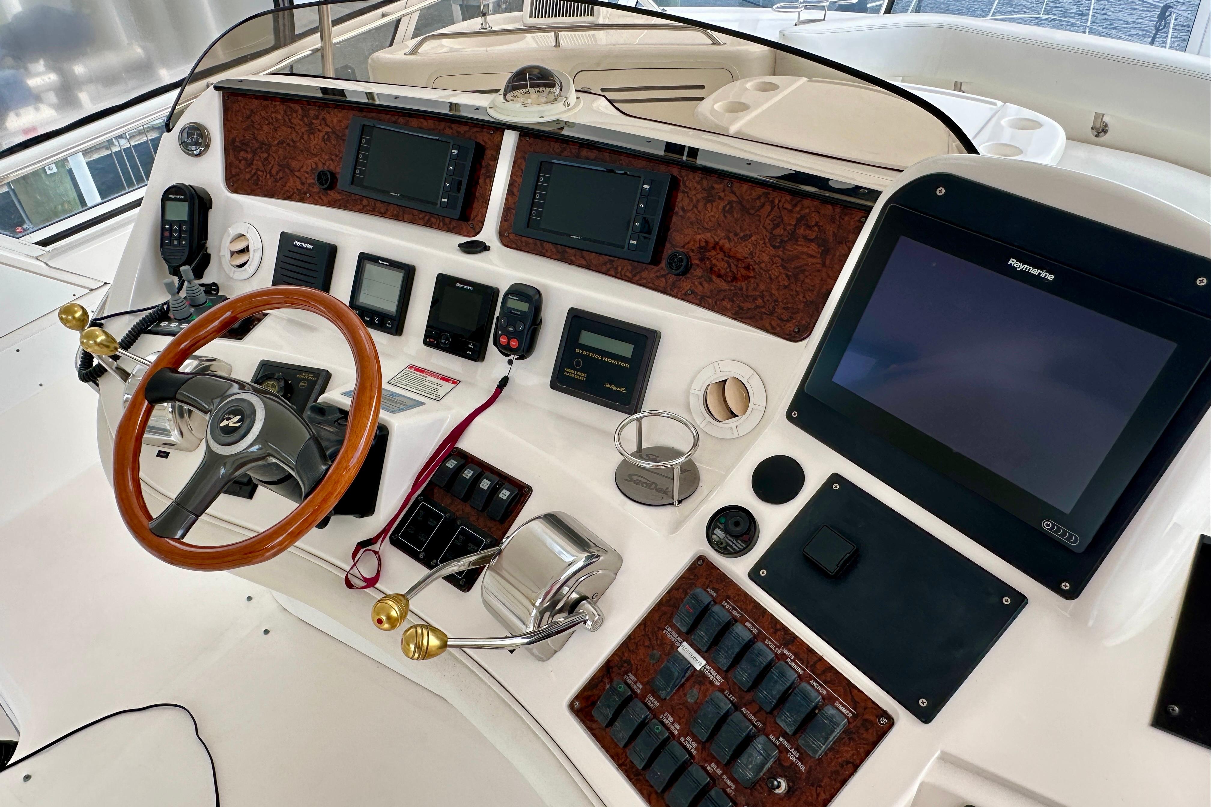 An incredibly well equipped 480 Sedan Bridge, with loads of important maintenance and upgrades that should put this boat at the top of your list. Owned by knowledgable boaters, “Life Is Good Today” is set up to cruise or stay on the hook for days at a time. Powered by twin Cummins QSM11's, she also has a hydraulic swim platform with tender, bow and stern thrusters, all new Raymarine electronics, water maker, inverter, washer/dryer combo and more. This boat has everything that you need!