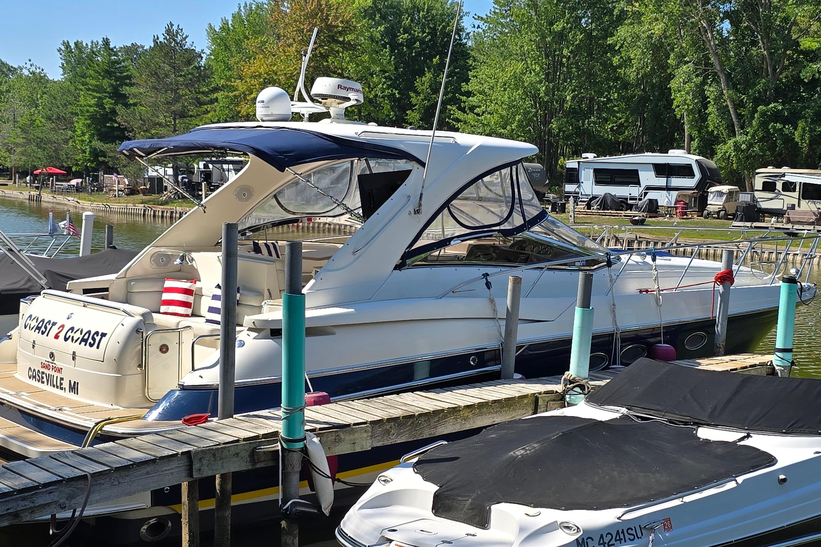 Freshwater / Great Lakes boat since new, this vessel features Twin Volvo Penta 8.1 GXI Gas Engines with only 671 original hours. Notable features include but are not limited to the following: Air-Conditioning & Heat (2-Units), (2) Heads (Vacuflush) w/Vanity/Sink/Stall-Shower, Central Vacuum System, Windlass Anchor w/Forward Pedal-Controls, Kohler 7.3 Generator (730-hours), Raymarine RL80C (Color) Radar w/GPS/Chartplotter, Cockpit Wet Bar w/Sink/Refrigerator/BBQ-Grill, Custom Canvas Package w/Screens, Premium Sound System, and MUCH more!