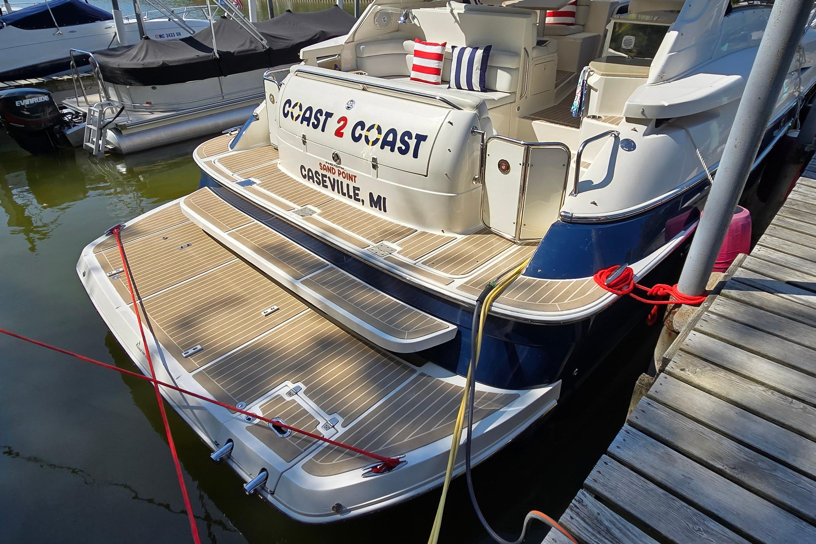 Freshwater / Great Lakes boat since new, this vessel features Twin Volvo Penta 8.1 GXI Gas Engines with only 671 original hours. Notable features include but are not limited to the following: Air-Conditioning & Heat (2-Units), (2) Heads (Vacuflush) w/Vanity/Sink/Stall-Shower, Central Vacuum System, Windlass Anchor w/Forward Pedal-Controls, Kohler 7.3 Generator (730-hours), Raymarine RL80C (Color) Radar w/GPS/Chartplotter, Cockpit Wet Bar w/Sink/Refrigerator/BBQ-Grill, Custom Canvas Package w/Screens, Premium Sound System, and MUCH more!