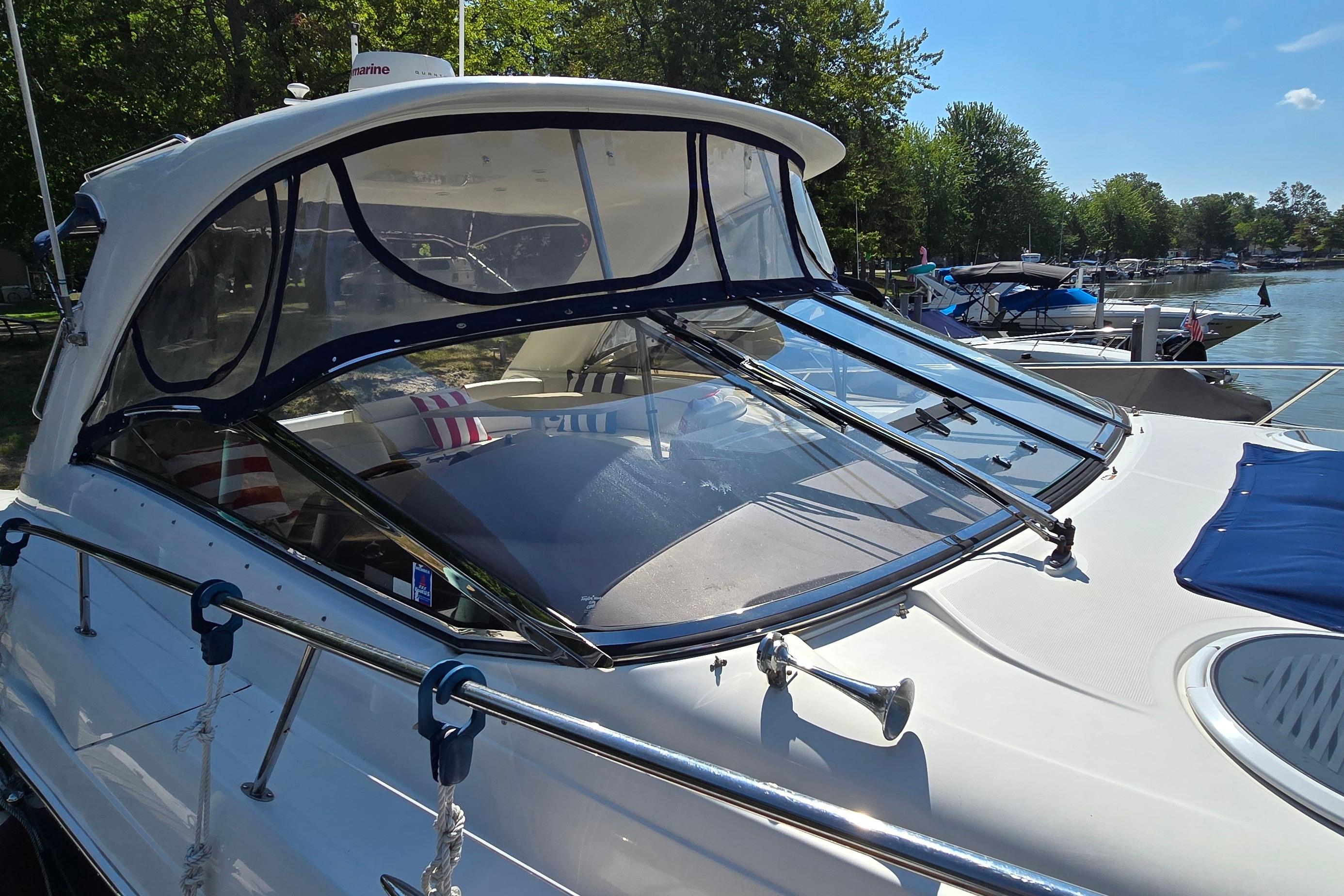 Freshwater / Great Lakes boat since new, this vessel features Twin Volvo Penta 8.1 GXI Gas Engines with only 671 original hours. Notable features include but are not limited to the following: Air-Conditioning & Heat (2-Units), (2) Heads (Vacuflush) w/Vanity/Sink/Stall-Shower, Central Vacuum System, Windlass Anchor w/Forward Pedal-Controls, Kohler 7.3 Generator (730-hours), Raymarine RL80C (Color) Radar w/GPS/Chartplotter, Cockpit Wet Bar w/Sink/Refrigerator/BBQ-Grill, Custom Canvas Package w/Screens, Premium Sound System, and MUCH more!