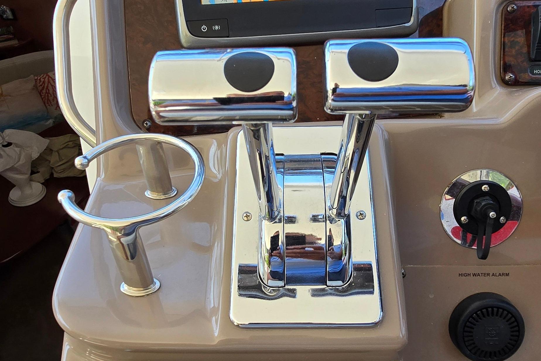 Freshwater / Great Lakes boat since new, this vessel features Twin Volvo Penta 8.1 GXI Gas Engines with only 671 original hours. Notable features include but are not limited to the following: Air-Conditioning & Heat (2-Units), (2) Heads (Vacuflush) w/Vanity/Sink/Stall-Shower, Central Vacuum System, Windlass Anchor w/Forward Pedal-Controls, Kohler 7.3 Generator (730-hours), Raymarine RL80C (Color) Radar w/GPS/Chartplotter, Cockpit Wet Bar w/Sink/Refrigerator/BBQ-Grill, Custom Canvas Package w/Screens, Premium Sound System, and MUCH more!