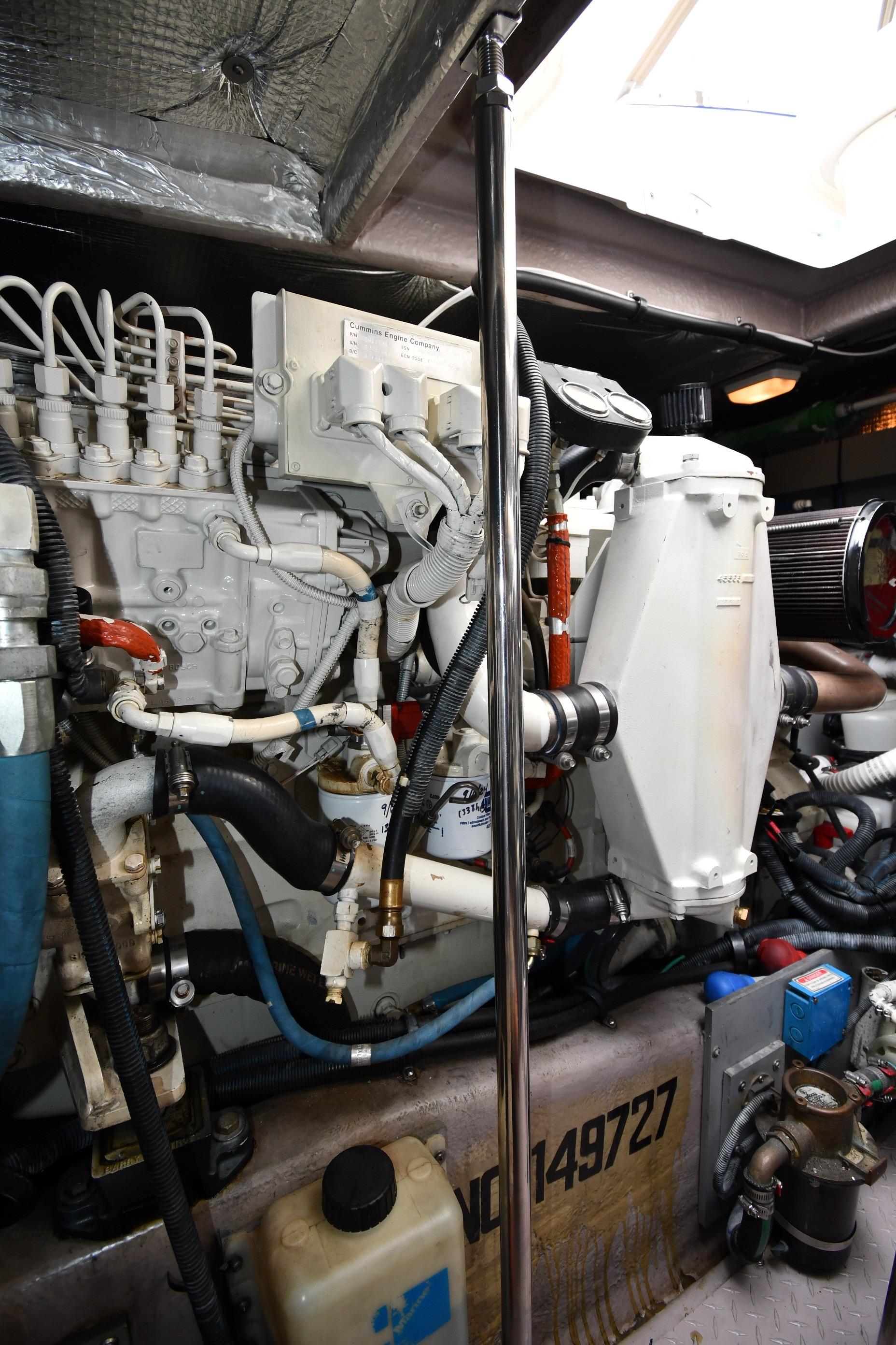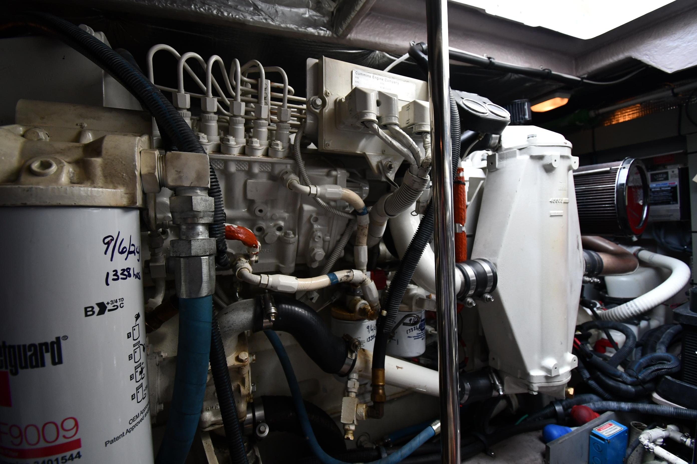 Broker Notes: 2023 Marine Survey on file - recent oil samples / 1000 hr service records on file. Desirable Cummins Electronic Engines, Cockpit AC/Heat, Upgraded Cherry Interior, Underwater Lights, Forward Bow Sun-Pad, Vessel-View, Bow-Thruster .. New Generator Battery, New Port Battery / Alternator .. Highly recommended by listing agent!