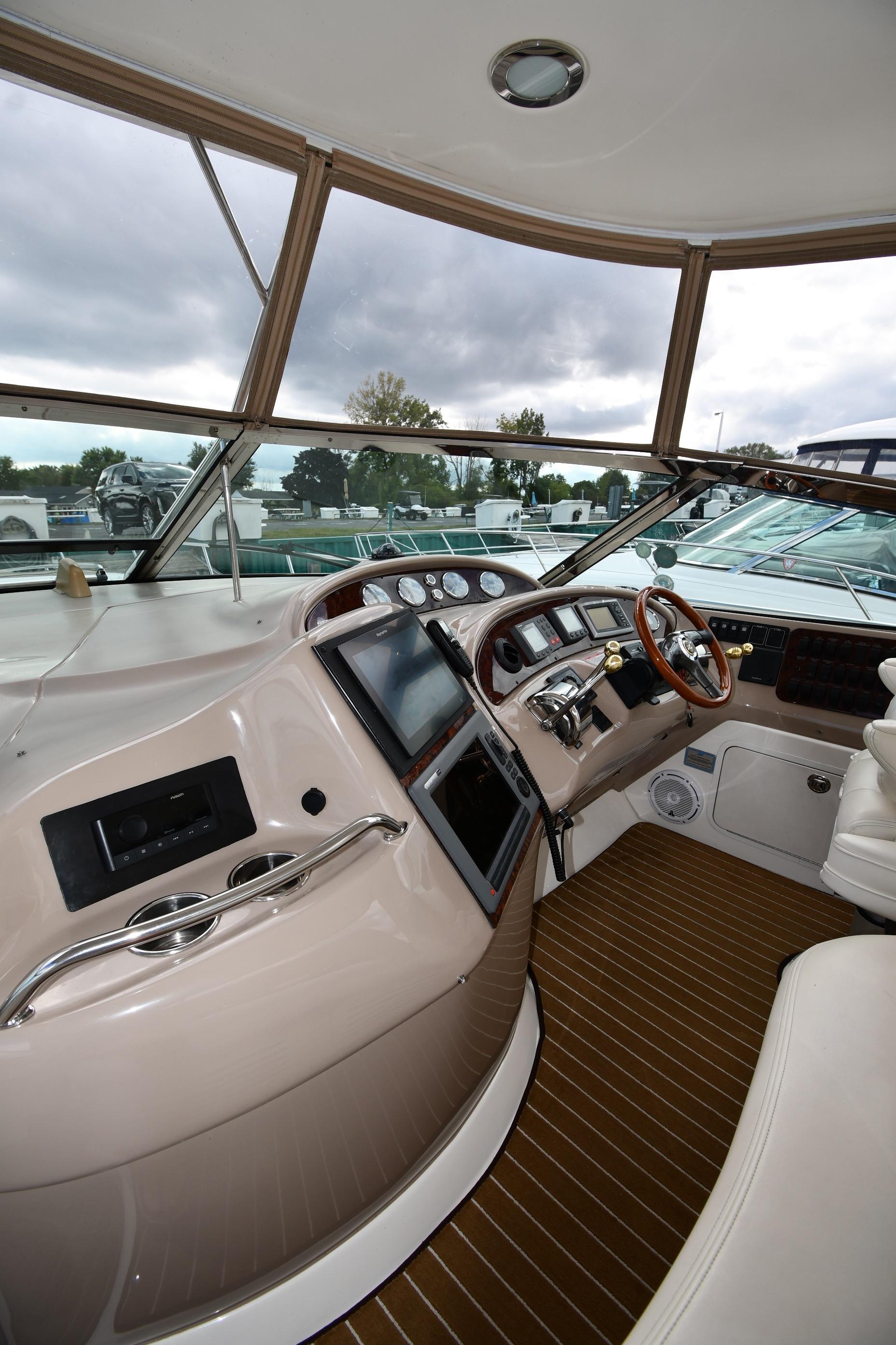 Freshwater / Great Lakes boat since new this vessel features Twin Cummins 480CE Diesel Engine's with 1390 hours - w/Vessel-View (documented 1000 hr service on file.) Notable features include but are not limited to the following: Air-Conditioning & Heat (2-Units - w/Cockpit AC/Heat), (2) Heads (Vacuflush) w/Vanity/Sink/Stall-Shower, Central Vacuum, Washer / Dryer Combination Unit, Cherry Cabinetry, Bow-Thruster, Windlass Anchor w/Forward Pedal-Controls (Note Forward Freshwater Washdown), Custom Canvas Package (see photos) w/Polycarbonate Forward / Side-Windows - Drop-Canvas w/Aft Seat Cover, Cockpit Wet Bar w/Sink/Stainless-Steel Drawer-Style Refrigerator, Onan Generator 600-hrs., Complete Electronics Package (Garmin VHF Marine Radio, Raymarine C120W (Color) Radar w/GPS/Chartplotter, Raymarine Hybrid-Touch GPS/Chartplotter. Raymarine Autopilot), Fusion Premium Sound System w/JL-Audio Speakers, and MUCH more!