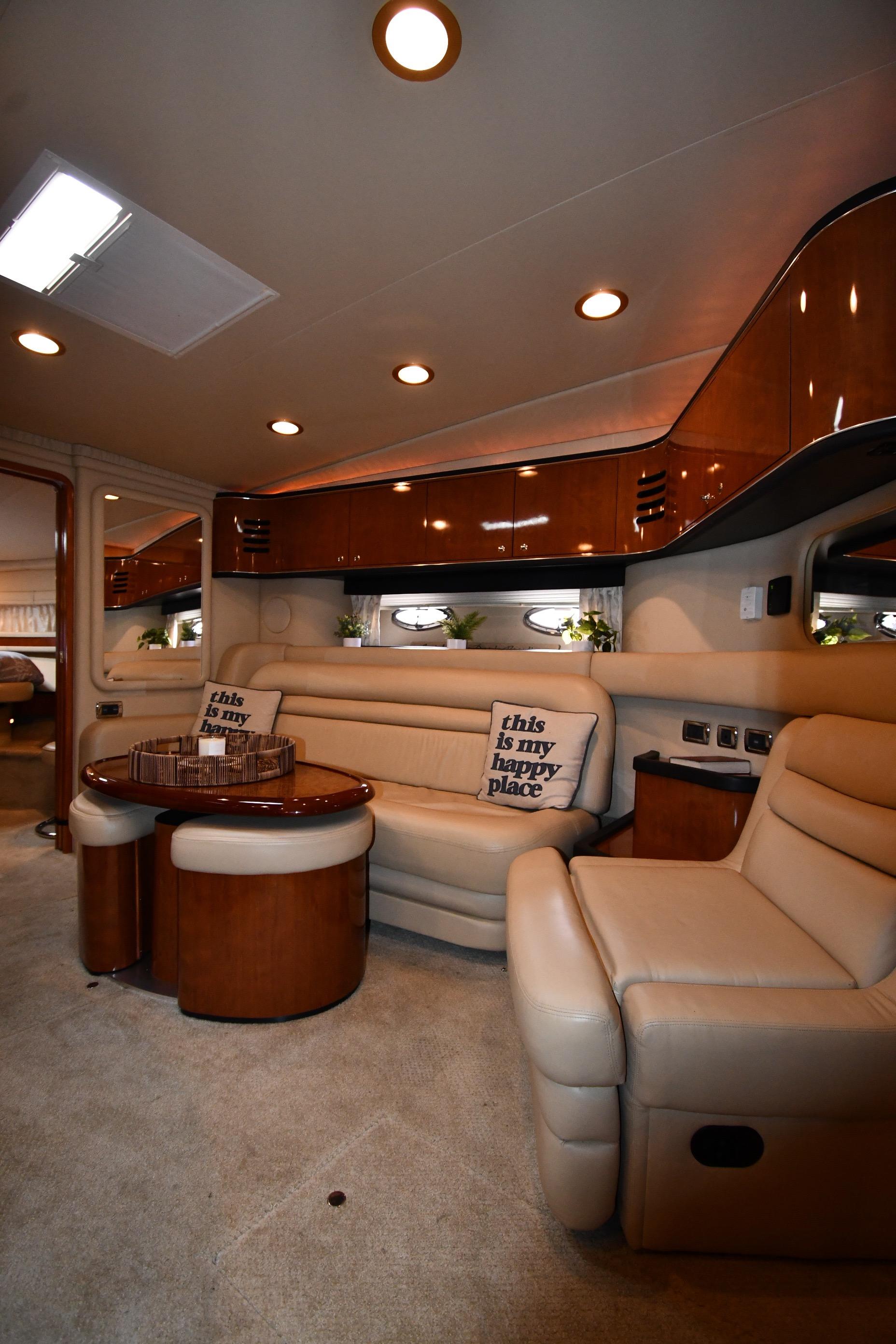 Freshwater / Great Lakes boat since new this vessel features Twin Cummins 480CE Diesel Engine's with 1390 hours - w/Vessel-View (documented 1000 hr service on file.) Notable features include but are not limited to the following: Air-Conditioning & Heat (2-Units - w/Cockpit AC/Heat), (2) Heads (Vacuflush) w/Vanity/Sink/Stall-Shower, Central Vacuum, Washer / Dryer Combination Unit, Cherry Cabinetry, Bow-Thruster, Windlass Anchor w/Forward Pedal-Controls (Note Forward Freshwater Washdown), Custom Canvas Package (see photos) w/Polycarbonate Forward / Side-Windows - Drop-Canvas w/Aft Seat Cover, Cockpit Wet Bar w/Sink/Stainless-Steel Drawer-Style Refrigerator, Onan Generator 600-hrs., Complete Electronics Package (Garmin VHF Marine Radio, Raymarine C120W (Color) Radar w/GPS/Chartplotter, Raymarine Hybrid-Touch GPS/Chartplotter. Raymarine Autopilot), Fusion Premium Sound System w/JL-Audio Speakers, and MUCH more!