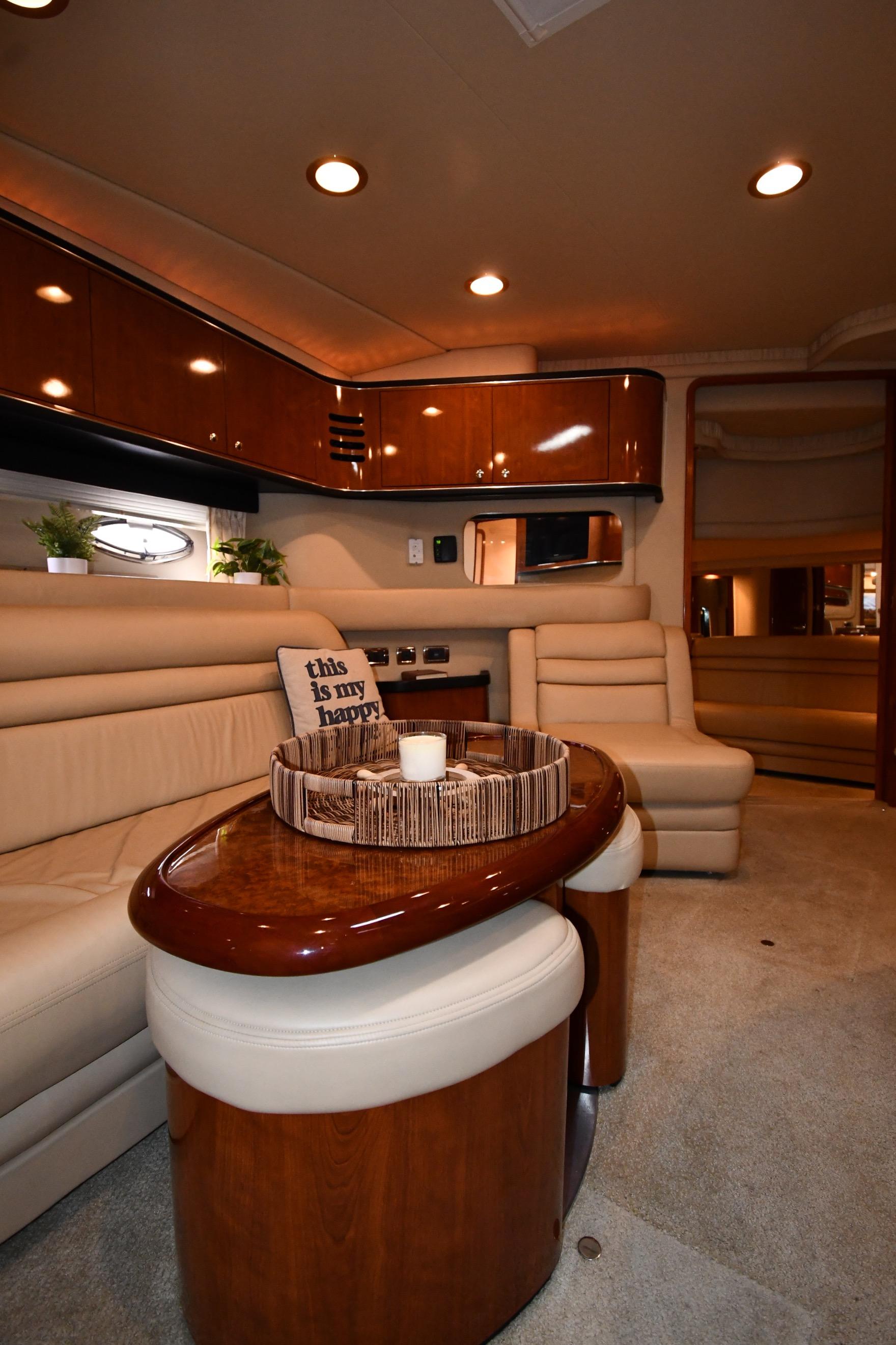 Freshwater / Great Lakes boat since new this vessel features Twin Cummins 480CE Diesel Engine's with 1390 hours - w/Vessel-View (documented 1000 hr service on file.) Notable features include but are not limited to the following: Air-Conditioning & Heat (2-Units - w/Cockpit AC/Heat), (2) Heads (Vacuflush) w/Vanity/Sink/Stall-Shower, Central Vacuum, Washer / Dryer Combination Unit, Cherry Cabinetry, Bow-Thruster, Windlass Anchor w/Forward Pedal-Controls (Note Forward Freshwater Washdown), Custom Canvas Package (see photos) w/Polycarbonate Forward / Side-Windows - Drop-Canvas w/Aft Seat Cover, Cockpit Wet Bar w/Sink/Stainless-Steel Drawer-Style Refrigerator, Onan Generator 600-hrs., Complete Electronics Package (Garmin VHF Marine Radio, Raymarine C120W (Color) Radar w/GPS/Chartplotter, Raymarine Hybrid-Touch GPS/Chartplotter. Raymarine Autopilot), Fusion Premium Sound System w/JL-Audio Speakers, and MUCH more!