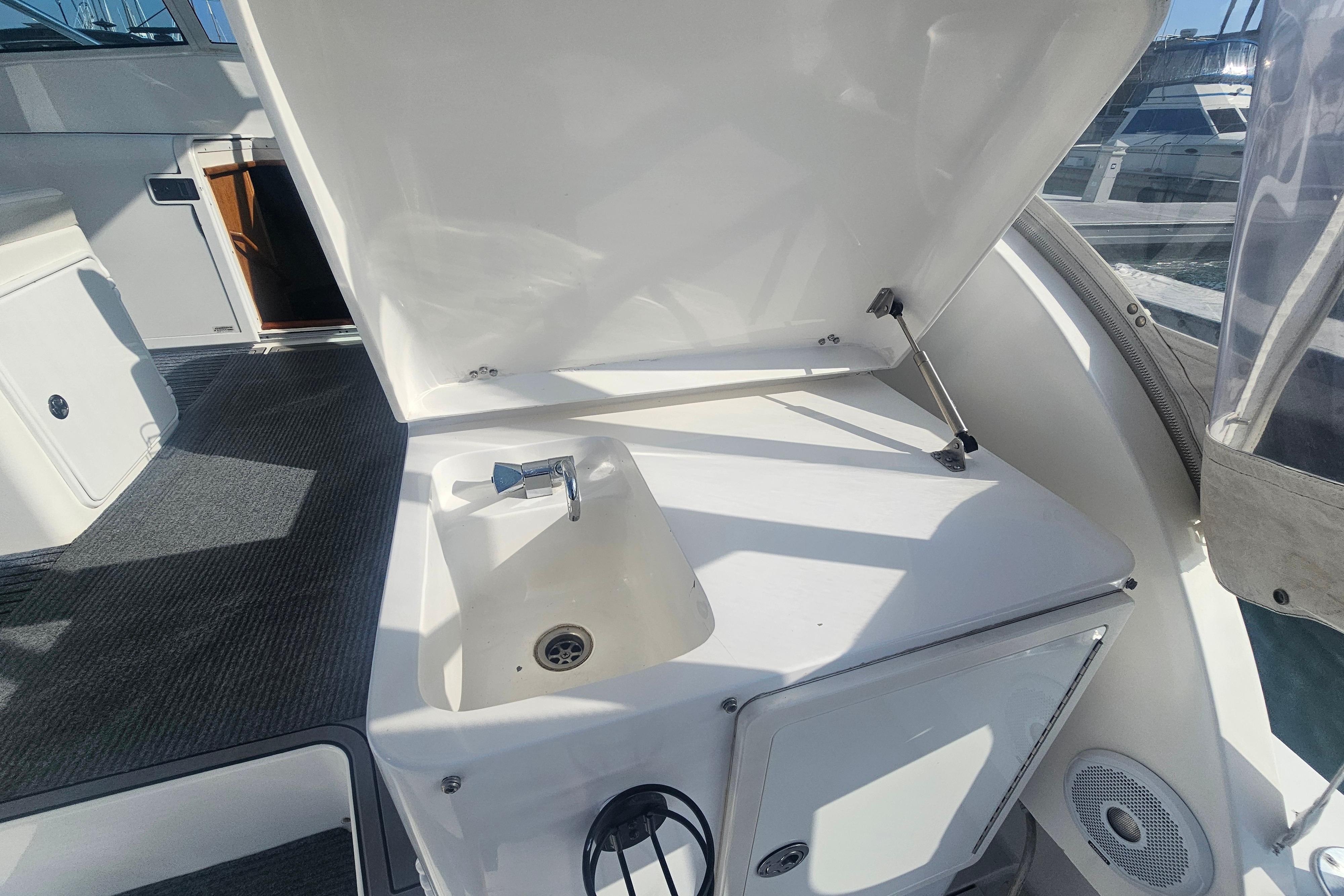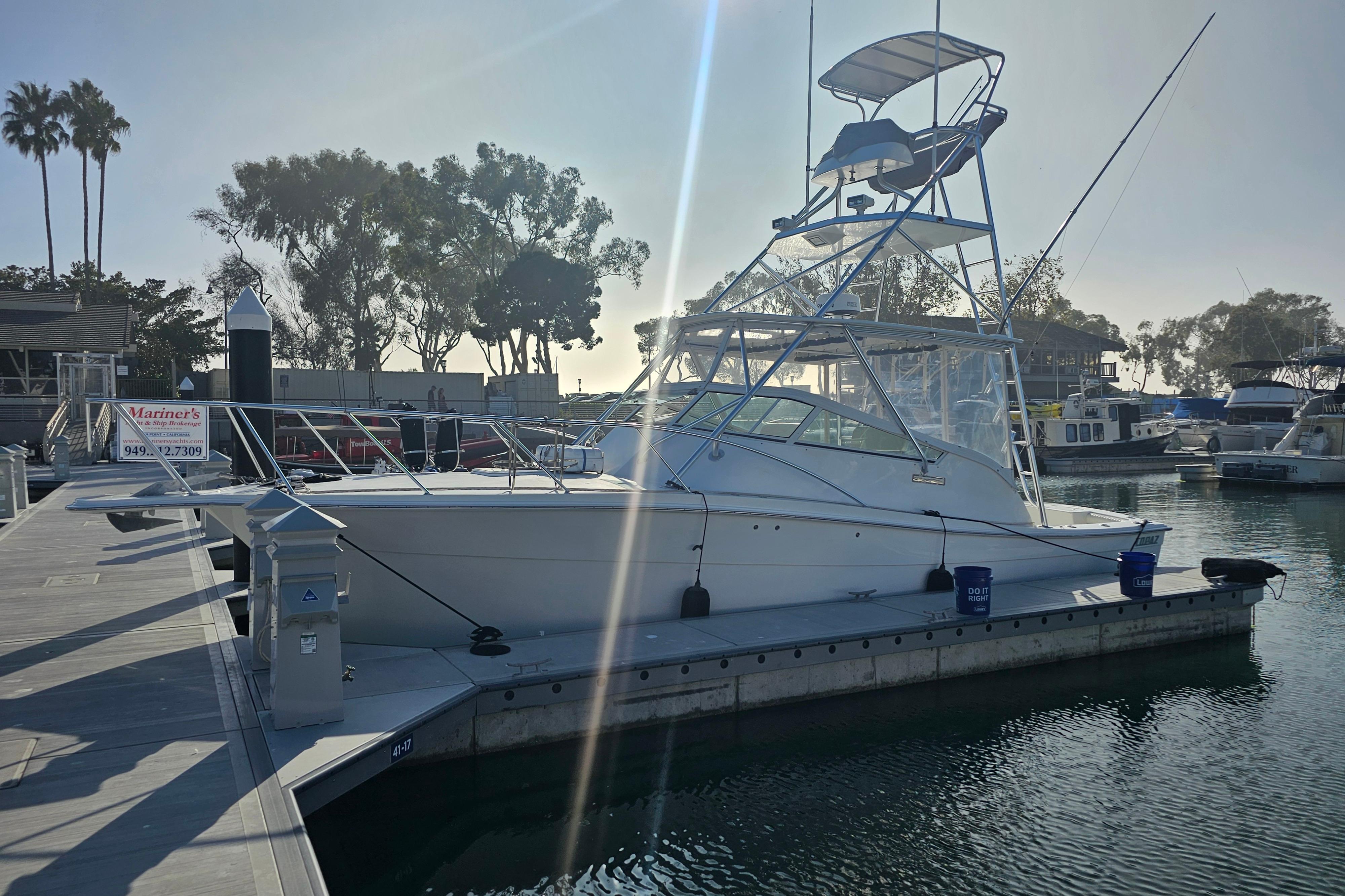 Introducing the stunning 2003 Topaz 32 Express, a remarkable express cruiser that combines elegance with performance. This vessel boasts an overall length of 32 feet, crafted from durable fiberglass with a modified Vee hull shape, ensuring a smooth and stable ride. Powered by twin Cummins 6BTA 5.9 - M3 inboard engines, each delivering an impressive 370 hp, the Topaz reaches cruising speeds of 19 knots and a maximum hull speed of 27 knots, perfect for exhilarating adventures on the water. Accommodating up to 12 guests, this boat is ideal for entertaining family and friends. It features one cabin and one head, providing comfort for overnight trips. An electric windlass enhances convenience, making anchoring a breeze. The Topaz 32 Express is a perfect blend of style, performance, and functionality, ready to create unforgettable memories on the water. Experience the joy of cruising with "Dos Margaritas Dos."