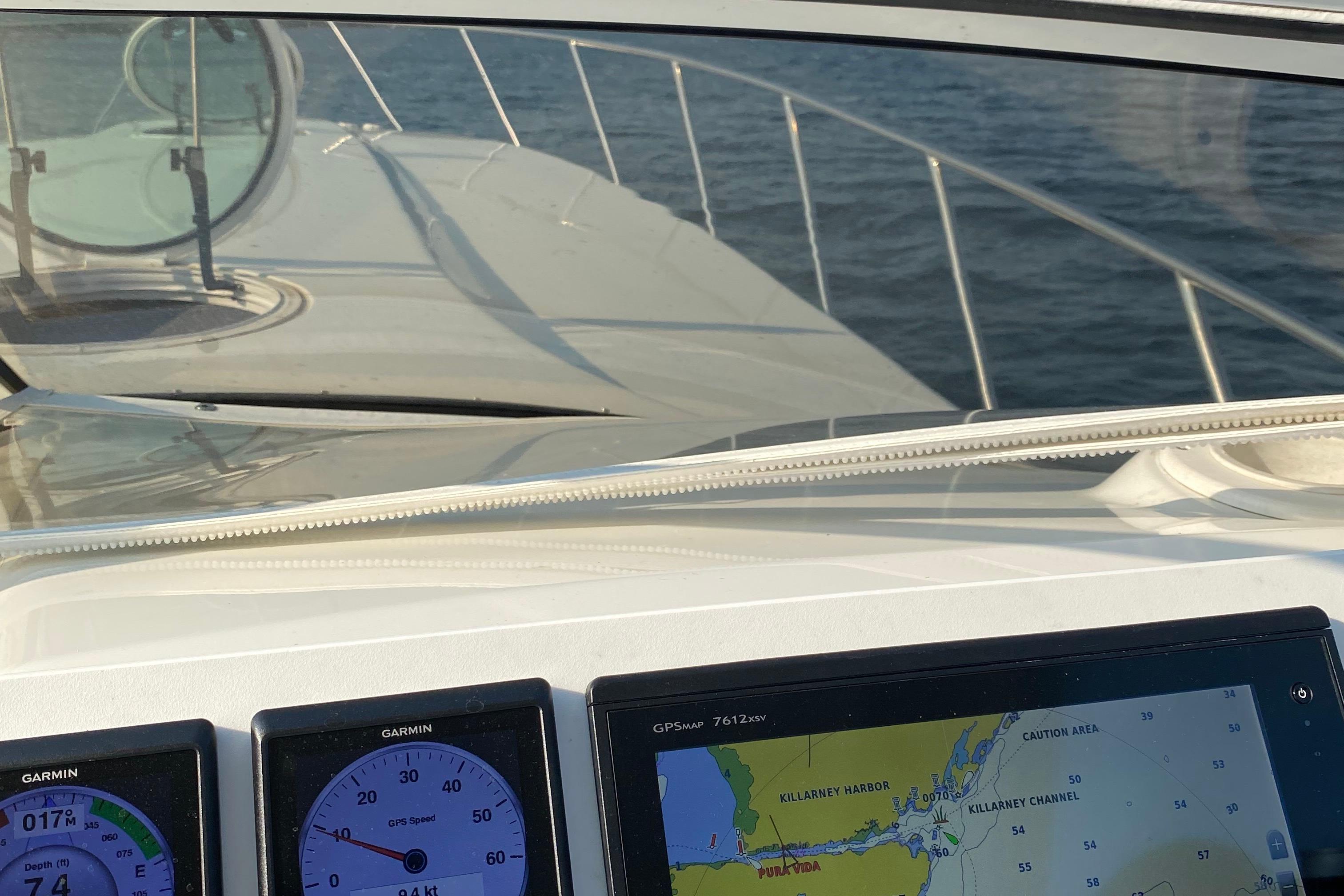 Thanks to her double-stepped hull and Arneson Surface Drives (equipped with brand new 7-blade stainless steel props), she’s not only fast but impressively fuel-efficient, getting around 1.1 MPG at cruise.