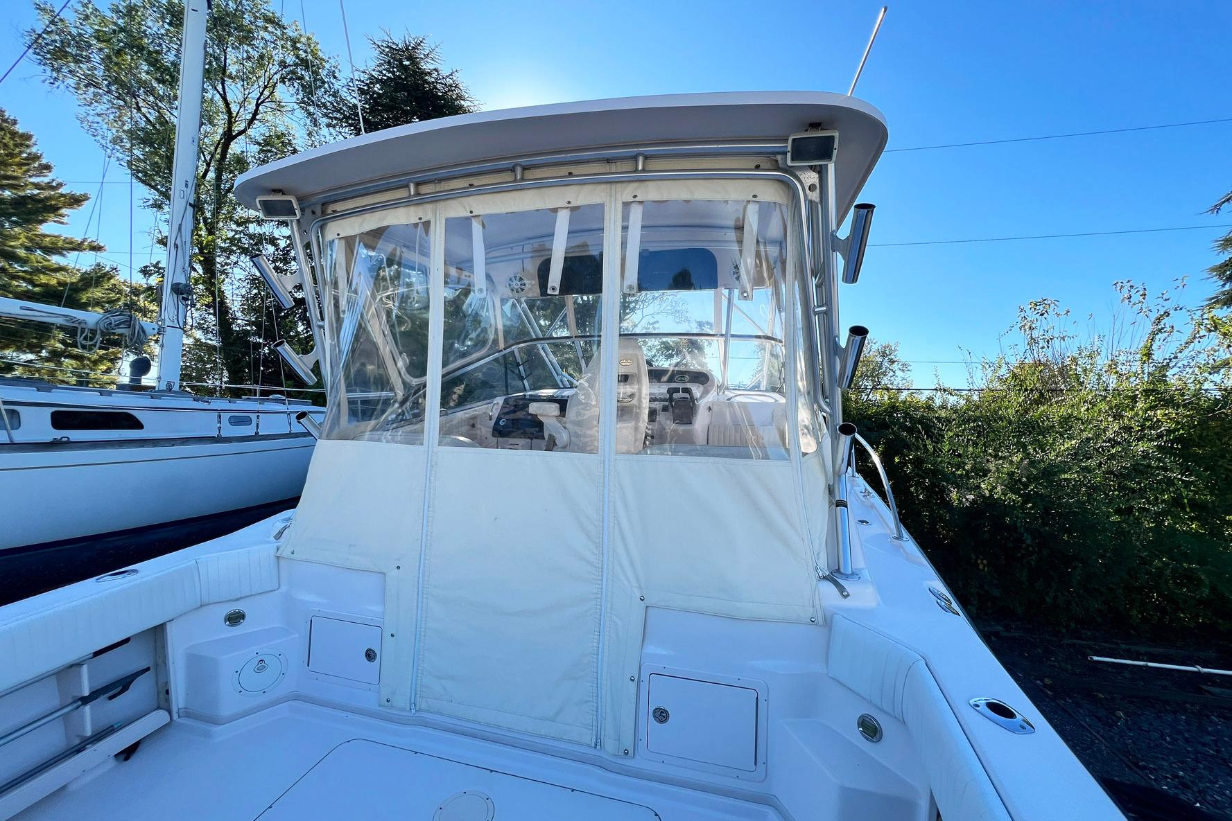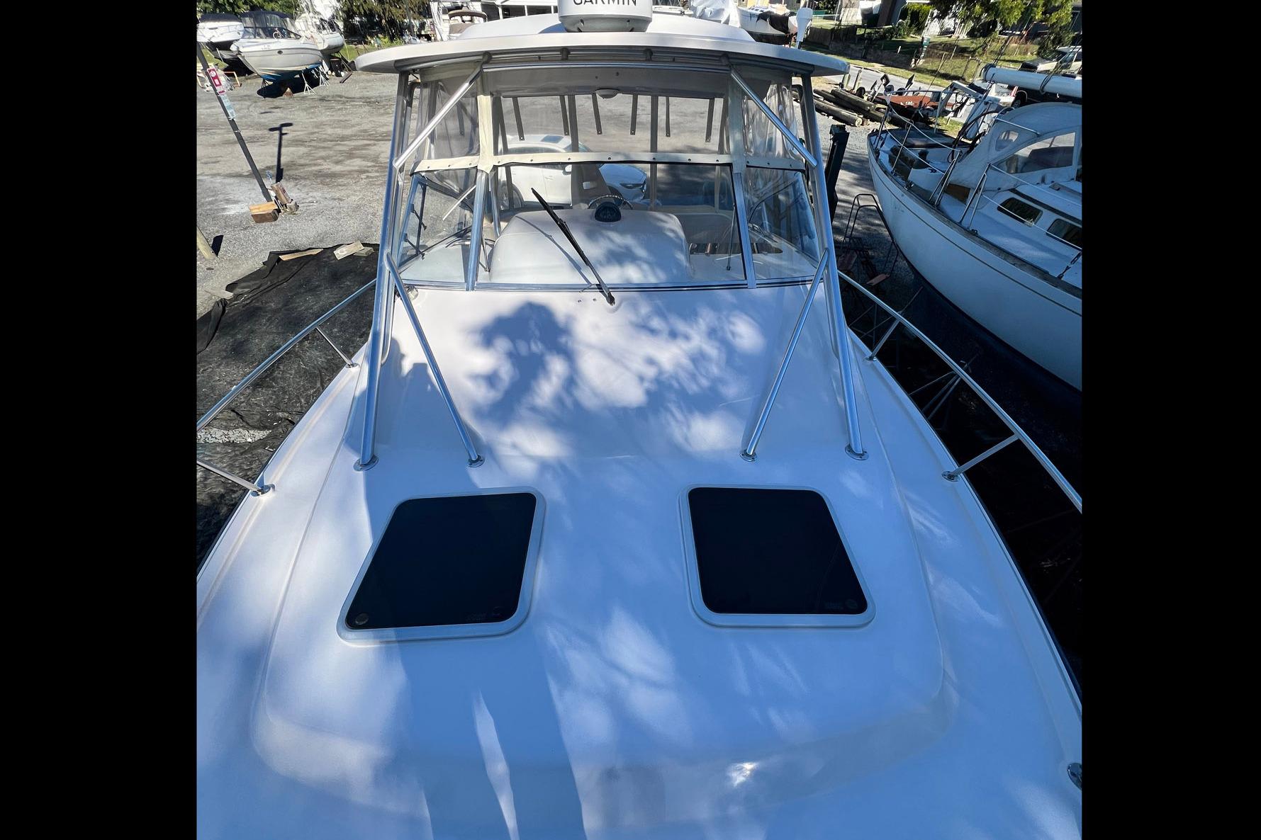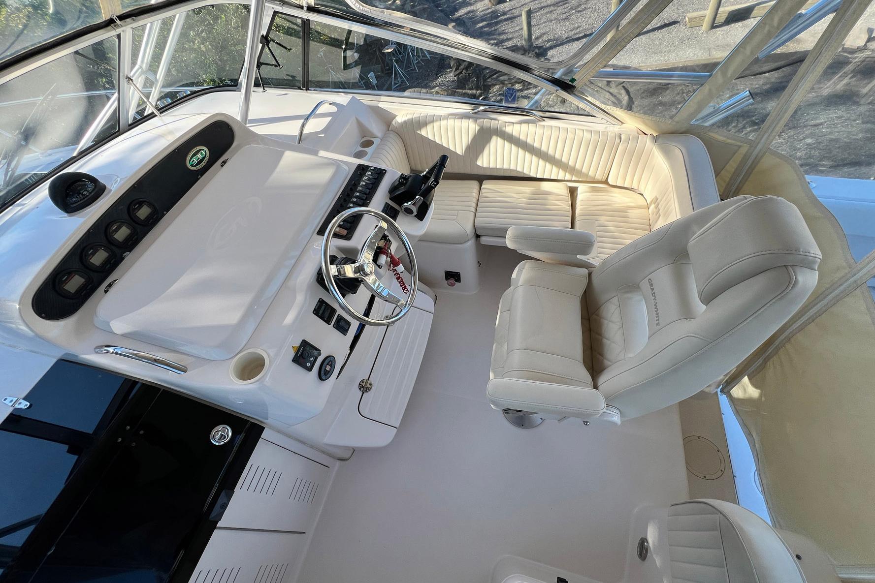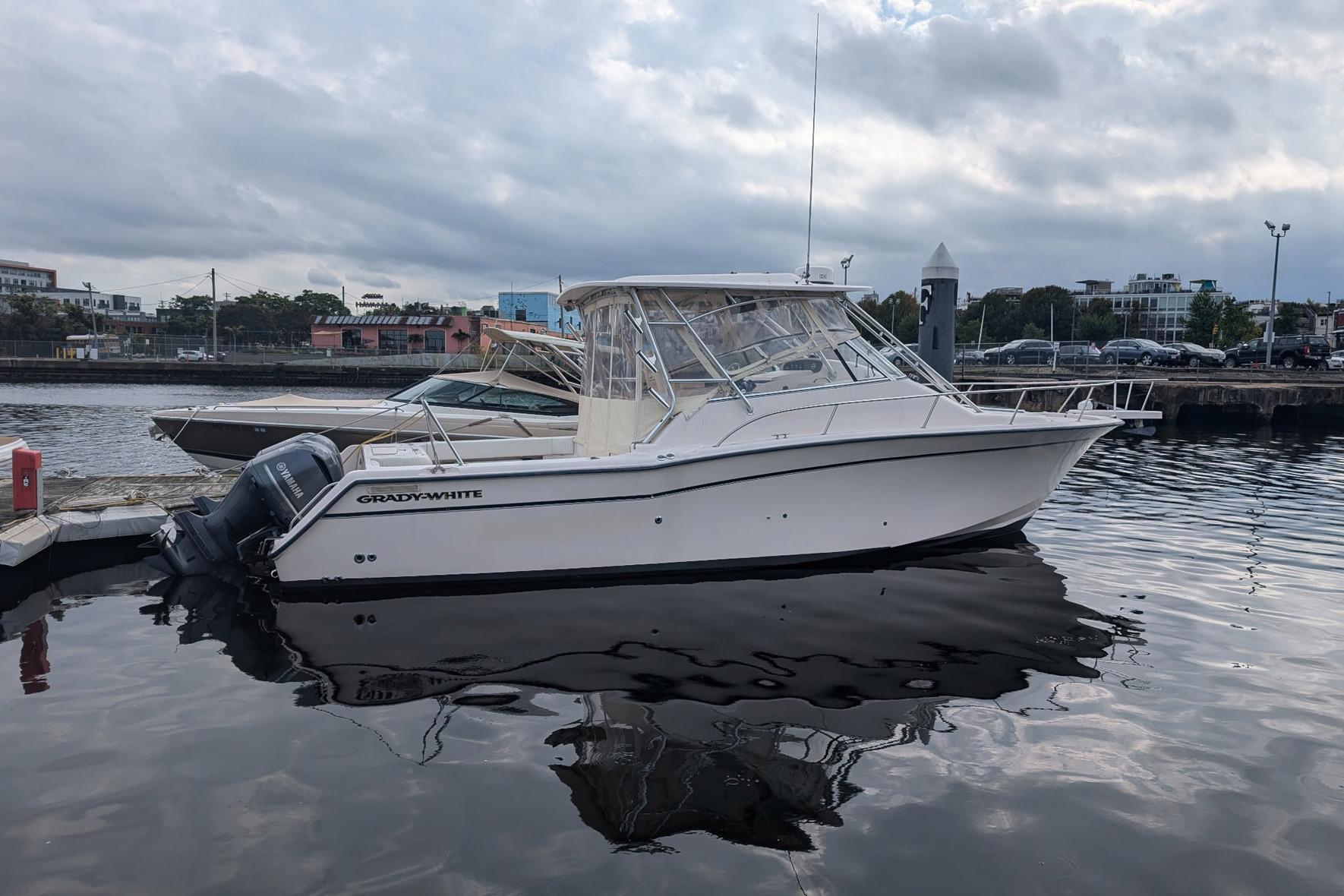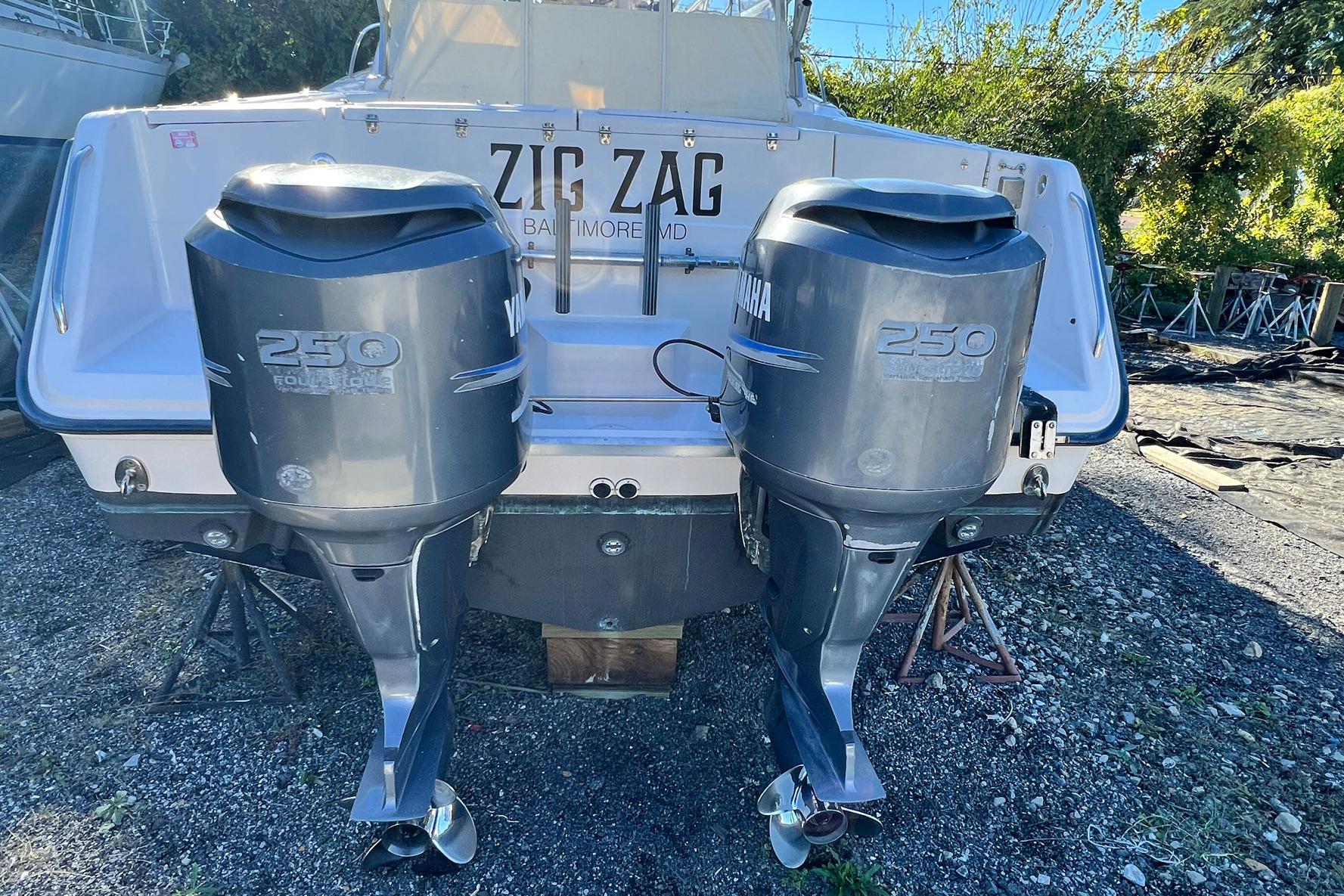"ZIG ZAG," is a clean example of the popular 33' Grady-White Express. Versatile salt-water fishing boat and comfortable cabin cruiser with a great interior layout. Easy to operate with twin Yamaha 250HP Engines and Bow Thruster. The boat features a hardtop and newer enclosure, bow thruster, Garmin electronics and 900 hours on the engines.
