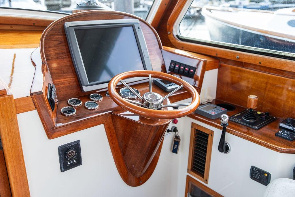 • Optional Hinckley teak package covers the dash area, around pilothouse windows, around L-settee, and cockpit coaming caps