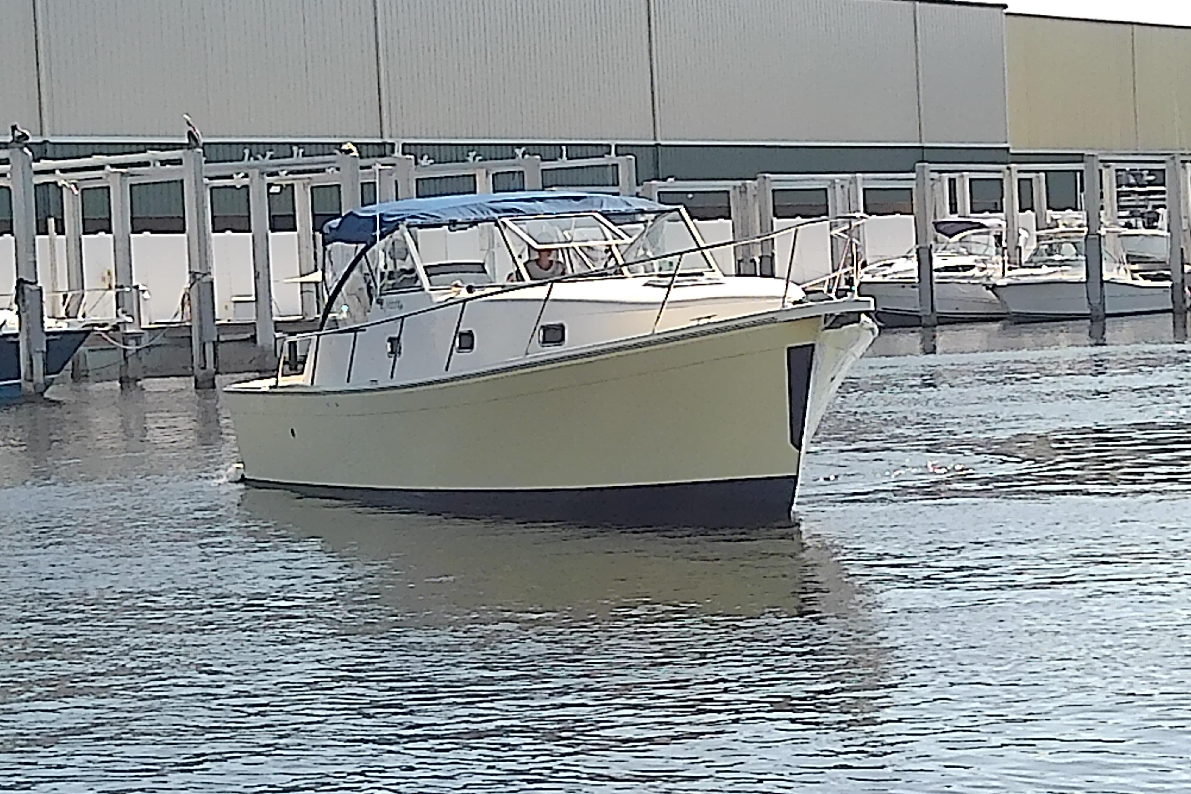 I took the boat out for a ride (video included in this ad) it ran wonderfully. turned right over from a cold start and zero smoke. The twin engines pick the boat up and put it nicely on plane in very little time, she turns and handles nicely. This should be the next twin engine 34 Mainship sold.