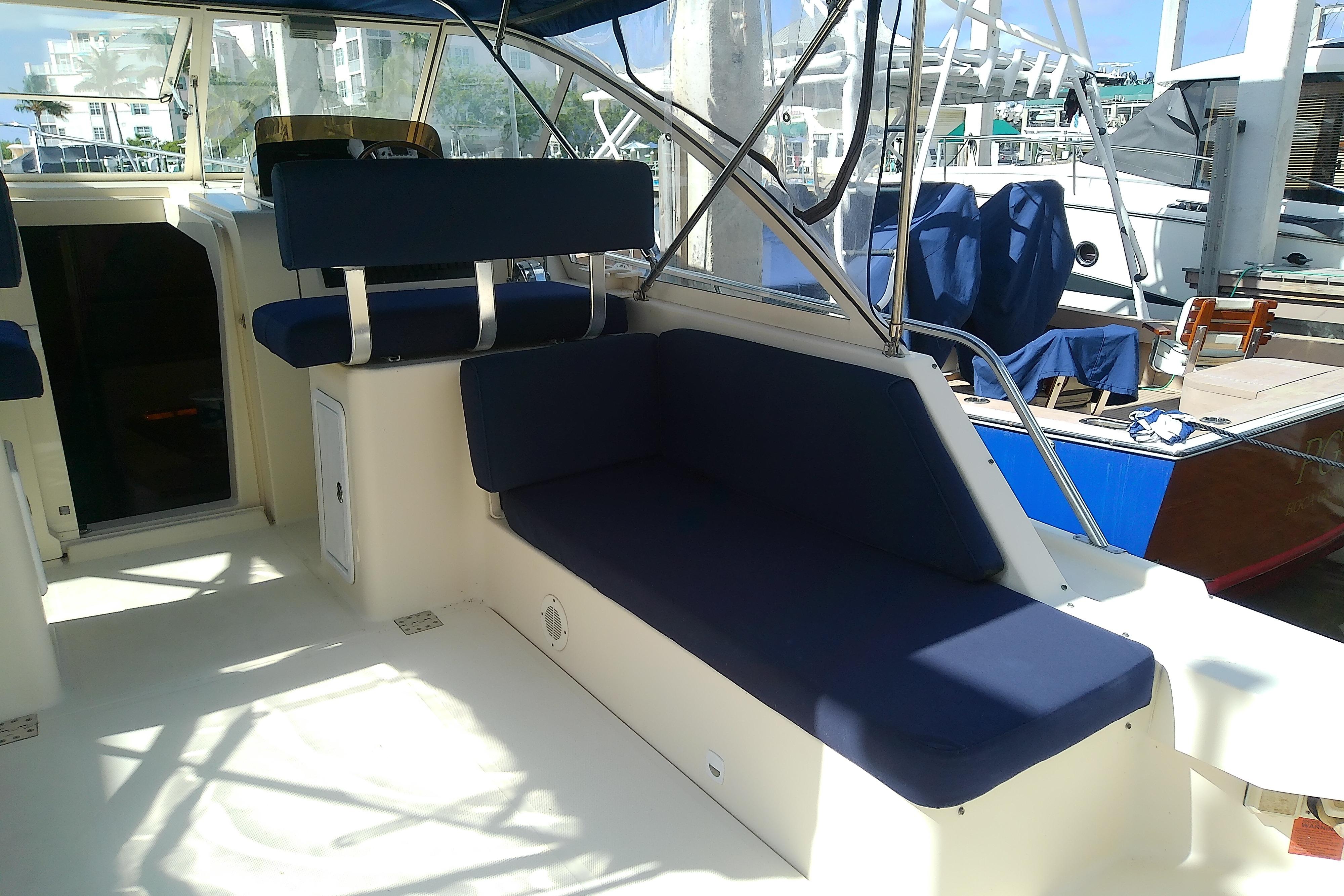 Where the 30 Pilot is essentially a day boat, the larger interior of the 34 provides the volume required for extended cruising. The first 34 Pilots were express models; in 2001, the Sedan version with an extended hardtop offered owners the added security of a semi-enclosed pilothouse.
