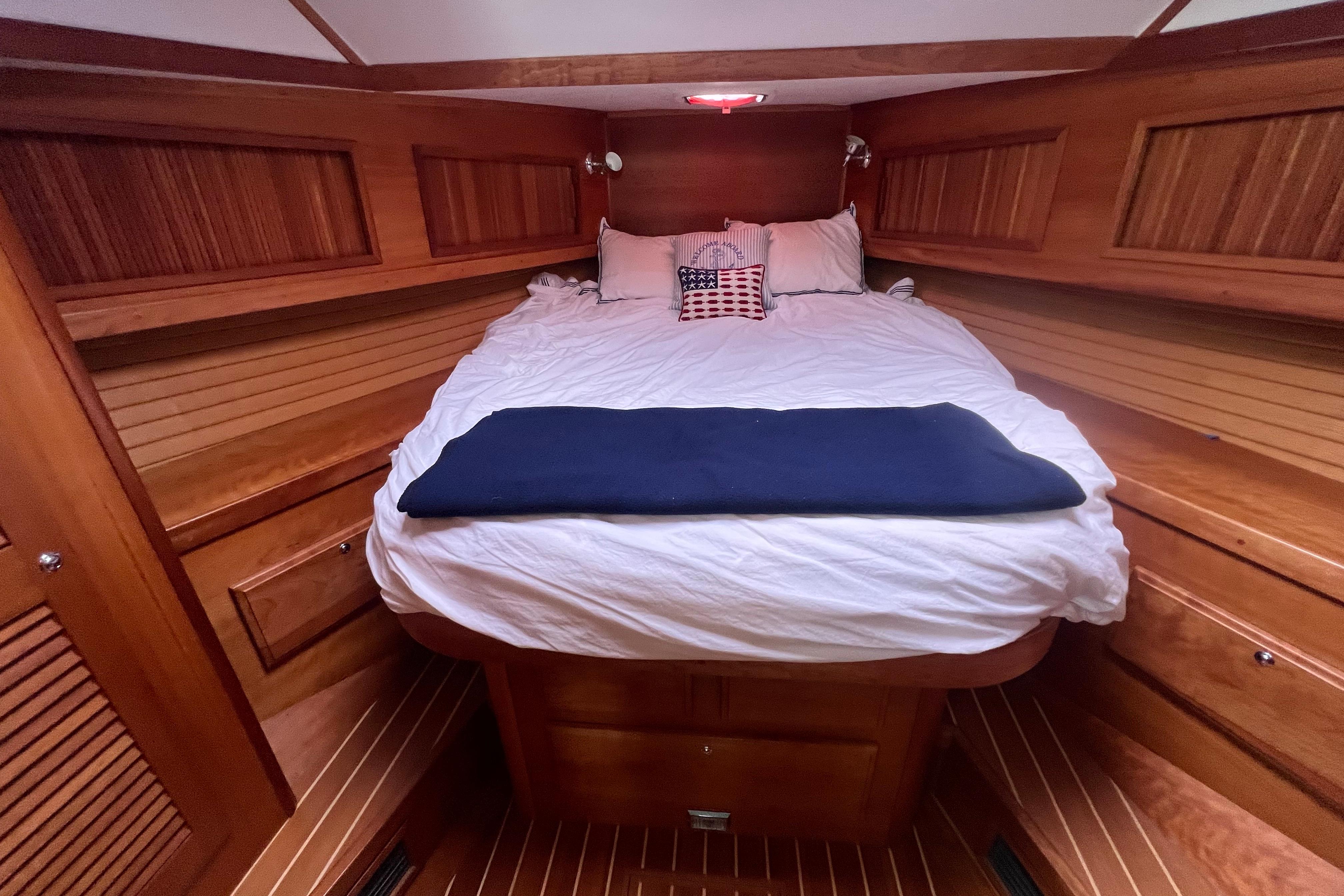 - Storage above and below can be found in the stateroom as well as a cedar-lined hanging locker.