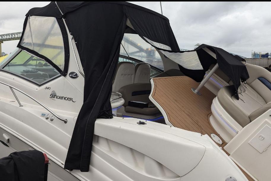 Step aboard the 2004 Sea Ray 340 Sundancer—a vessel that redefines what it means to own the water. With its sleek profile, wide 12-foot beam, and upgraded sound system, this express cruiser is more than a boat—it's your floating escape pod. Whether you're hosting sunset cocktails or chasing the horizon, the Sundancer delivers with elegance, muscle, and unmatched comfort.