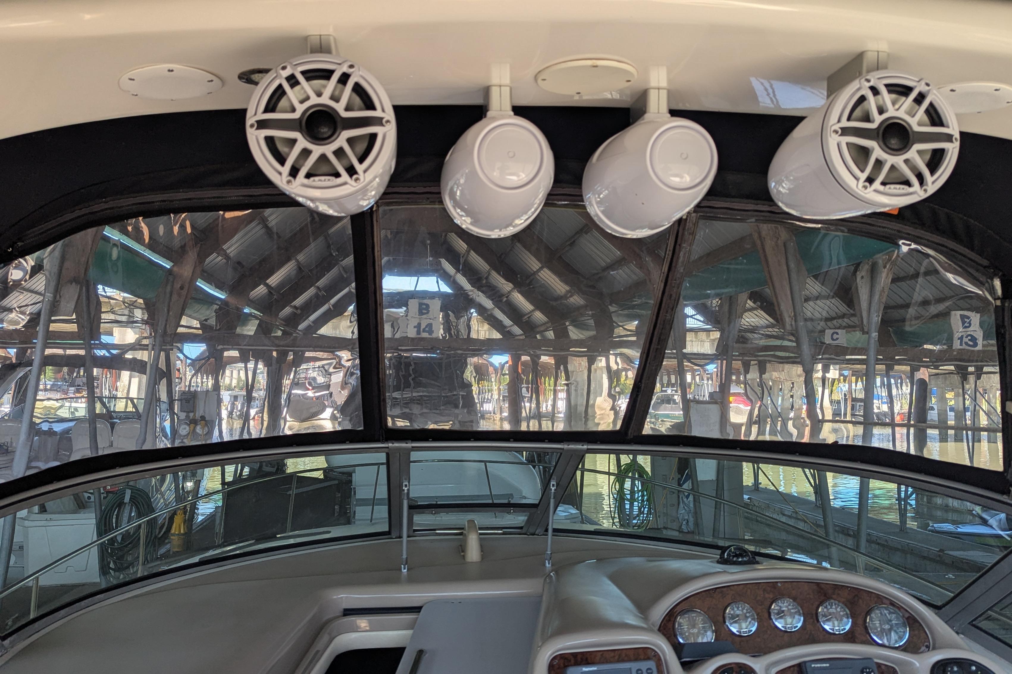 Premium marine-grade speakers strategically placed throughout the cockpit and cabin