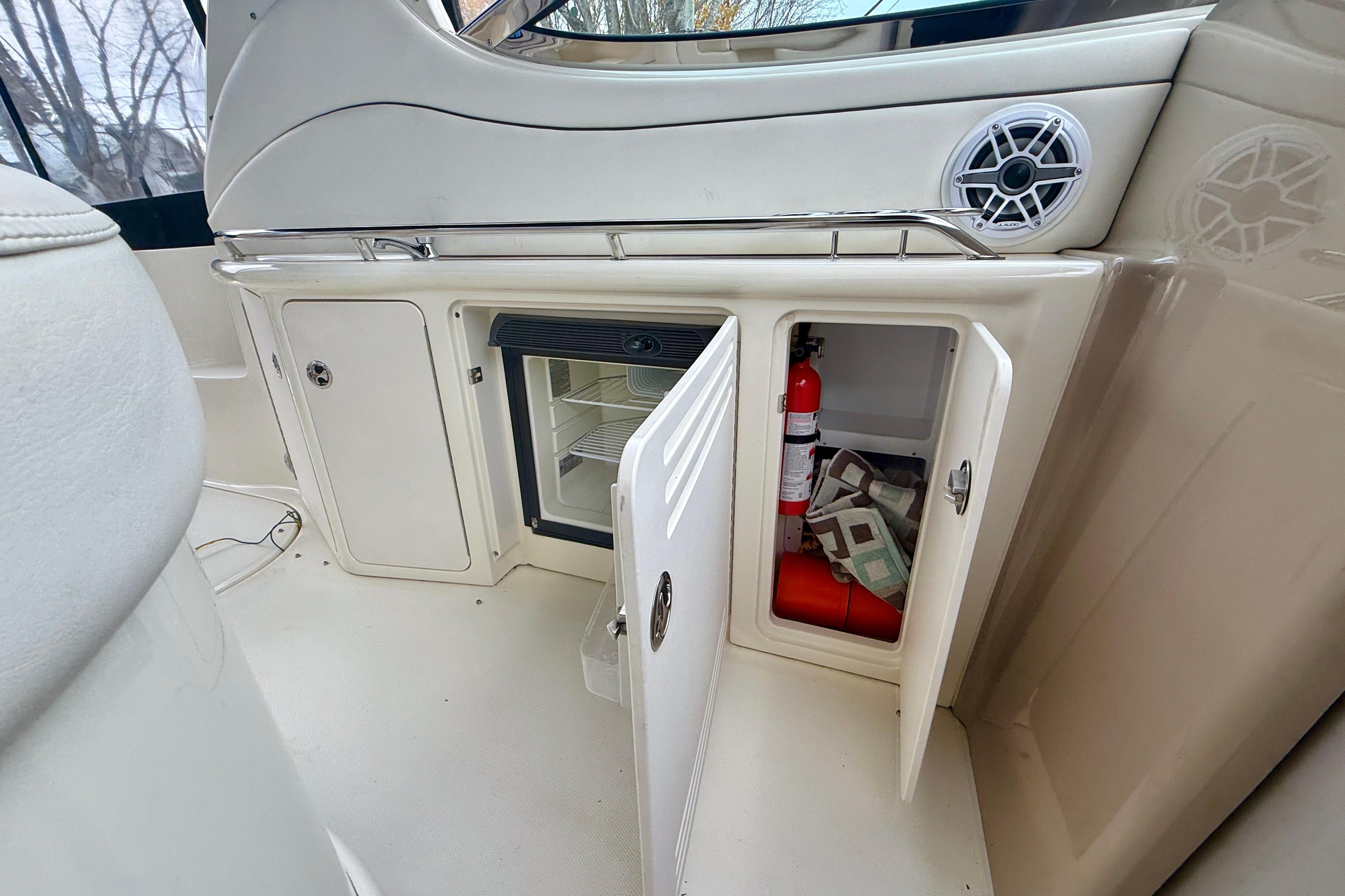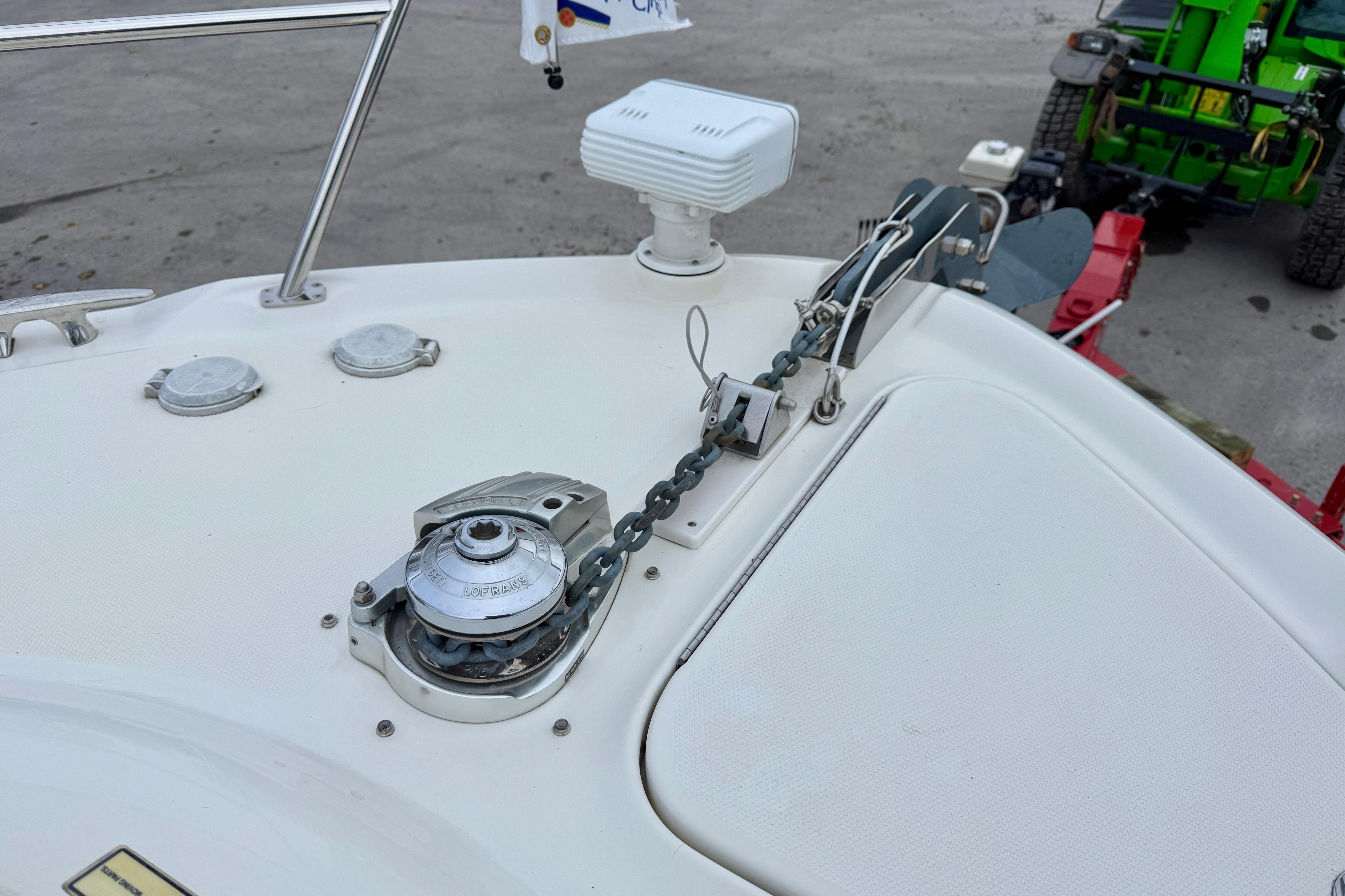 It comes equipped with modern technology for safe and comfortable navigation, including 2023 radar and GPS as well as a 2023 Fusion audio system. Maneuvering is made easy thanks to the bow and stern thrusters, ensuring simple and confident docking.