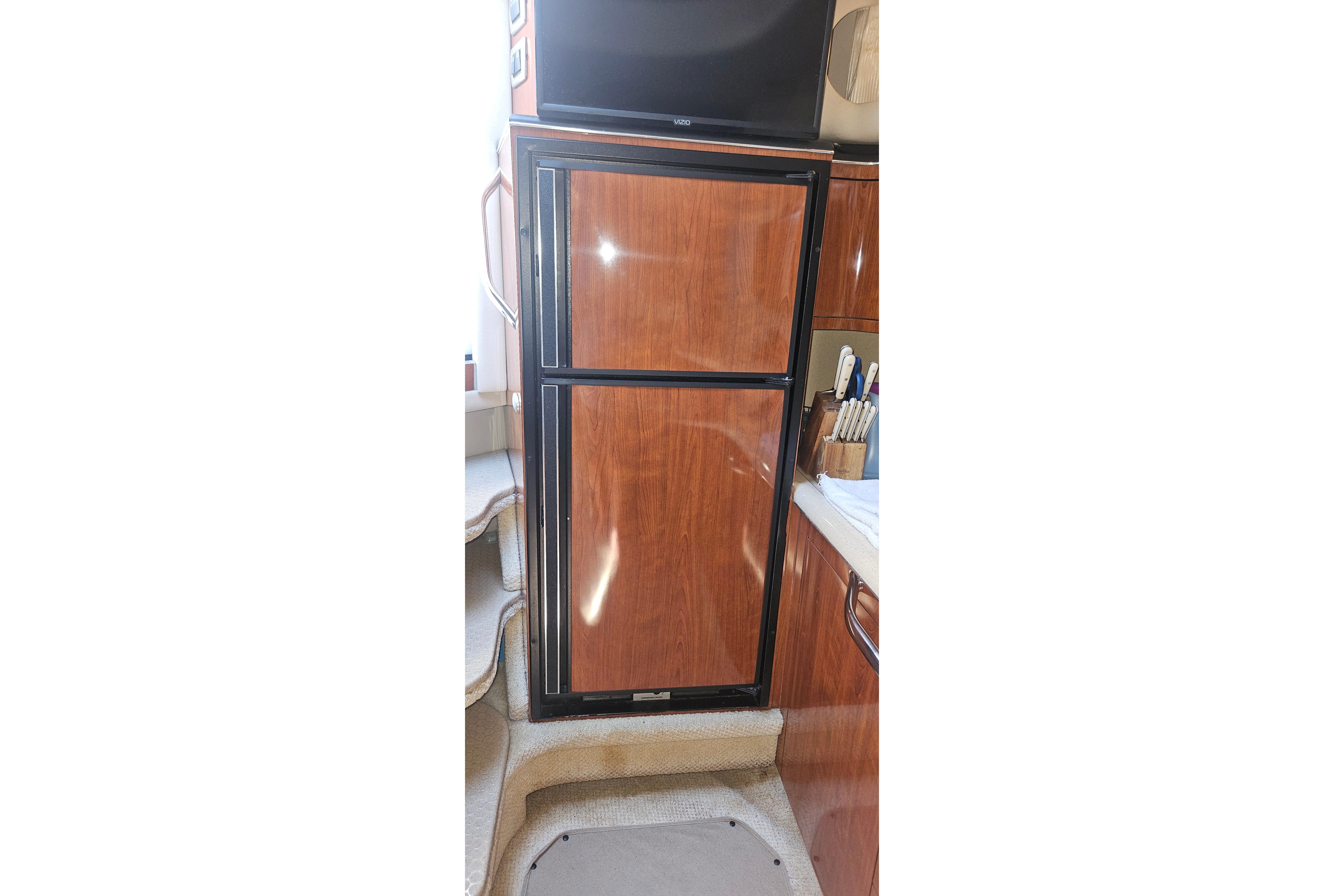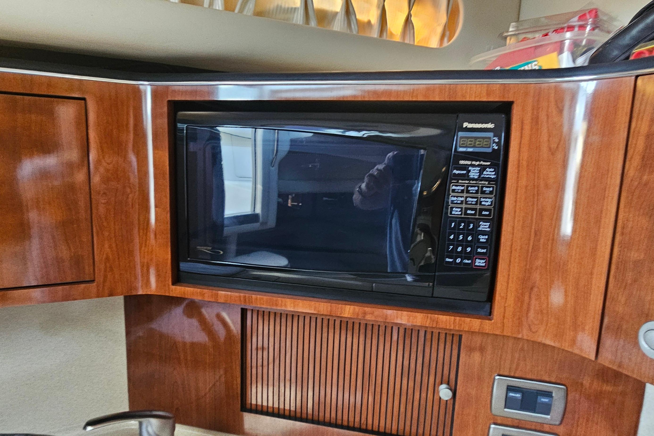 Fully Equipped Galley – refrigerator, microwave, stove, and ample storage for extended trips