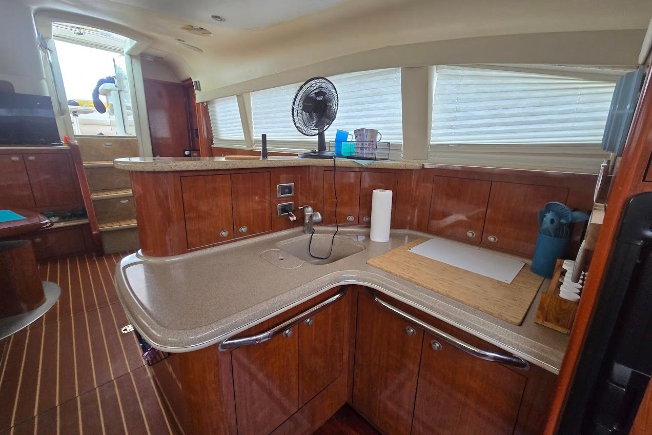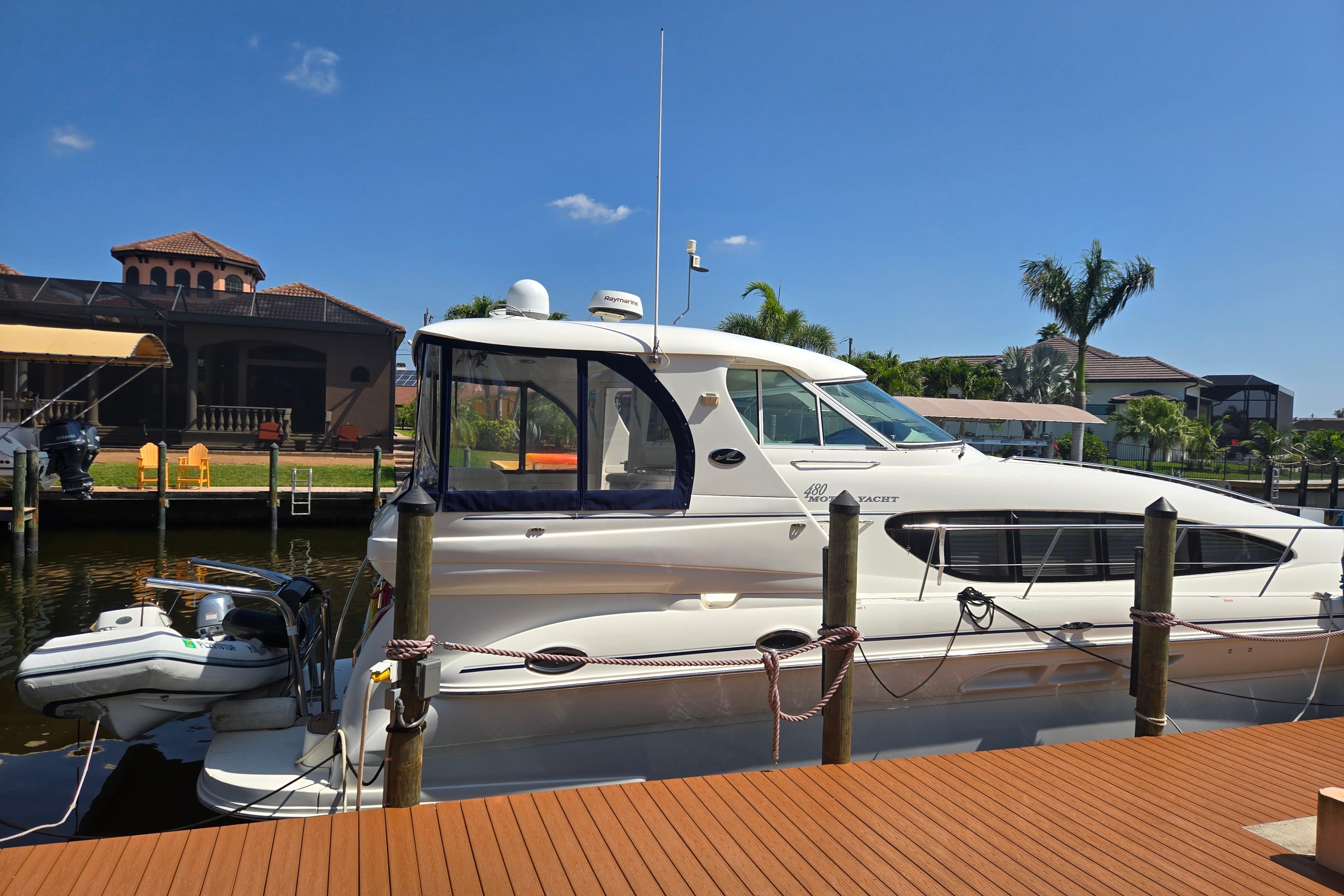 The 480 Motor Yacht was built as a luxury liveaboard cruiser, blending the performance of a sport yacht with the comfort of a traditional aft-cabin. Her split-level salon, spacious flybridge, and excellent visibility made her a standout in the 48-foot range.
