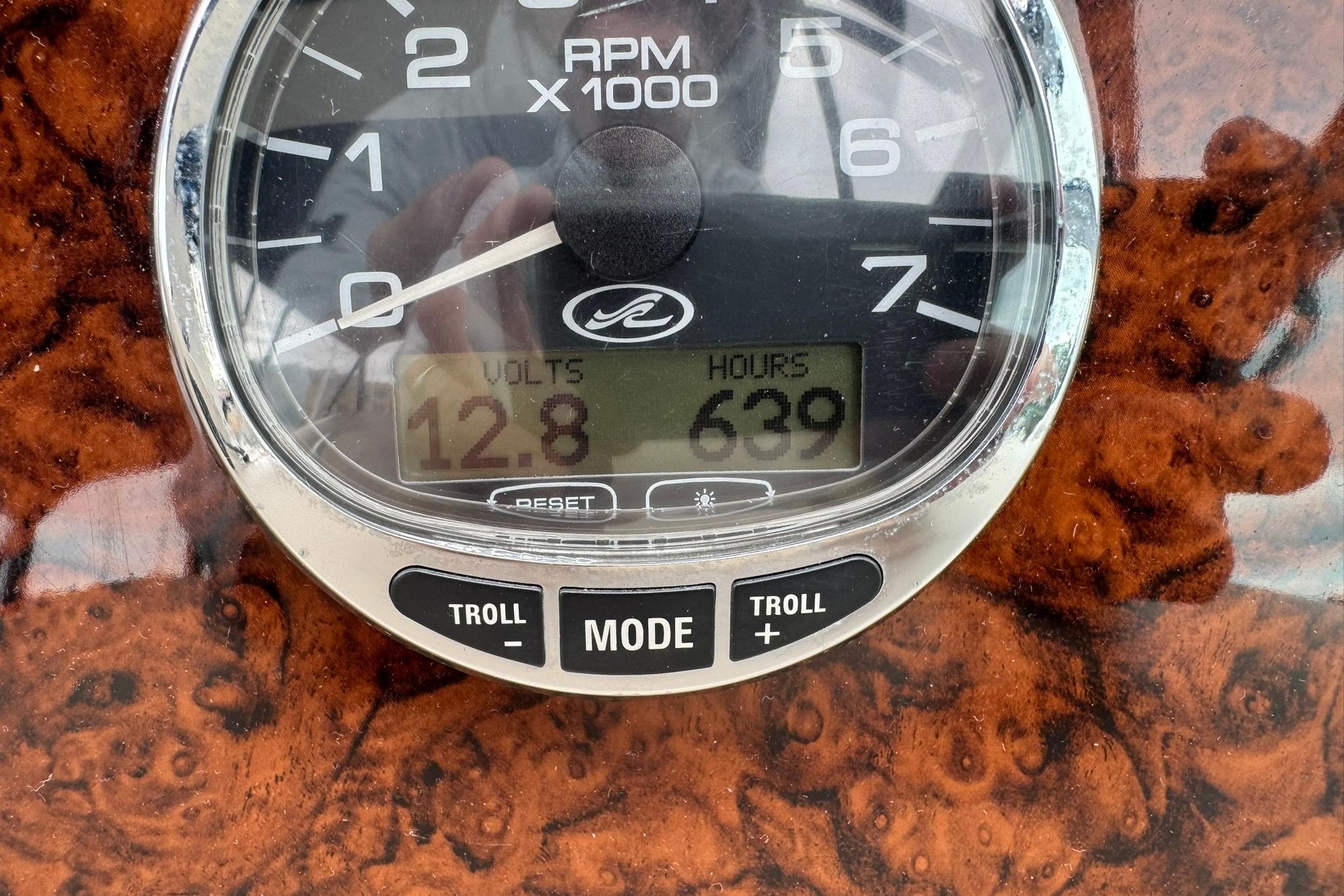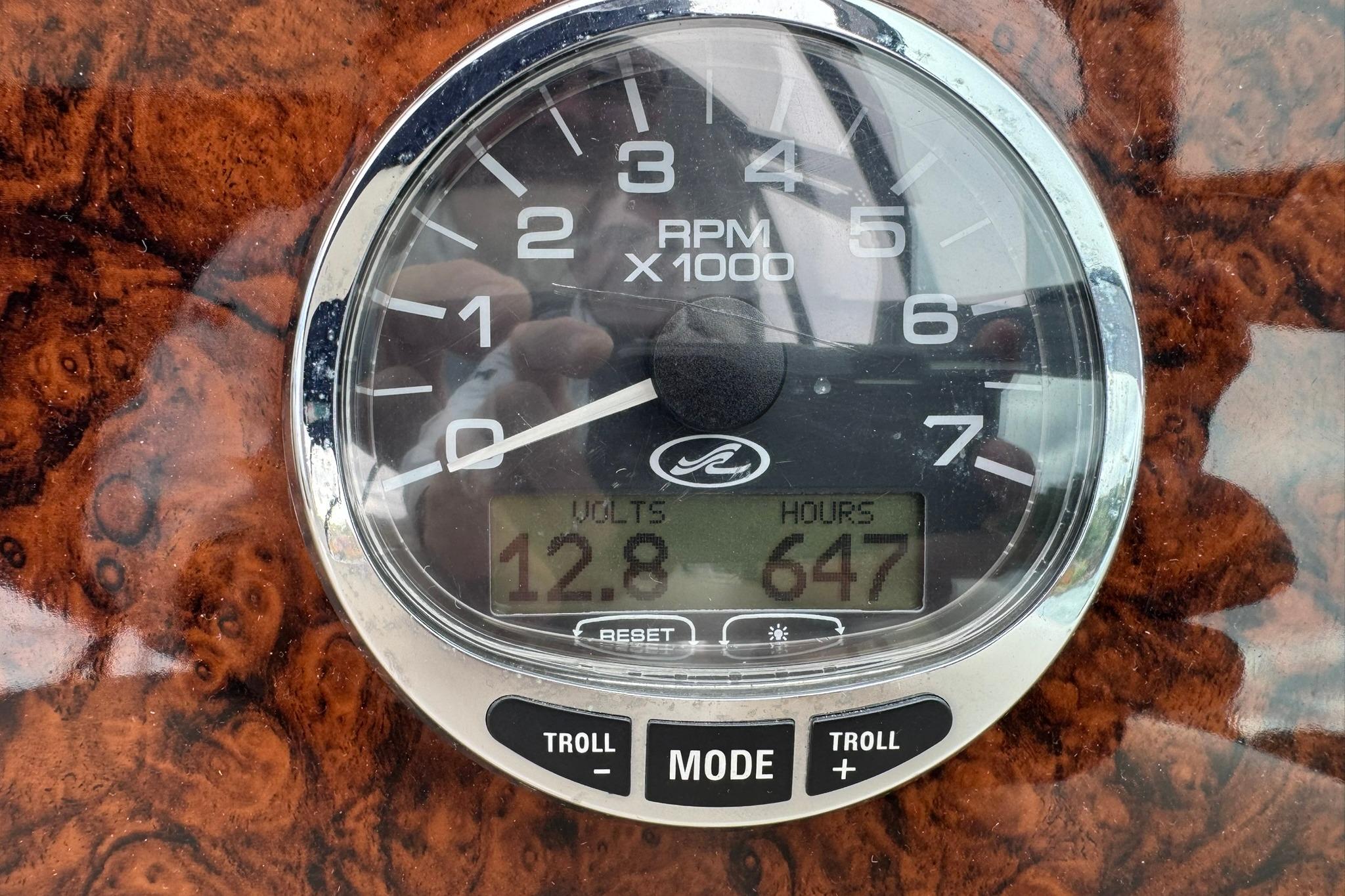 Twin Mercruiser Horizon 5.7L EFI V-Drive 300 HP engines for a total of 600 HP.. The hours are 646 starboard and 638. The cruising speed is 25 knots @ 4500 RPM. The propellers are fixed and 3 blades. There is an oil/water/temp alarm, bilge blower, C02 detector and trim tabs.