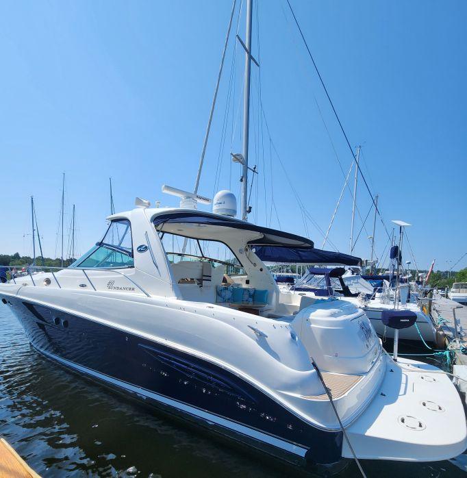 Powered by twin Cummins 480 CE diesels with only 1,070 hours, this stunning express cruiser features a fully enclosed hardtop, upgraded electronics, bow thruster, and a hydraulic swim platform. Inside, you’ll find a bright, spacious interior with two private staterooms, two full heads, and a fully equipped galley. Recent updates include new canvas and Strataglass (2022), cockpit carpet, reupholstered seating, batteries, pumps, and more. Whether you’re entertaining on the expansive aft deck or cruising the coast, this 460 Sundancer offers luxury, performance, and turnkey peace of mind.