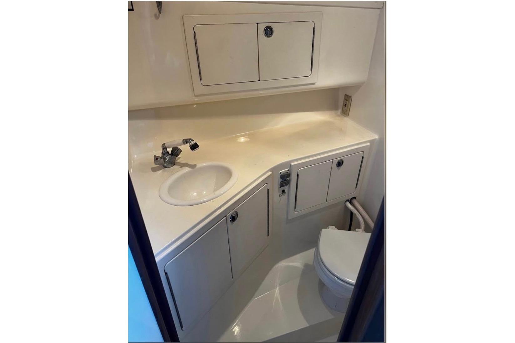 - Head with sink, shower, toilet