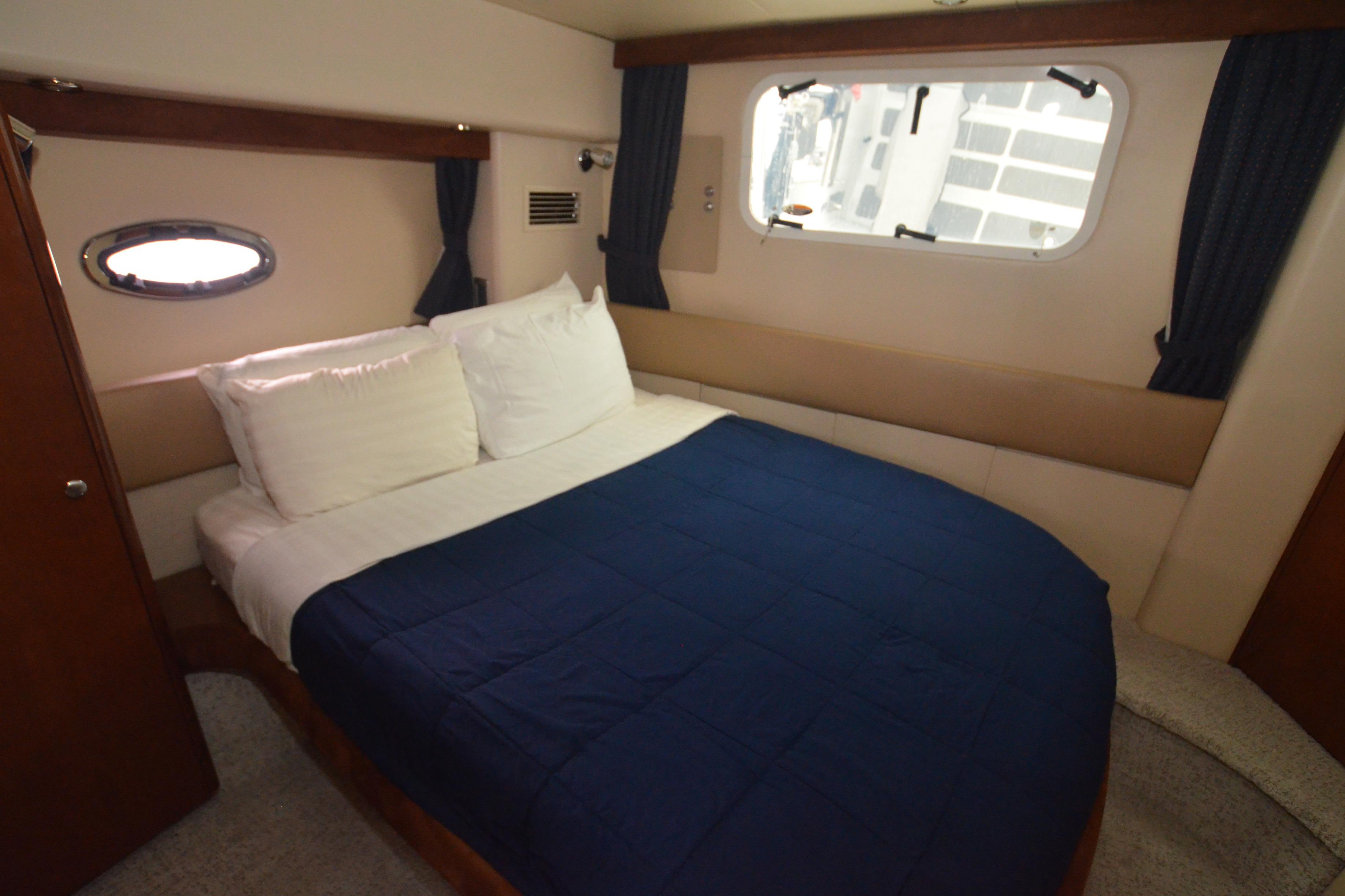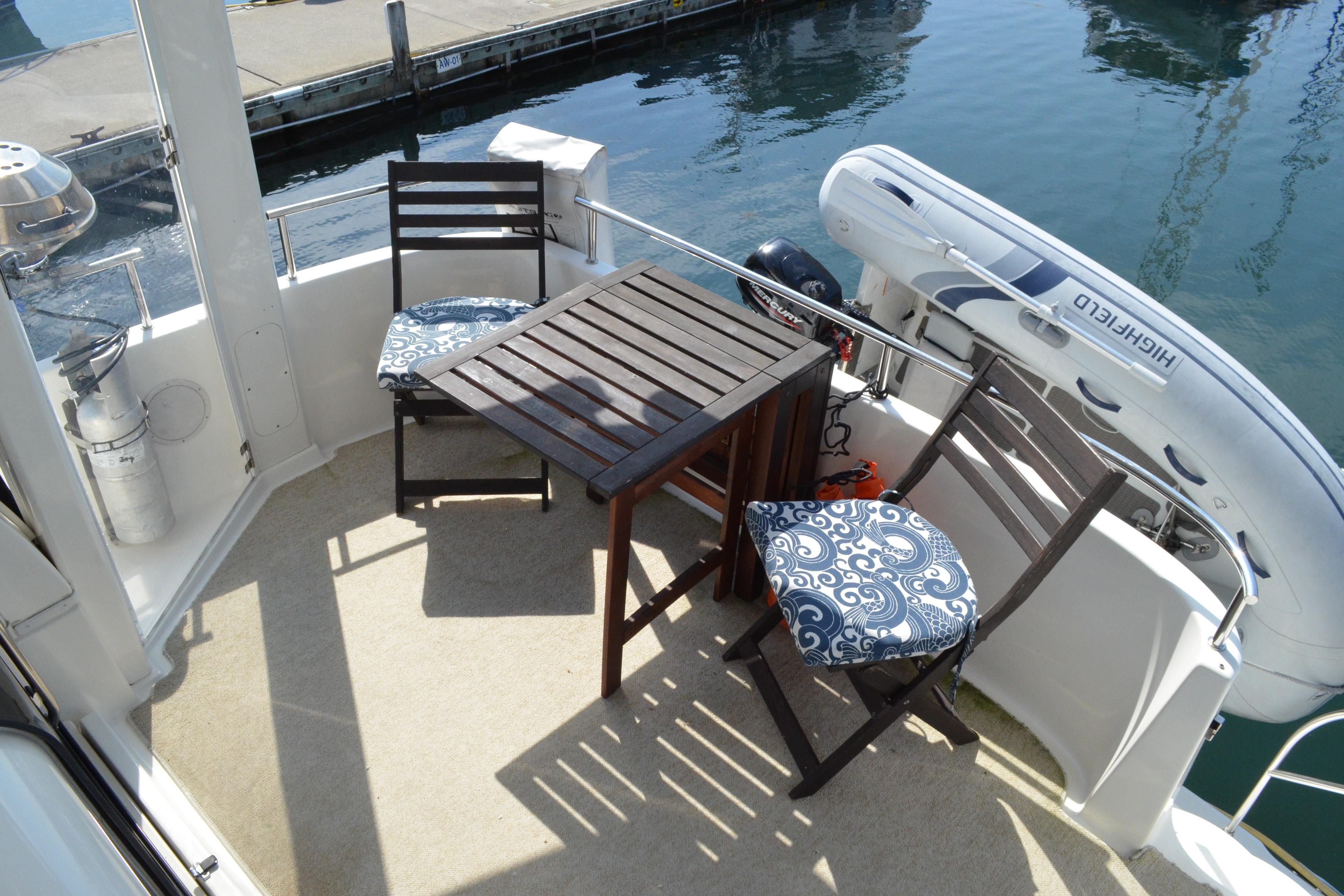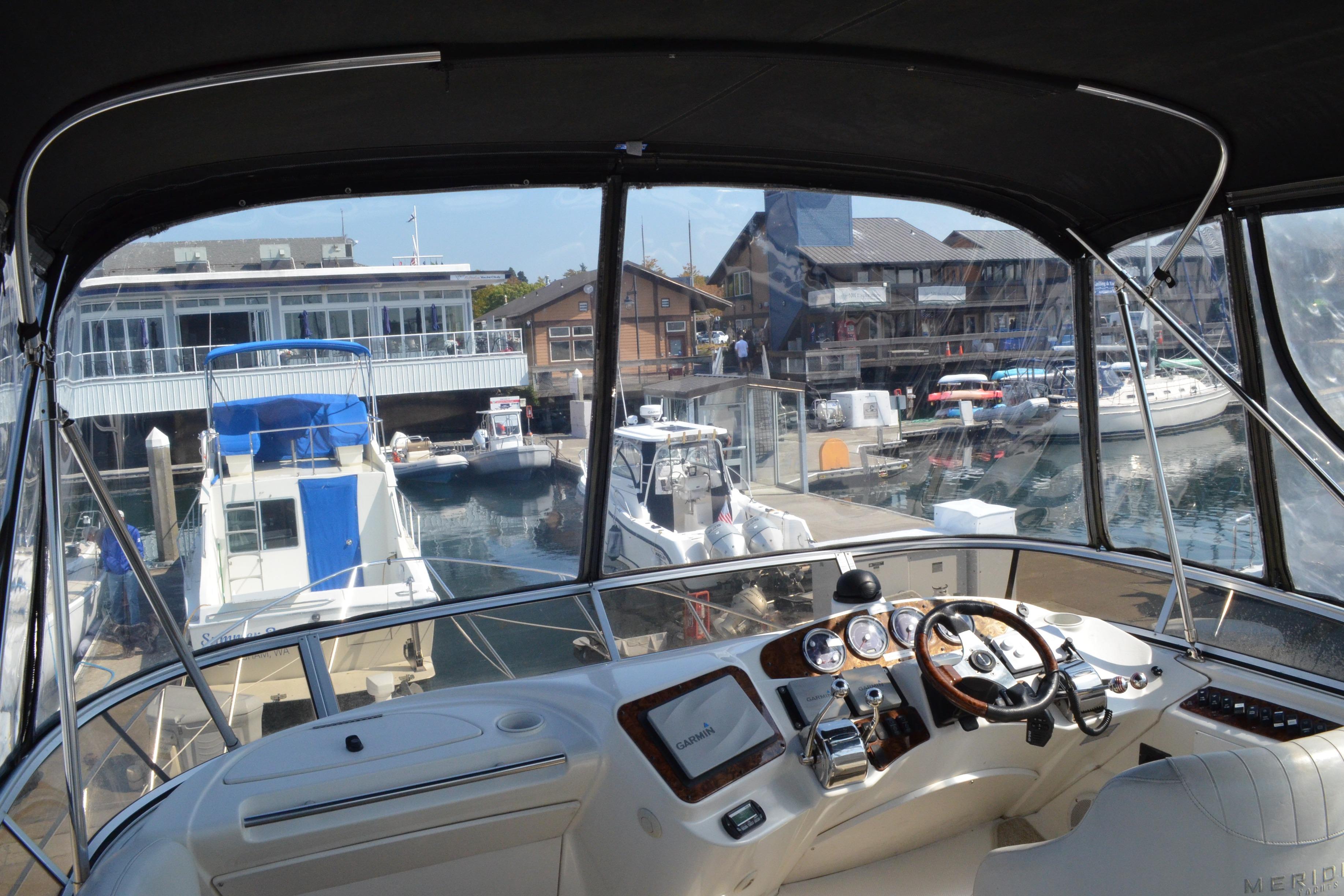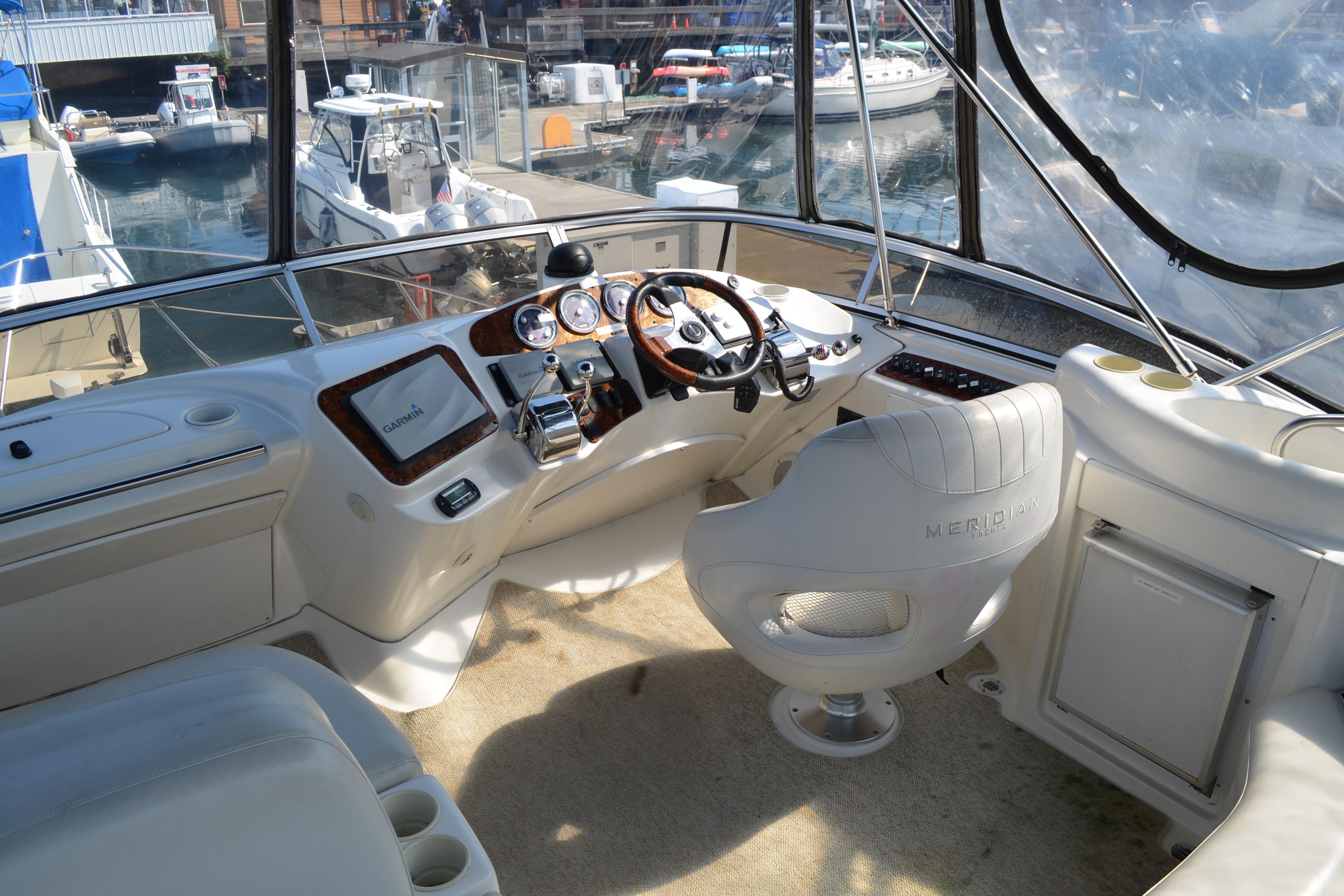 The Meridian 368 is a midrange cruiser with all the amenities of a larger cruising yacht in an efficient layout. This yacht features an aft, full-size master stateroom with queen-size berth and forward guest stateroom with large island berth. She also has two large heads with separate showers and private access to the staterooms. And her galley is well-appointed with a refrigerator/freezer, recessed two-burner cooktop and good storage space. Twin Cummins diesels and an Onan generator provide reliable power underway or at anchor. Three zones of reverse cycle heat and air-conditioning, a Weaver davit with a Highfield dinghy, propane BBQ, all the conveniences you would expect.