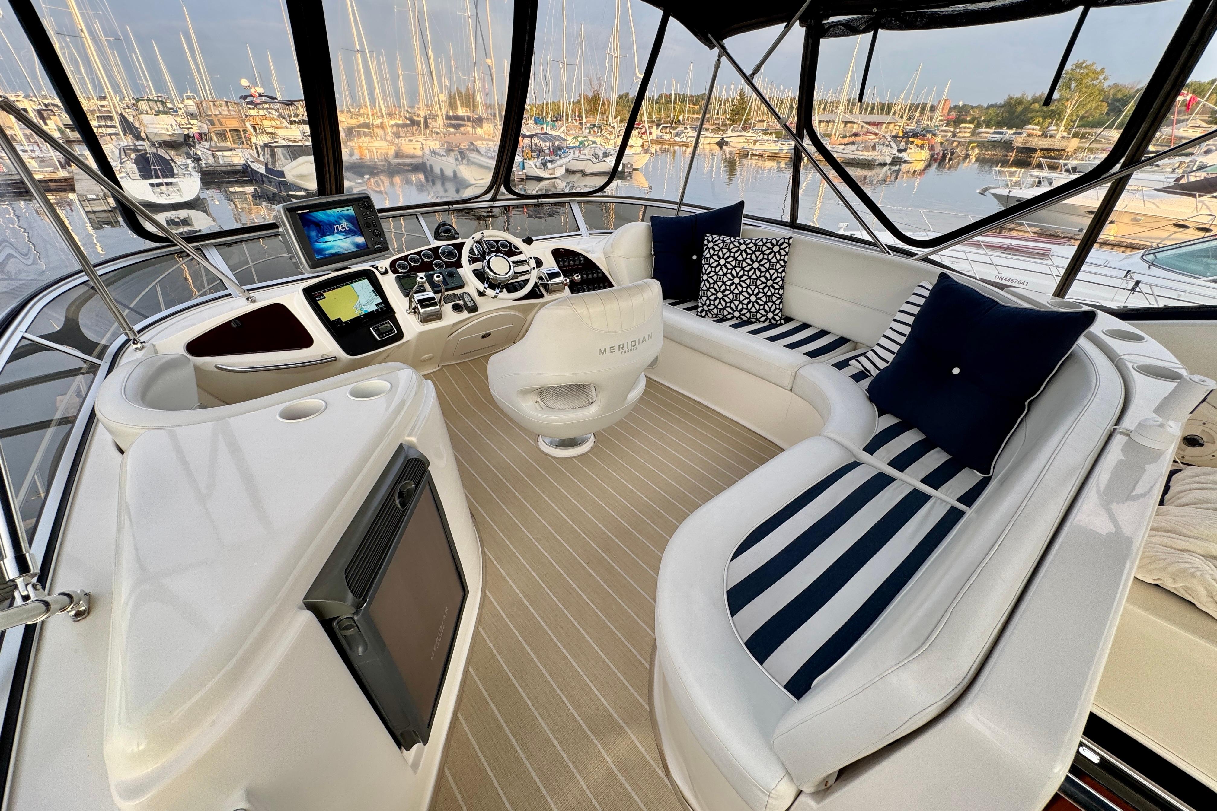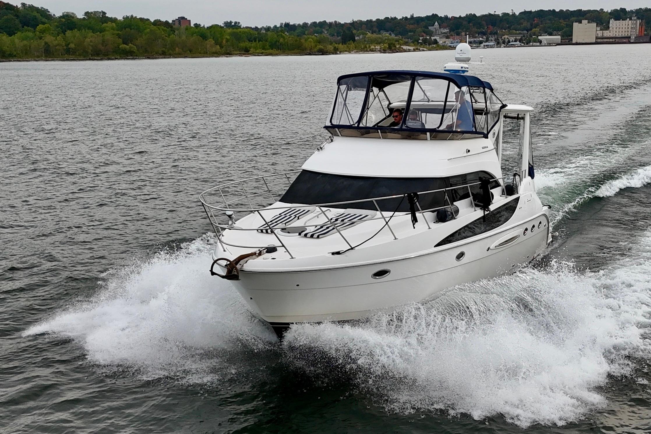 New to market September 2025! This clean freshwater example has been well-maintained and is ready for cruising. The Meridian 459 features a two-cabin, two-head layout. The large swim platform and cockpit provide easy access to the bridge via large molded steps, or into the aft cabin. The bridge and helm deck boast large, comfortable seating arrangements, perfect for entertaining. Down below, you have plenty of headroom and large windows providing lots of natural light. Aft you have the master with a walkaround queen and separate shower/head. Forward is a well appointed salon, day-head, and forward cabin with ensuite access.
