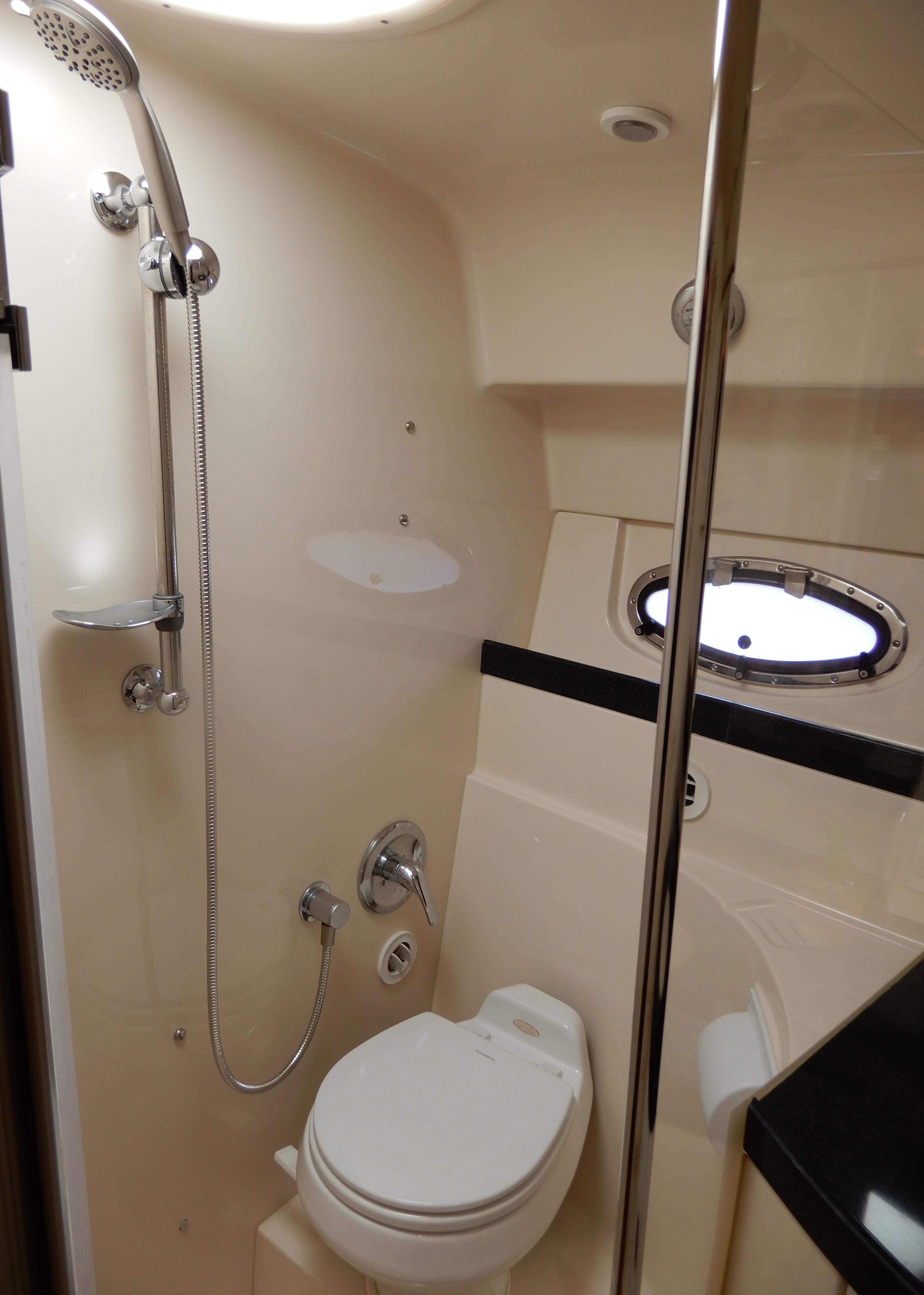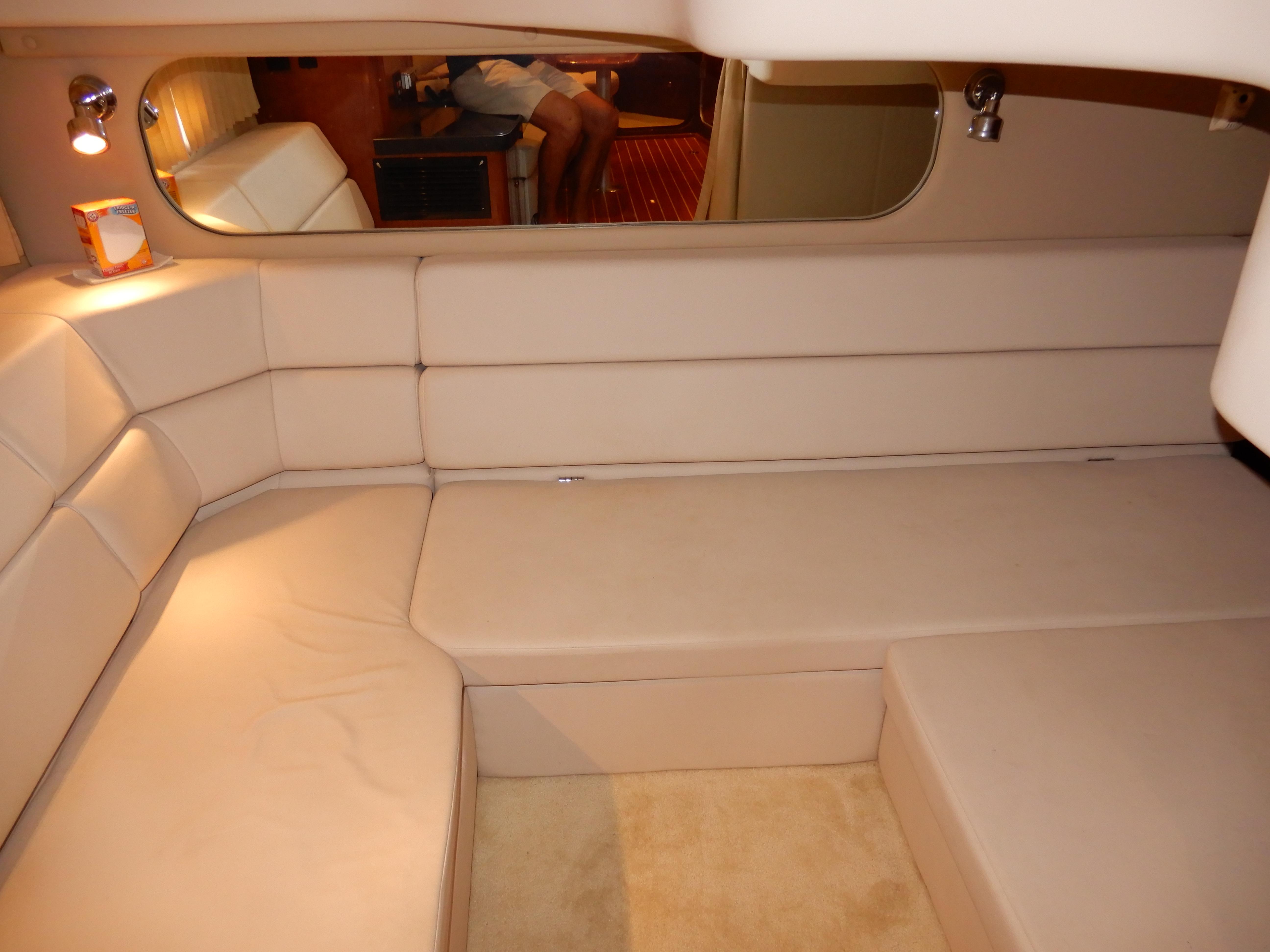 In the cabin there is a full galley, beautifully appointed settee, in the aft there is another lounge area that converts to a sleeper for 2 adults, forward there is a private head with separate shower, and in the front a private stateroom.