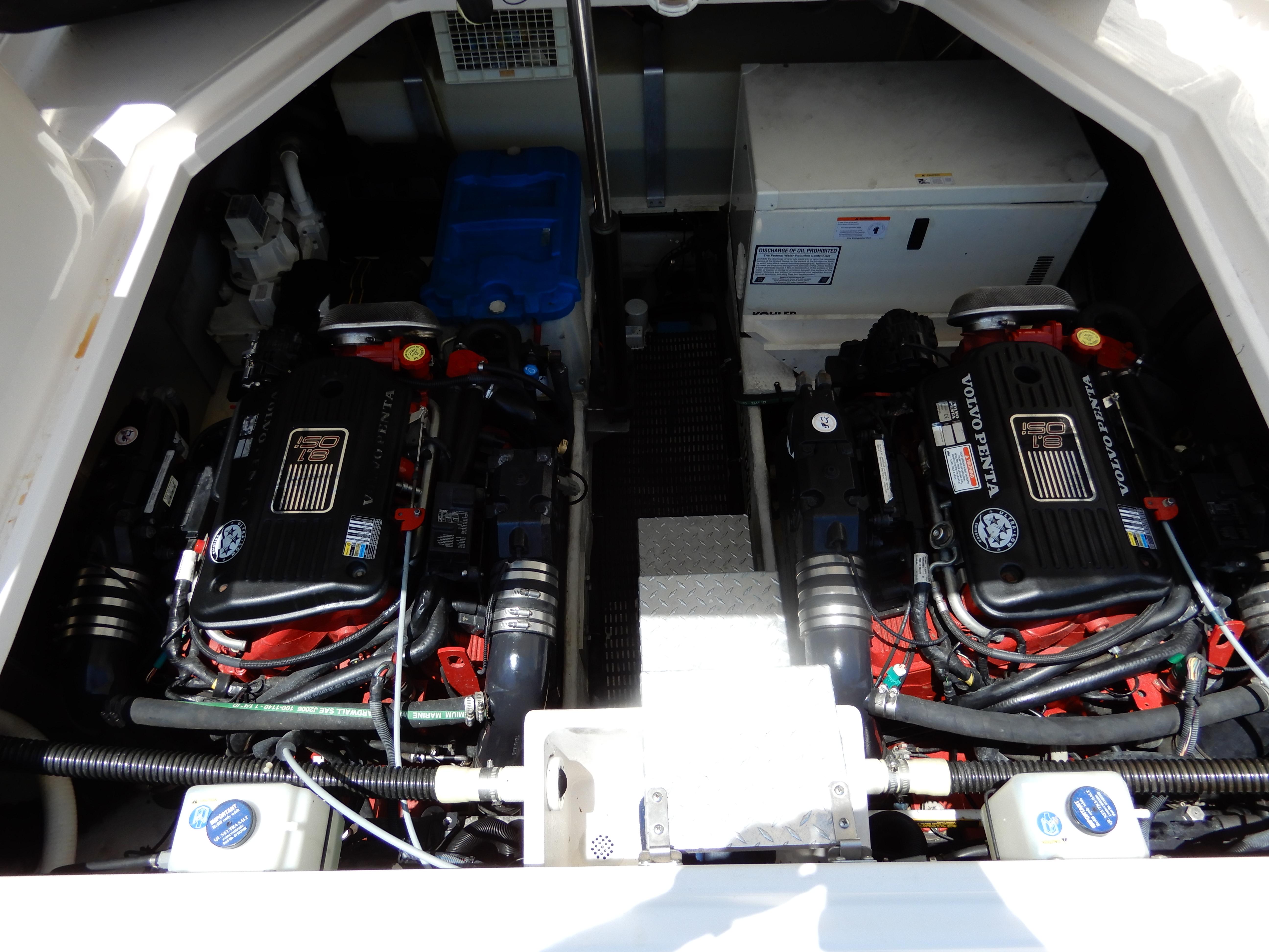 This One owner fresh water boat is powered by twin Volvo 8.1L with Ocean X Drives and a Kholer Genrator.
