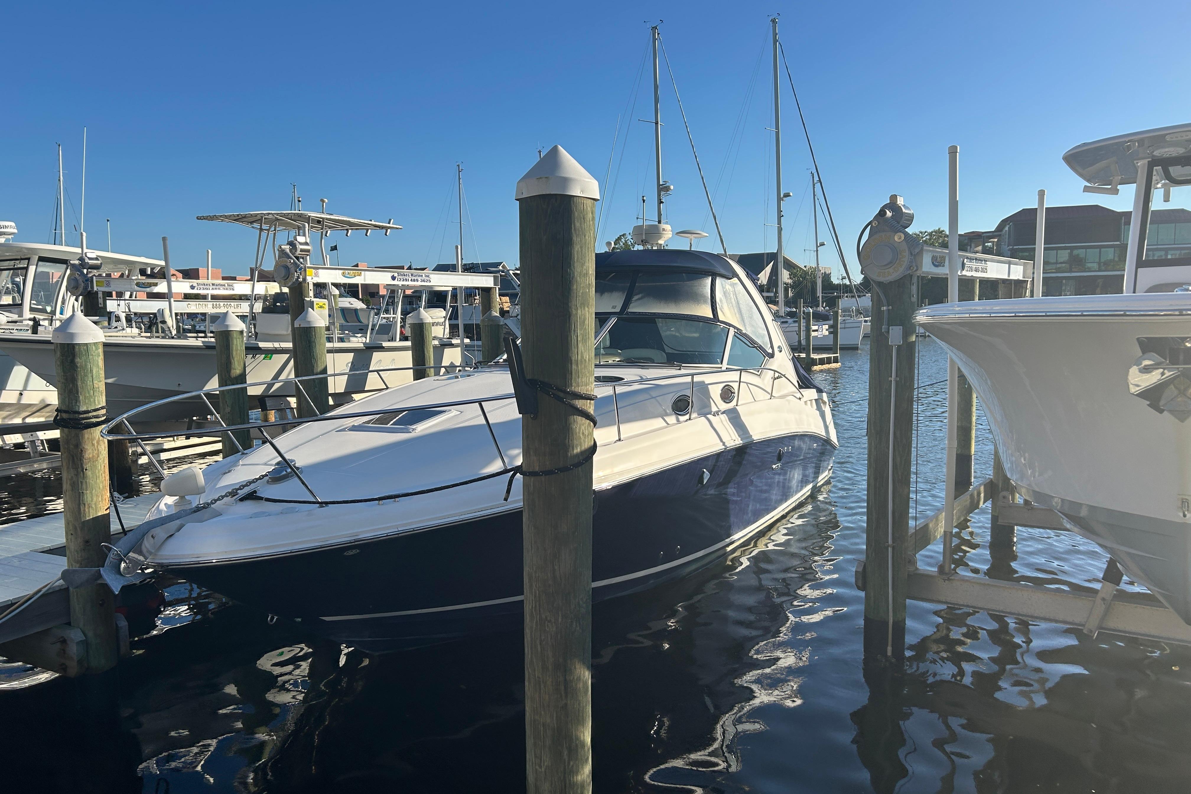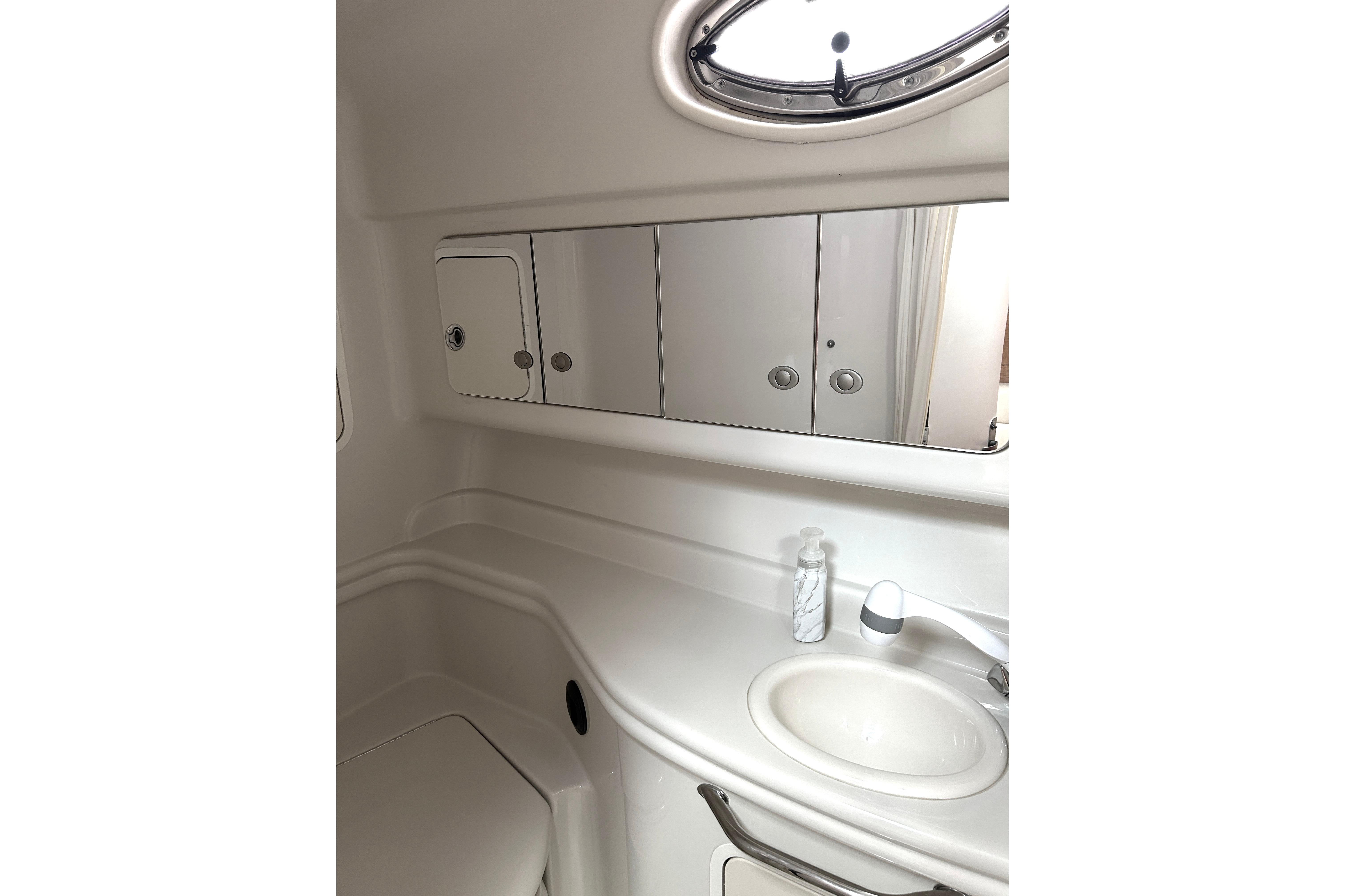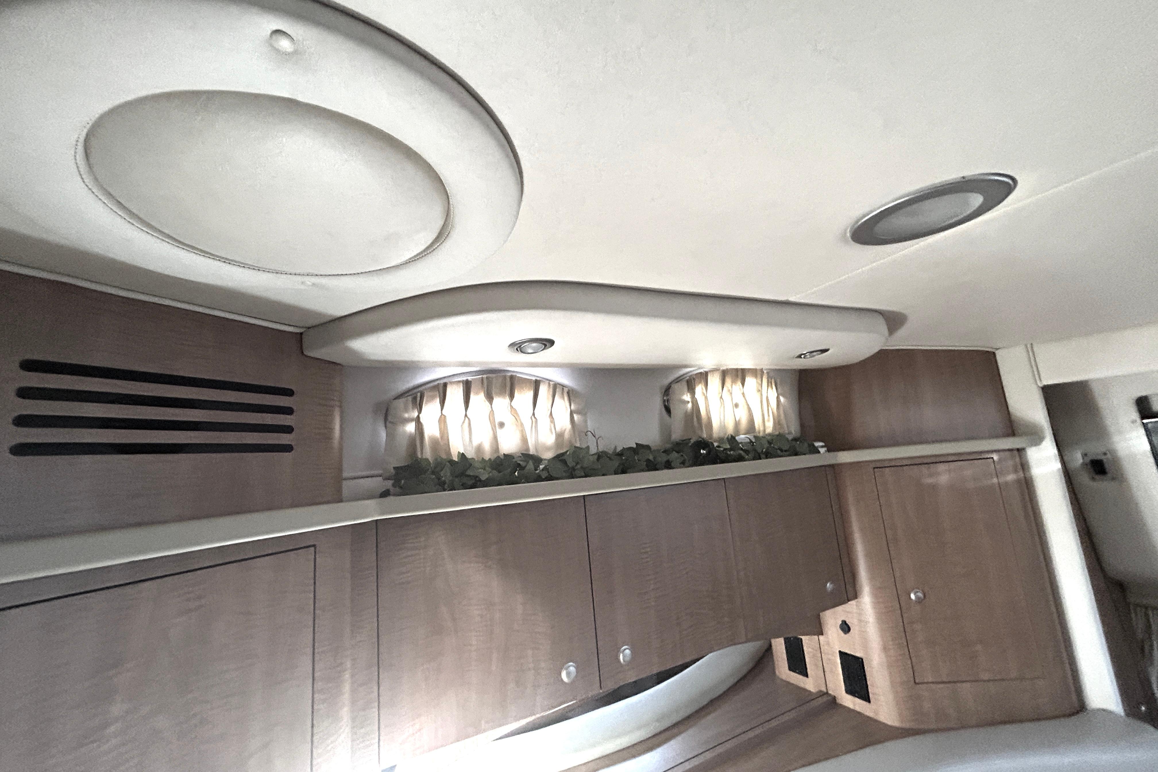 There's nothing quite like the exhilarating profile of this sleek 320 Sundancer. Its dramatic lines and bold colors make everything else look like it's sitting still. Exciting features include cockpit wet bar with Corian counter, extra-wide bench-style helm seating with two flip-up thigh-rise bolsters, optional underwater swim platform lighting, premium cabin surround sound, and lots more.