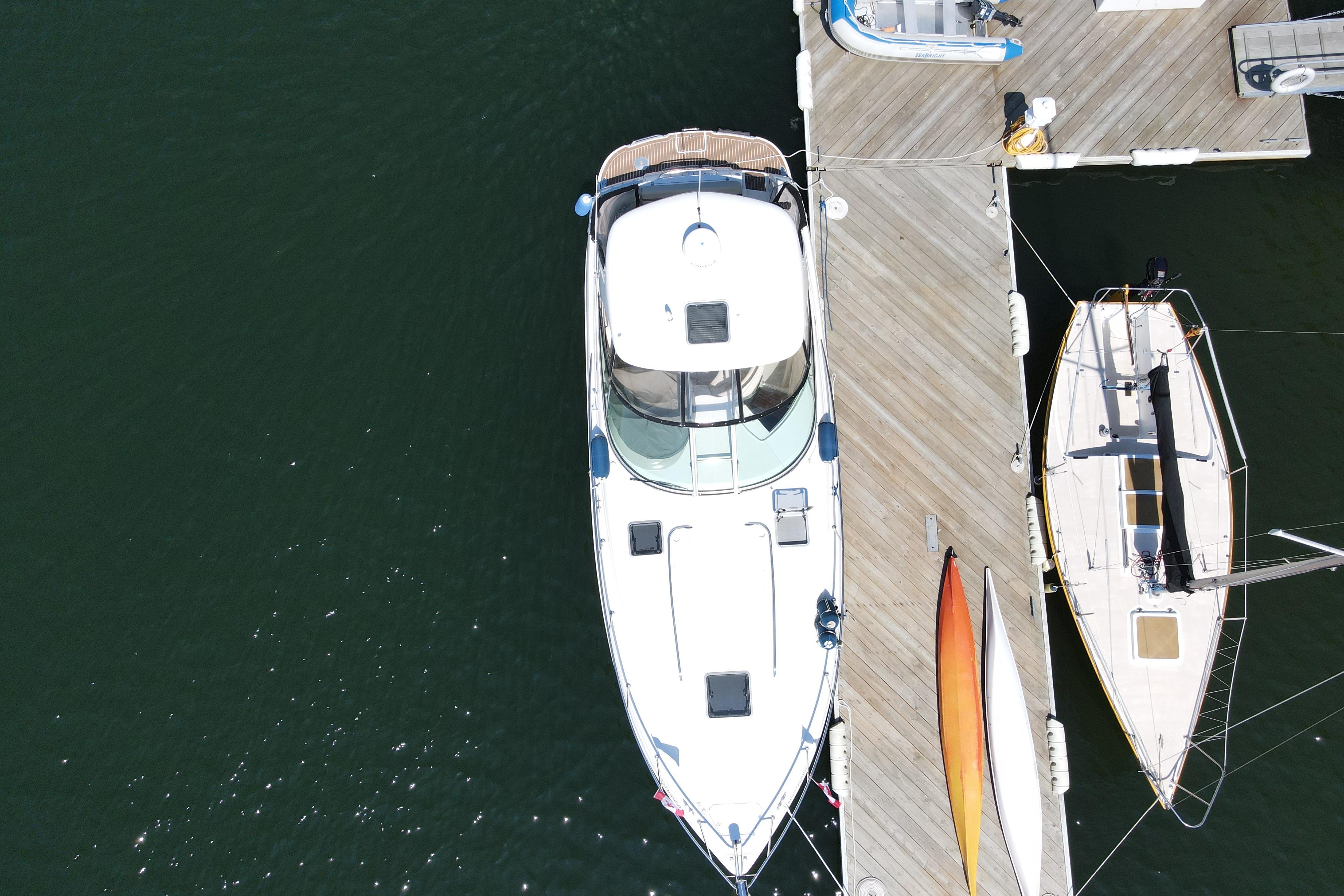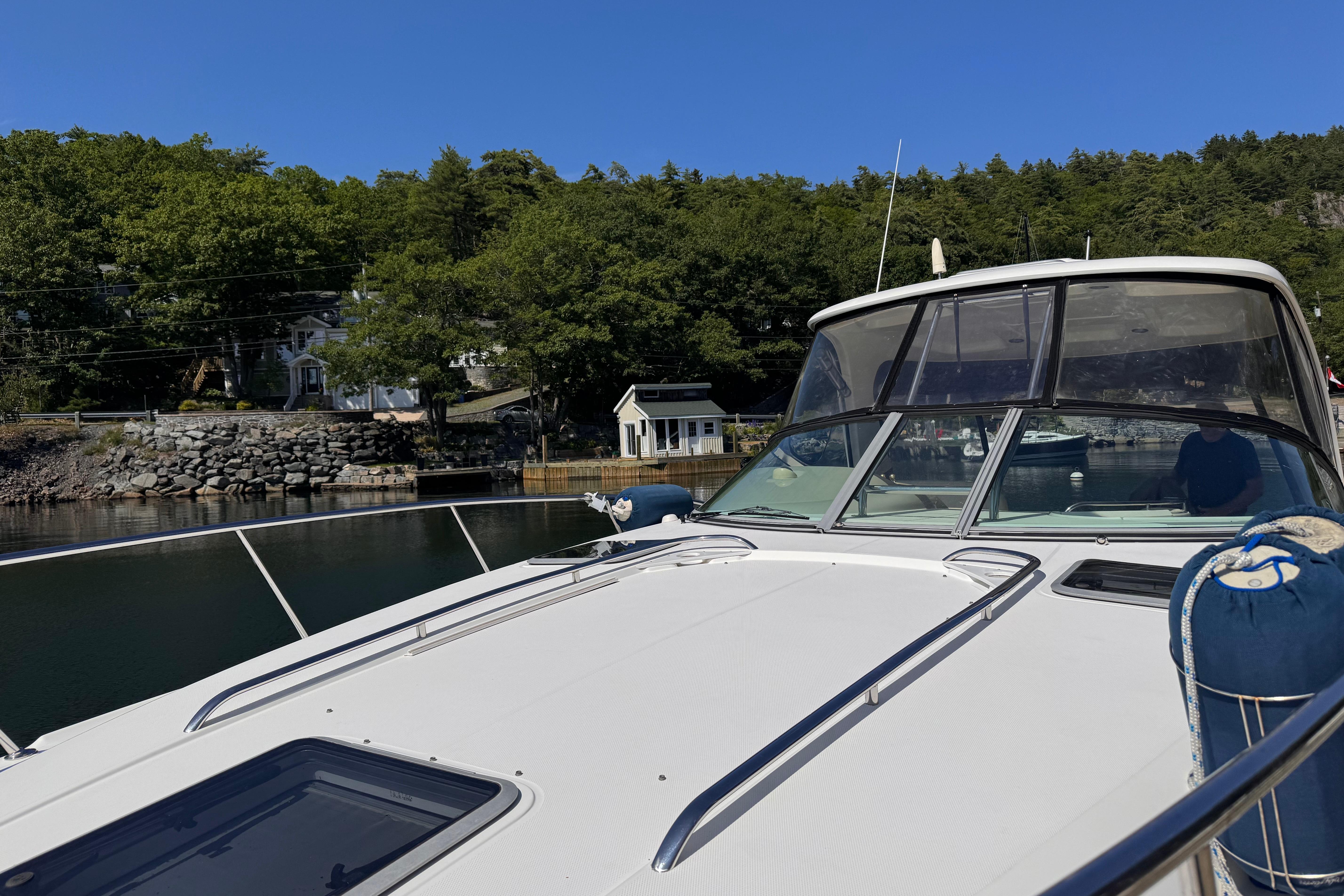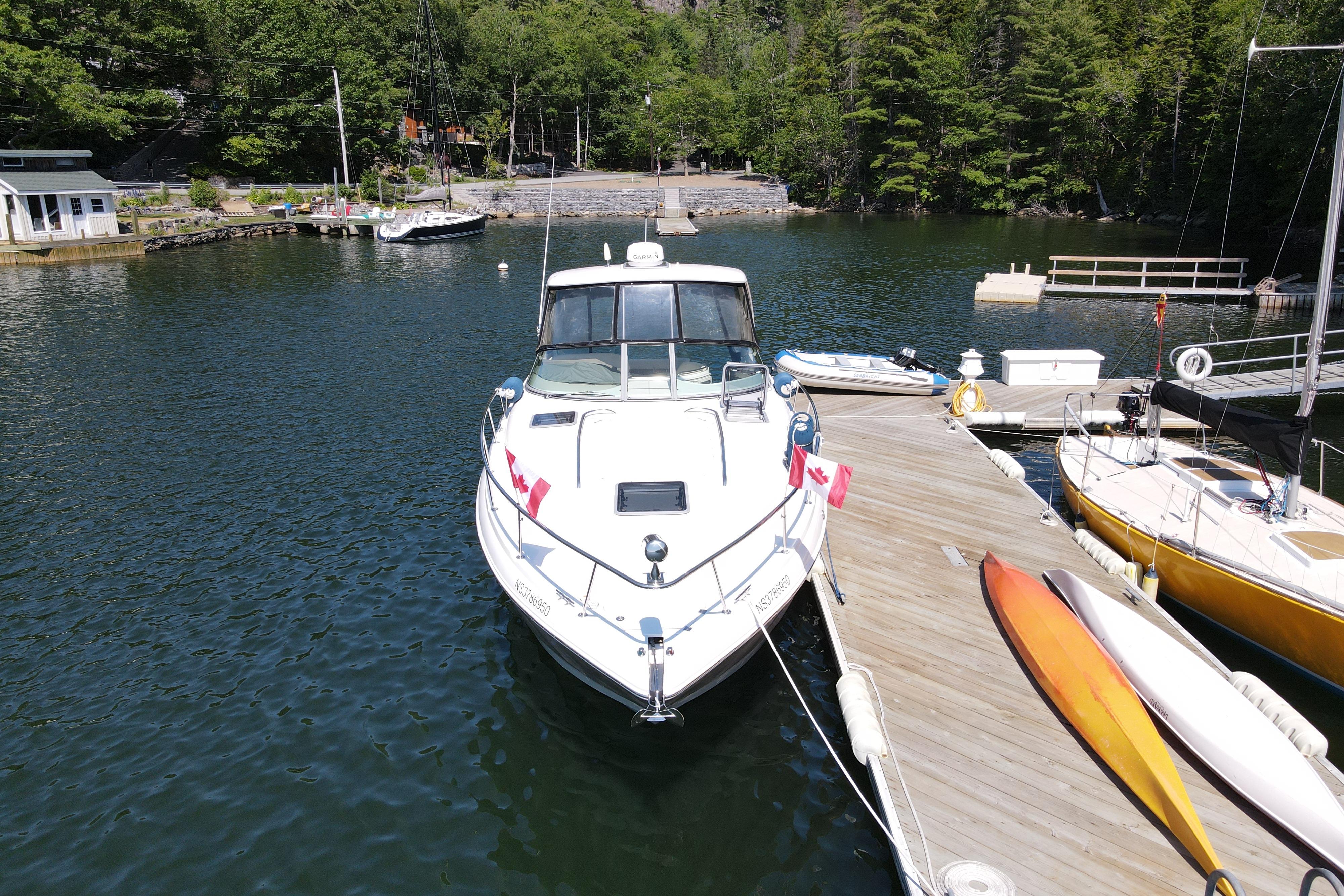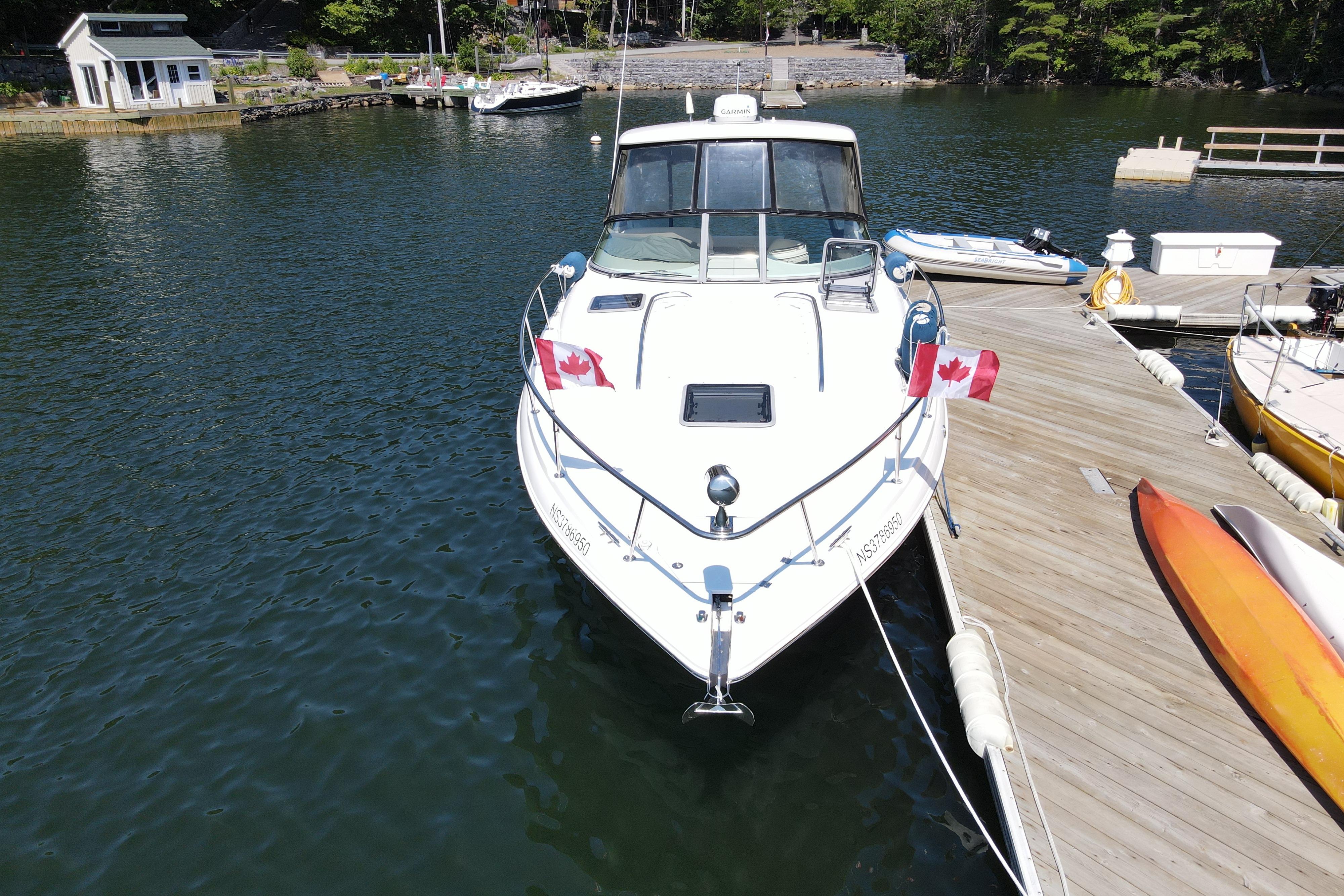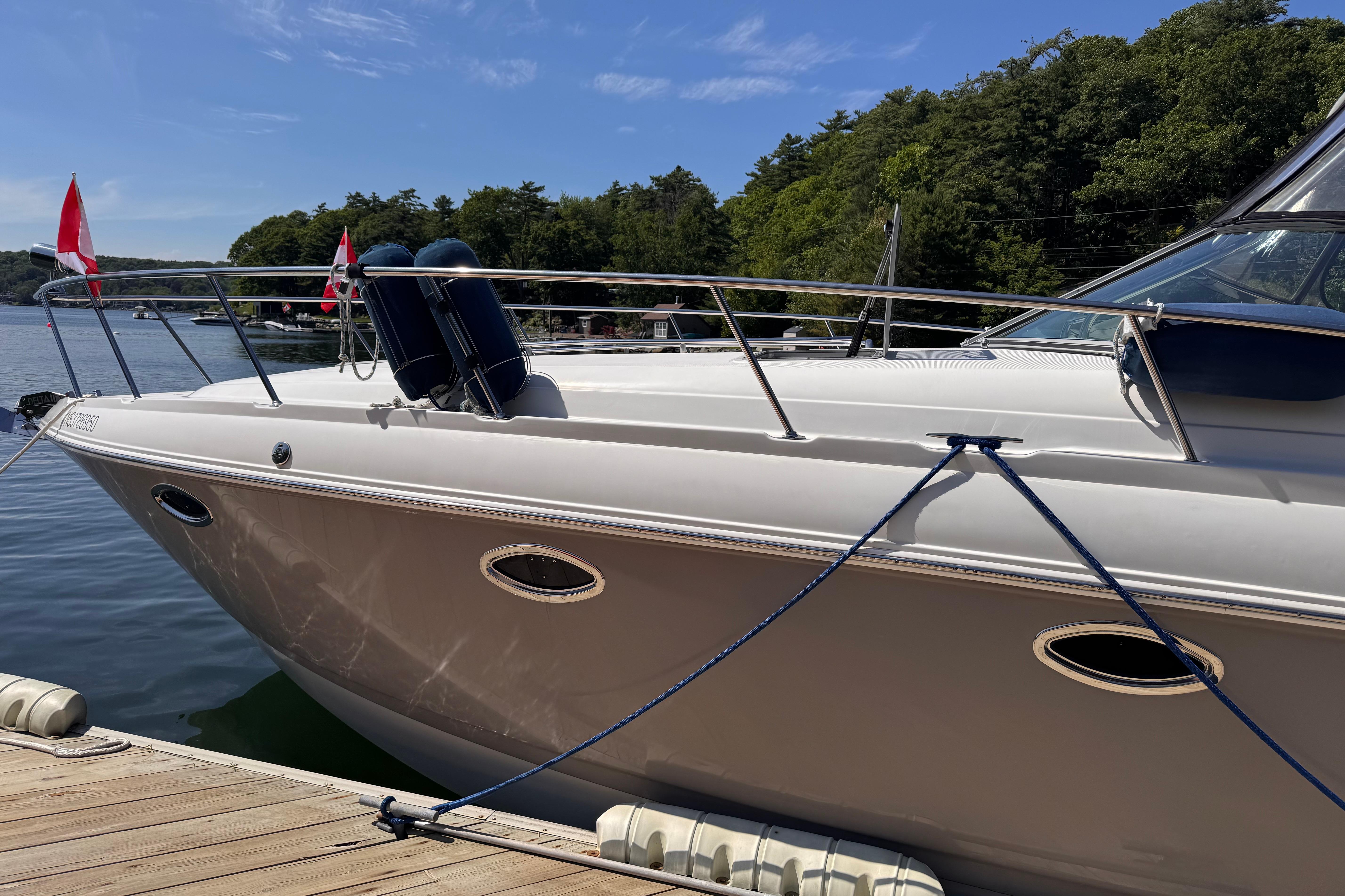 - New rear canvas c/w with new style Elastic Tie-downs 2023 - Additional Bilge pump installed 2023 and all pumps replaced at the same time - Front Bilge pump replaced 2024 - Bow Thruster motor rebuilt 2022 - Bow thruster Blade replaced 2023 - Bow thruster battery replaced 2024 - Shut Off Switch and Fusible Link for Bow Thruster replaced 2022 - House Battery and Gen Set batteries replaced 2023 - Main Engine Batteries replaced 2021 - All Battery cables replaced 2019 - All Electrical Shut Off Switches replaced 2023 - All engine exhaust manifolds and Risers replaced 2022 - Most Sensors replaced on both engines 2022/2023 - On Board Fire Extinguishing System replaced 2022 - Rudders pulled, shafts and bushings inspected and new packing 2022 - Navionics upgrade in 2022 with Garmin 7410 Marine GPS Plotter/radar - New Dome Radar and Depth Sounder 2022 - New Icom VHF IC-M506 Marine radio and Fiberglass antenna 2023 - Bottom Paint last spring - Props, shafts and Trim Tabs had “ Prop Speed “ coatings applied Spring 2023 - Boat is compounded and waxed annually - Full Service carried out by Conrad's Marine November 2024 including winterization and Shrink wrapped. - Some seat cushions and backrests reupholstered in Spring 2023 - Carpets were new in 2021 - Shower Controls at Swim Platform replaced 2023