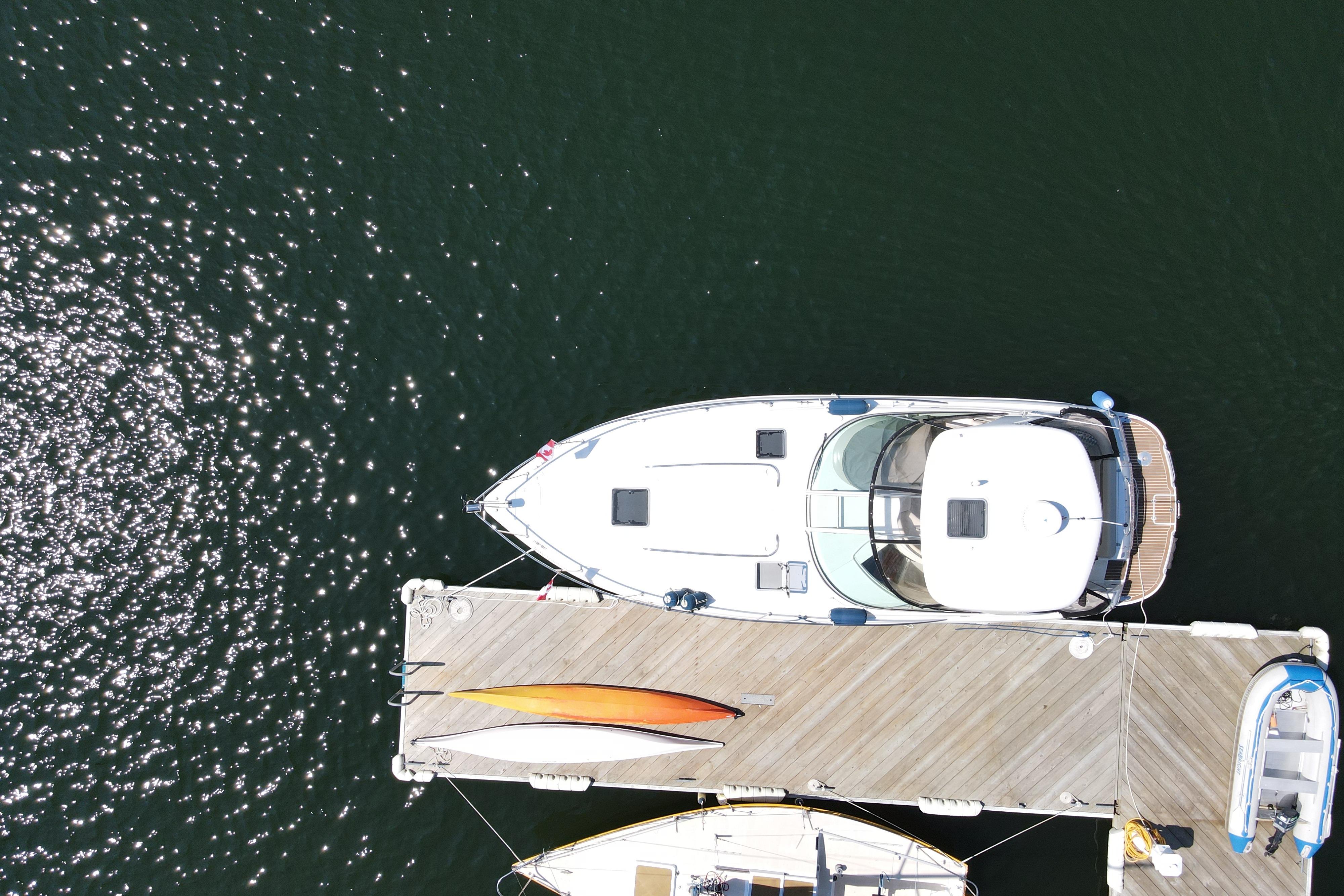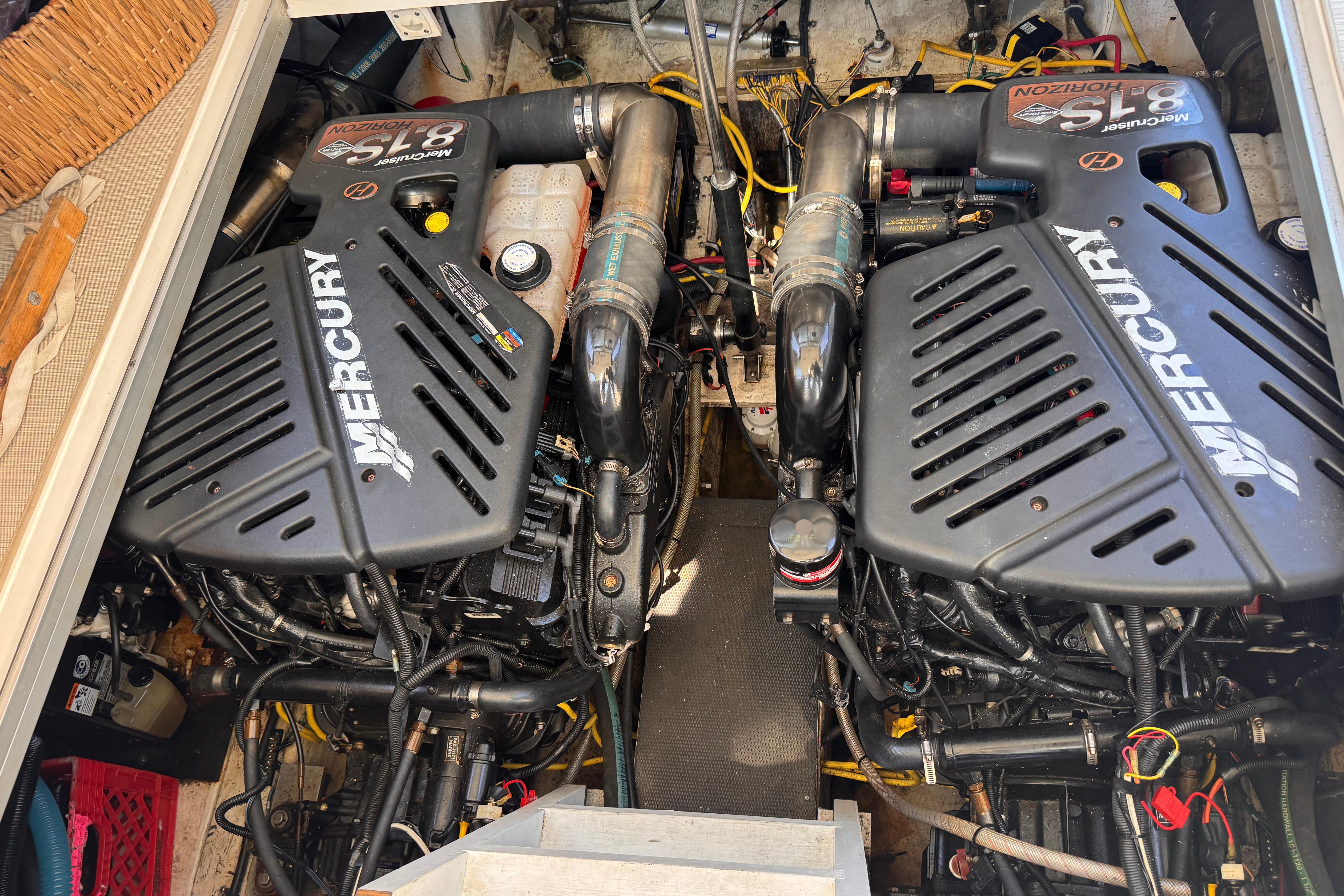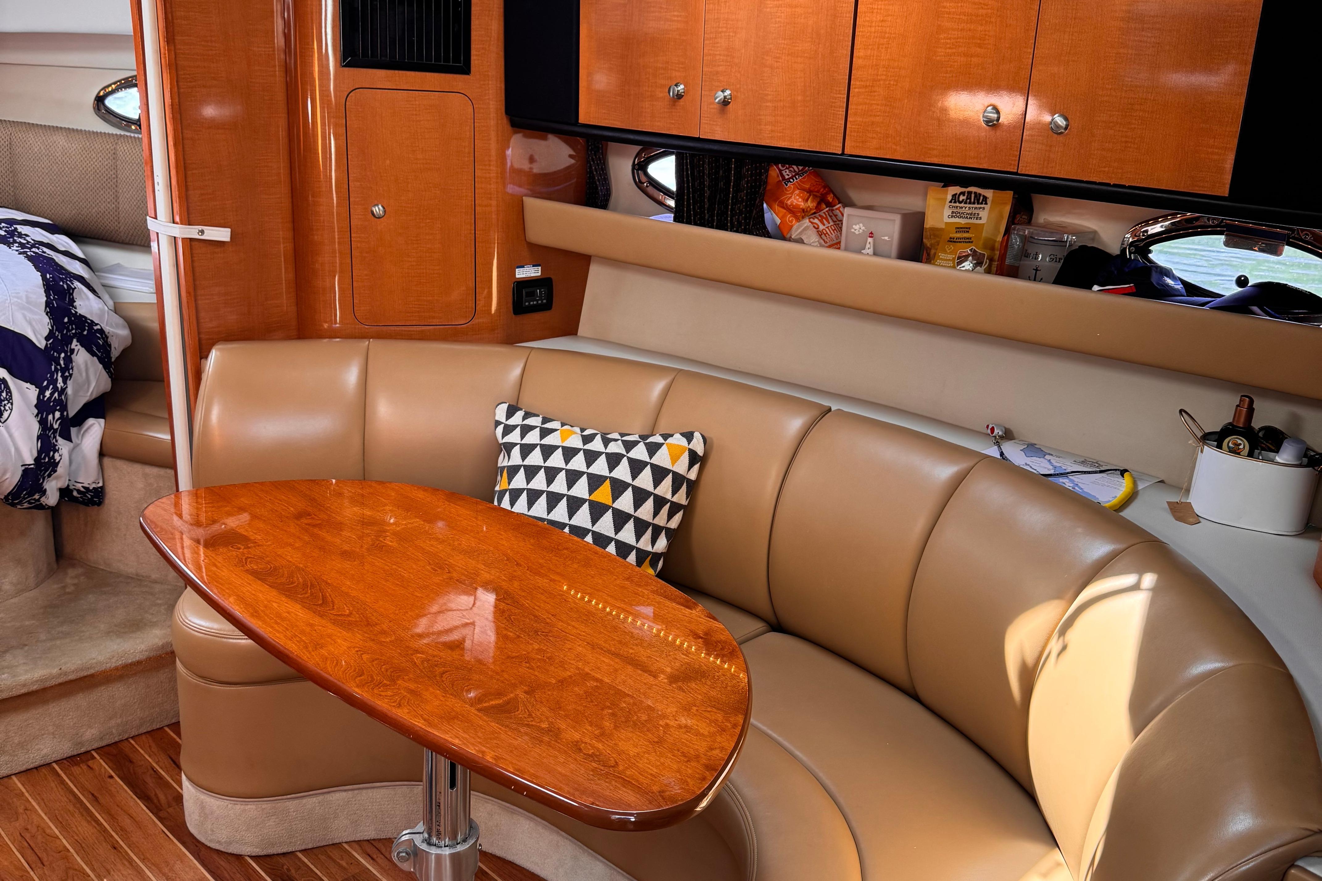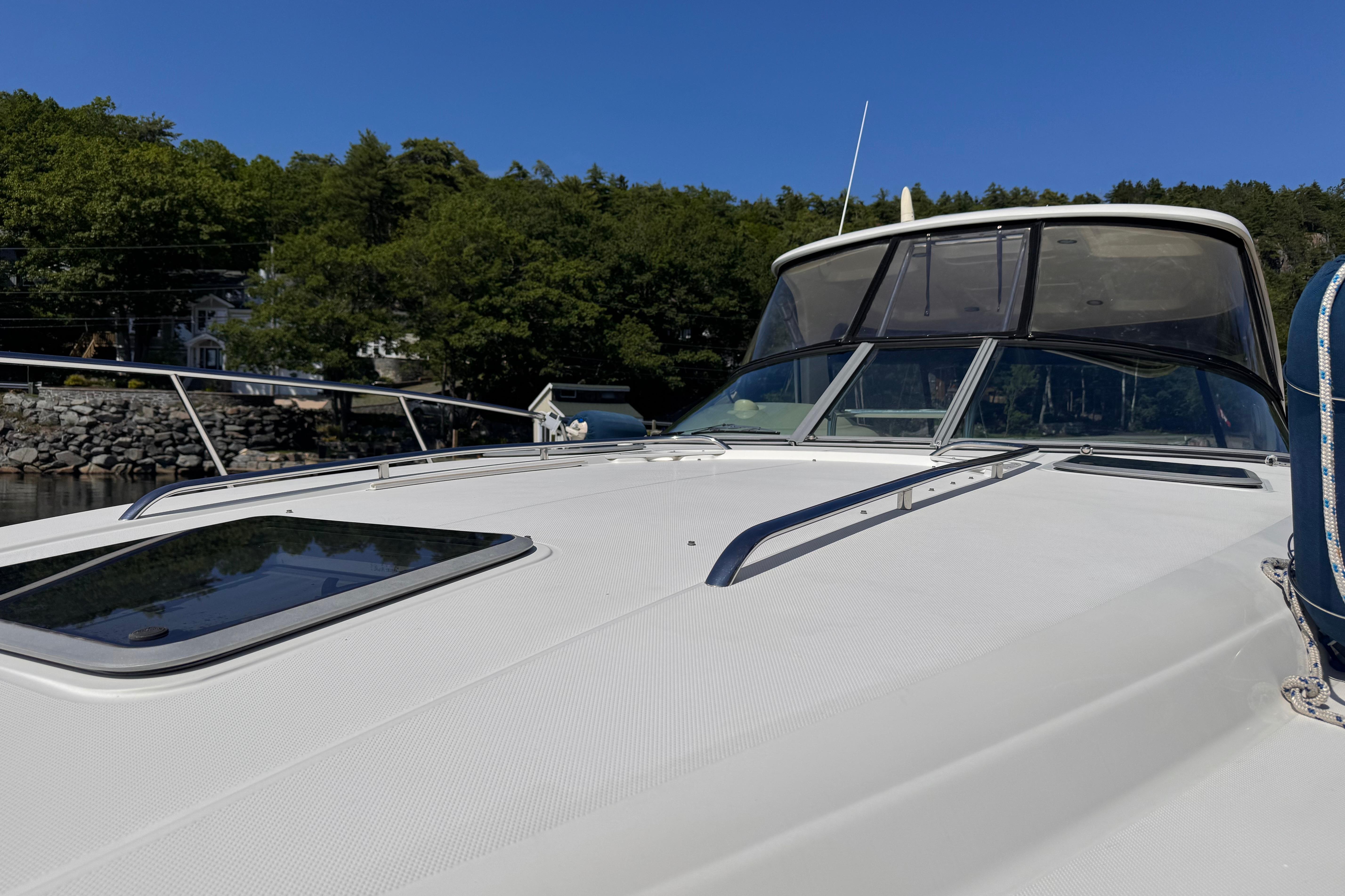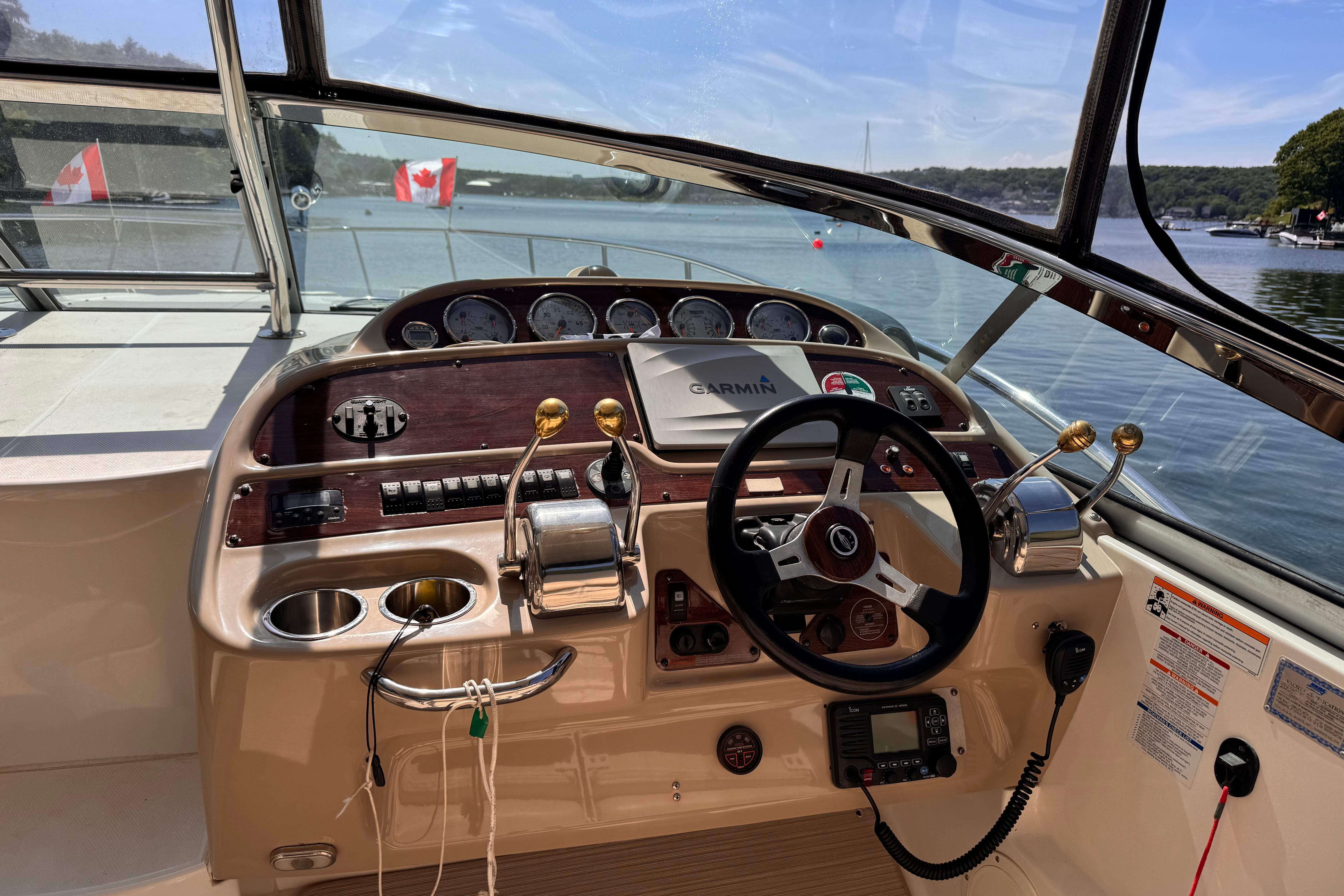 - New rear canvas c/w with new style Elastic Tie-downs 2023 - Additional Bilge pump installed 2023 and all pumps replaced at the same time - Front Bilge pump replaced 2024 - Bow Thruster motor rebuilt 2022 - Bow thruster Blade replaced 2023 - Bow thruster battery replaced 2024 - Shut Off Switch and Fusible Link for Bow Thruster replaced 2022 - House Battery and Gen Set batteries replaced 2023 - Main Engine Batteries replaced 2021 - All Battery cables replaced 2019 - All Electrical Shut Off Switches replaced 2023 - All engine exhaust manifolds and Risers replaced 2022 - Most Sensors replaced on both engines 2022/2023 - On Board Fire Extinguishing System replaced 2022 - Rudders pulled, shafts and bushings inspected and new packing 2022 - Navionics upgrade in 2022 with Garmin 7410 Marine GPS Plotter/radar - New Dome Radar and Depth Sounder 2022 - New Icom VHF IC-M506 Marine radio and Fiberglass antenna 2023 - Bottom Paint last spring - Props, shafts and Trim Tabs had “ Prop Speed “ coatings applied Spring 2023 - Boat is compounded and waxed annually - Full Service carried out by Conrad's Marine November 2024 including winterization and Shrink wrapped. - Some seat cushions and backrests reupholstered in Spring 2023 - Carpets were new in 2021 - Shower Controls at Swim Platform replaced 2023