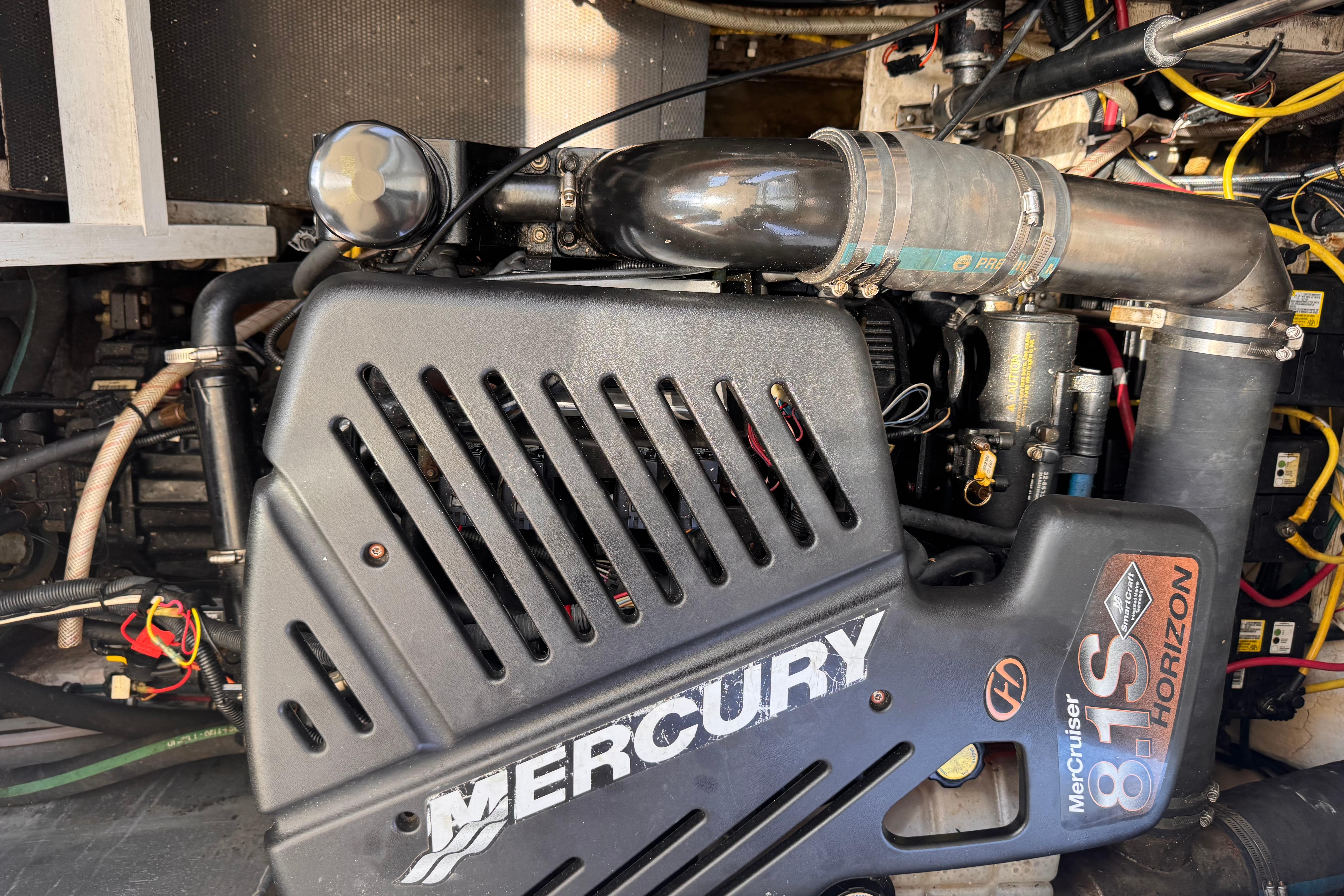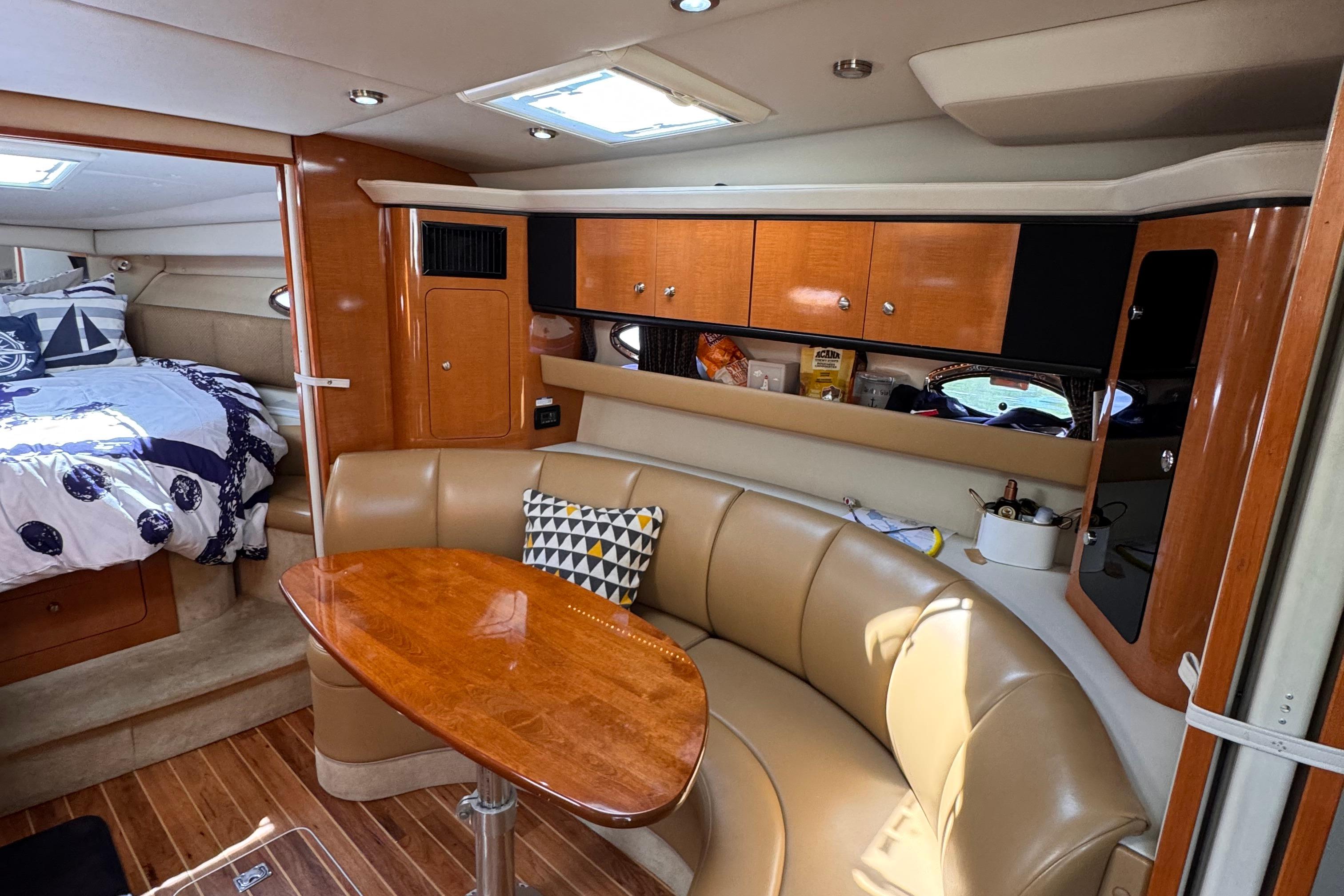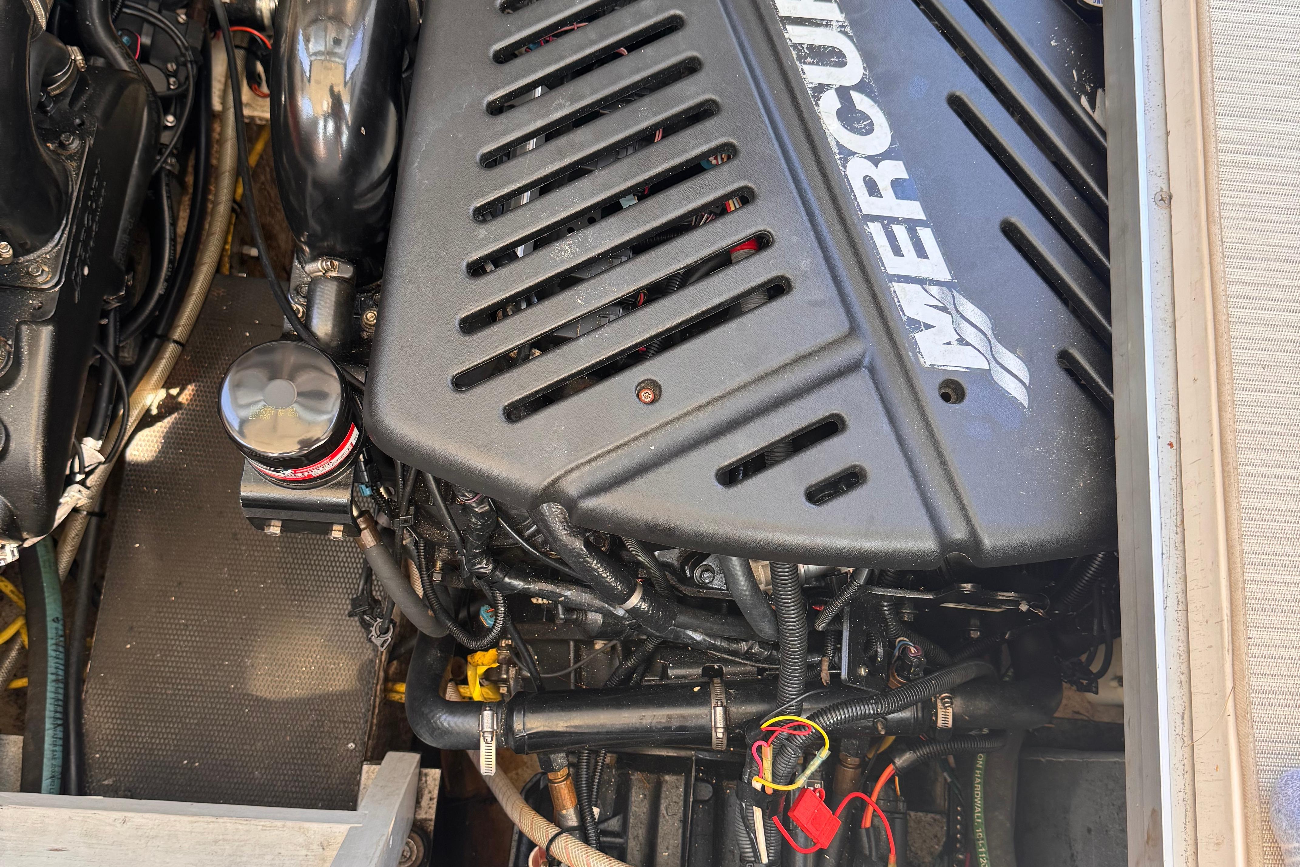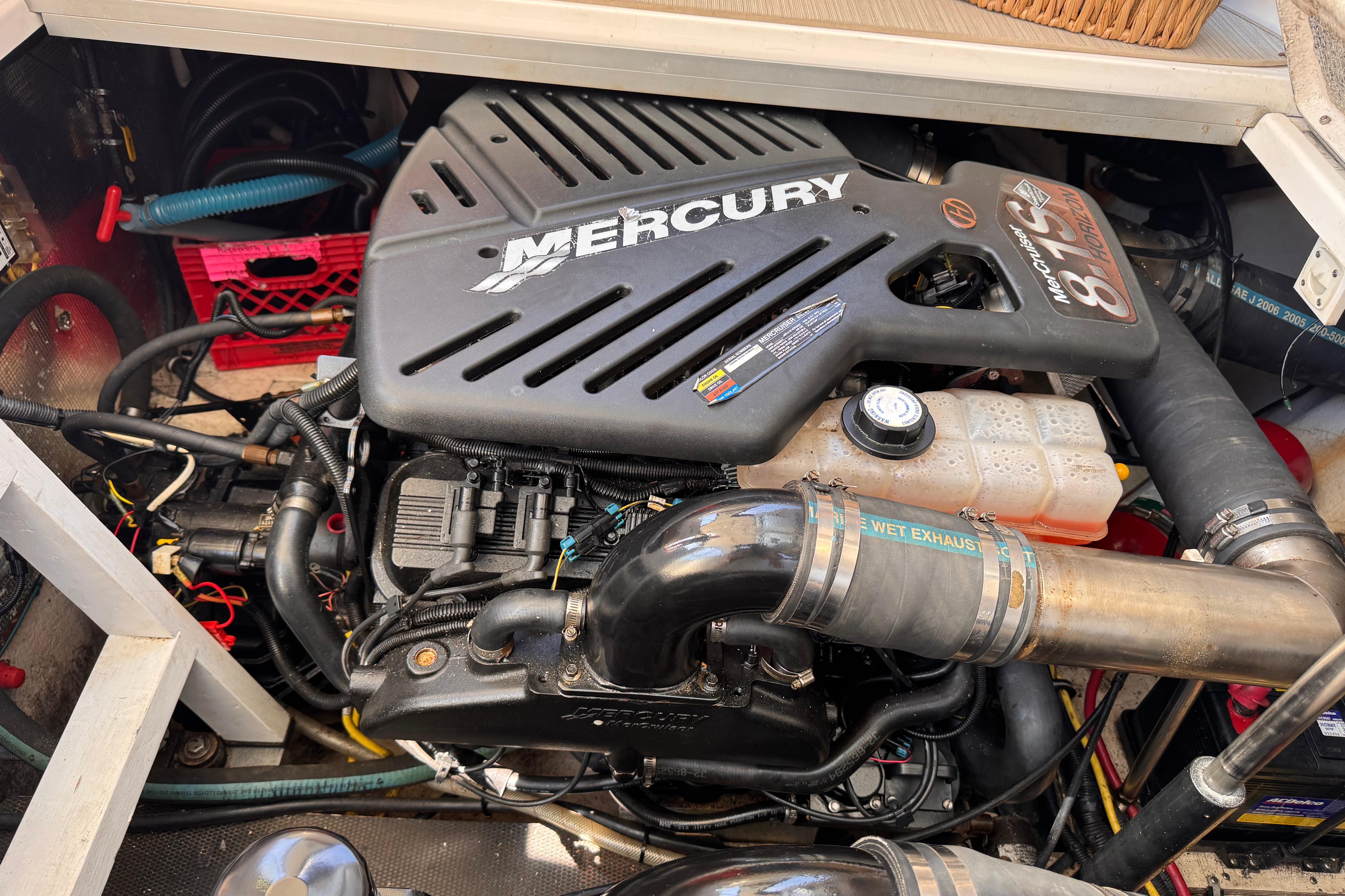 - New rear canvas c/w with new style Elastic Tie-downs 2023 - Additional Bilge pump installed 2023 and all pumps replaced at the same time - Front Bilge pump replaced 2024 - Bow Thruster motor rebuilt 2022 - Bow thruster Blade replaced 2023 - Bow thruster battery replaced 2024 - Shut Off Switch and Fusible Link for Bow Thruster replaced 2022 - House Battery and Gen Set batteries replaced 2023 - Main Engine Batteries replaced 2021 - All Battery cables replaced 2019 - All Electrical Shut Off Switches replaced 2023 - All engine exhaust manifolds and Risers replaced 2022 - Most Sensors replaced on both engines 2022/2023 - On Board Fire Extinguishing System replaced 2022 - Rudders pulled, shafts and bushings inspected and new packing 2022 - Navionics upgrade in 2022 with Garmin 7410 Marine GPS Plotter/radar - New Dome Radar and Depth Sounder 2022 - New Icom VHF IC-M506 Marine radio and Fiberglass antenna 2023 - Bottom Paint last spring - Props, shafts and Trim Tabs had “ Prop Speed “ coatings applied Spring 2023 - Boat is compounded and waxed annually - Full Service carried out by Conrad's Marine November 2024 including winterization and Shrink wrapped. - Some seat cushions and backrests reupholstered in Spring 2023 - Carpets were new in 2021 - Shower Controls at Swim Platform replaced 2023