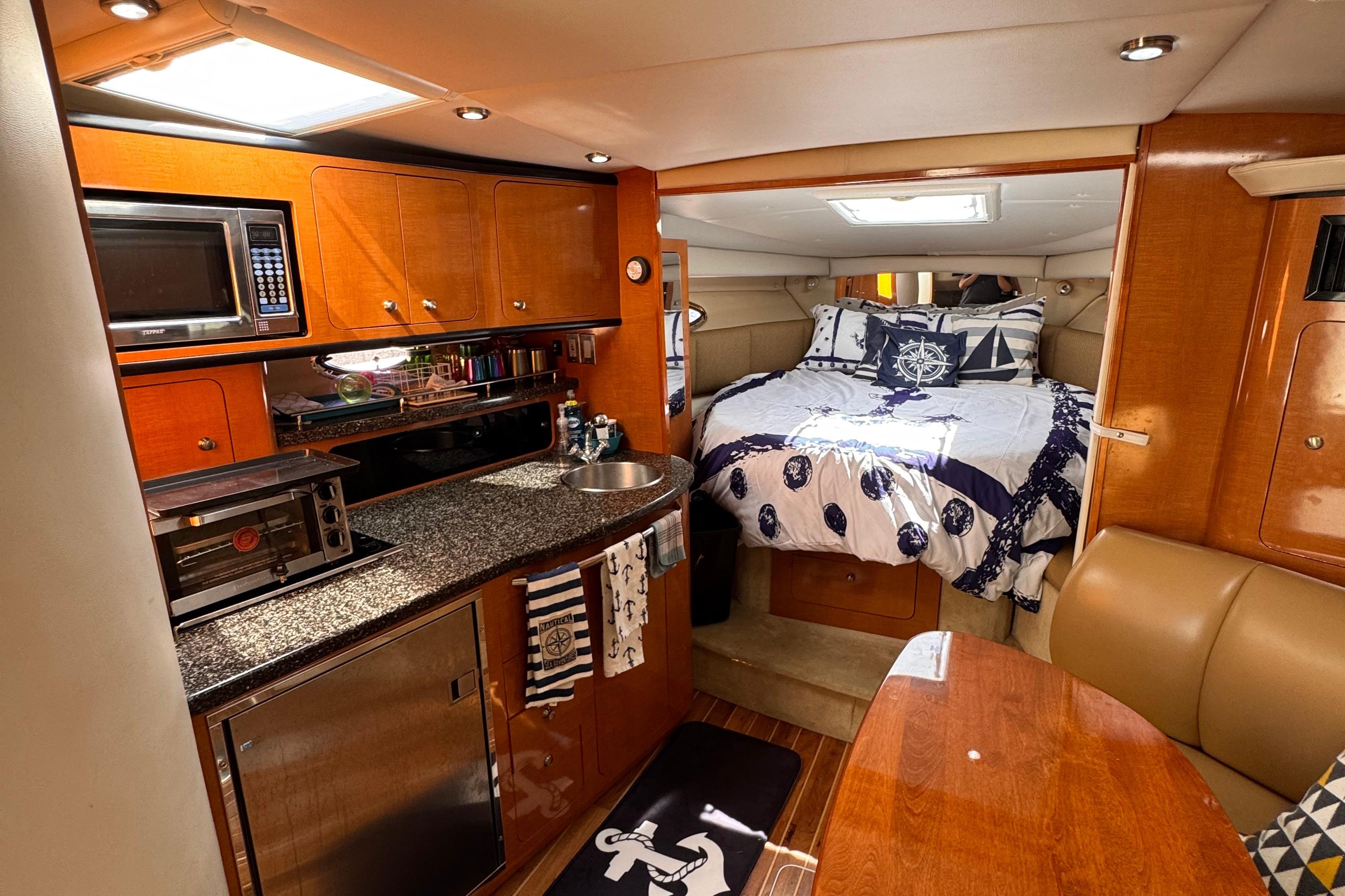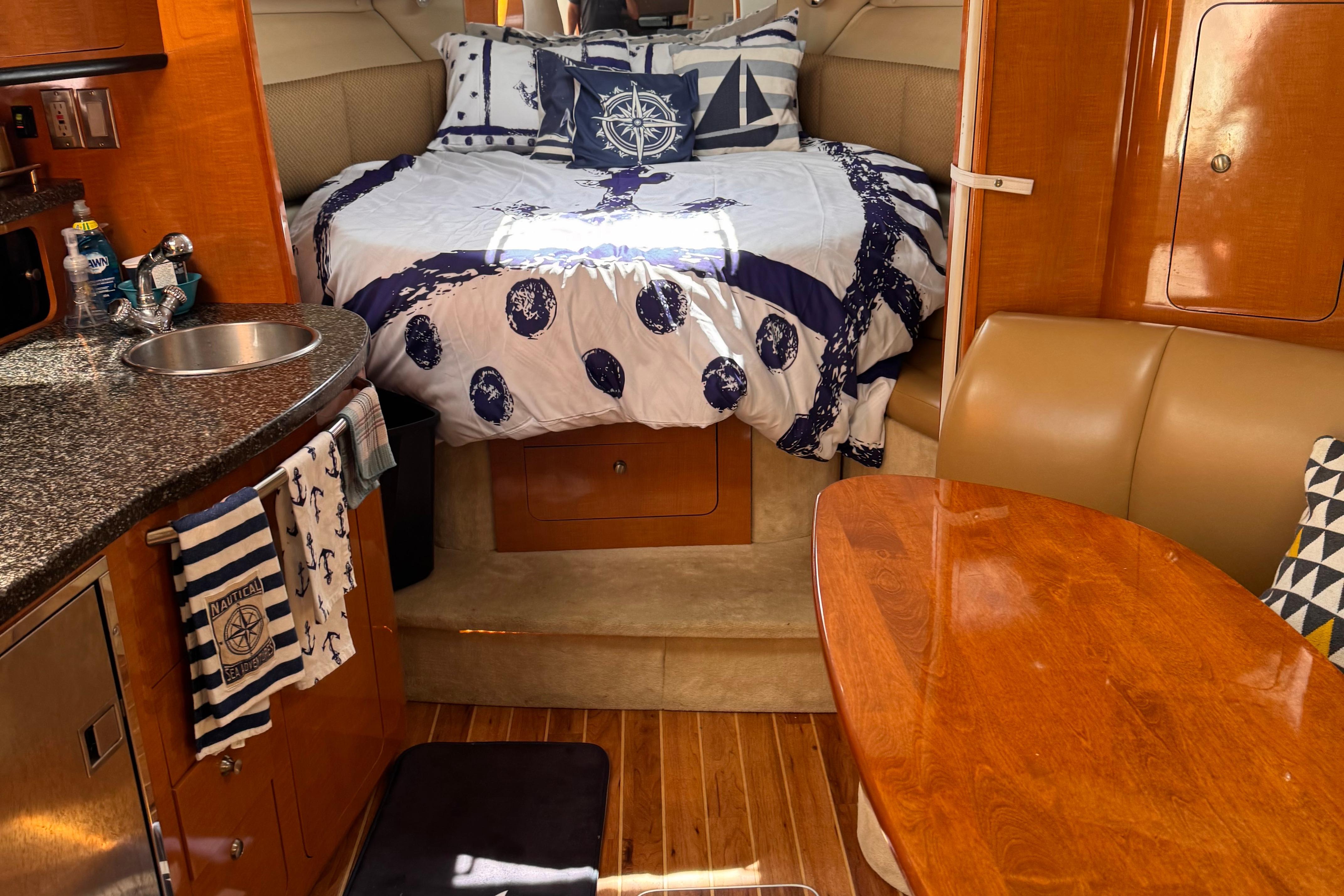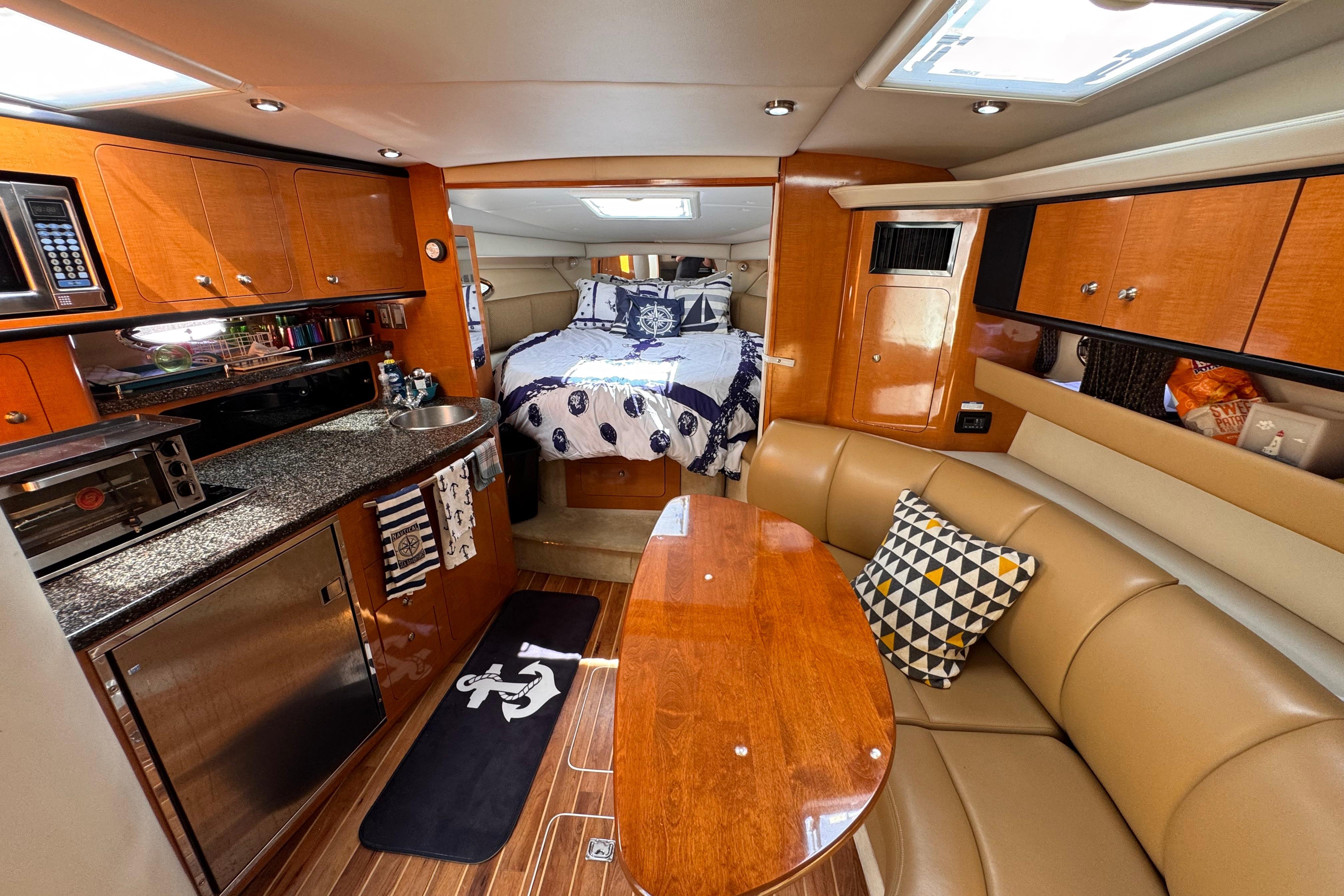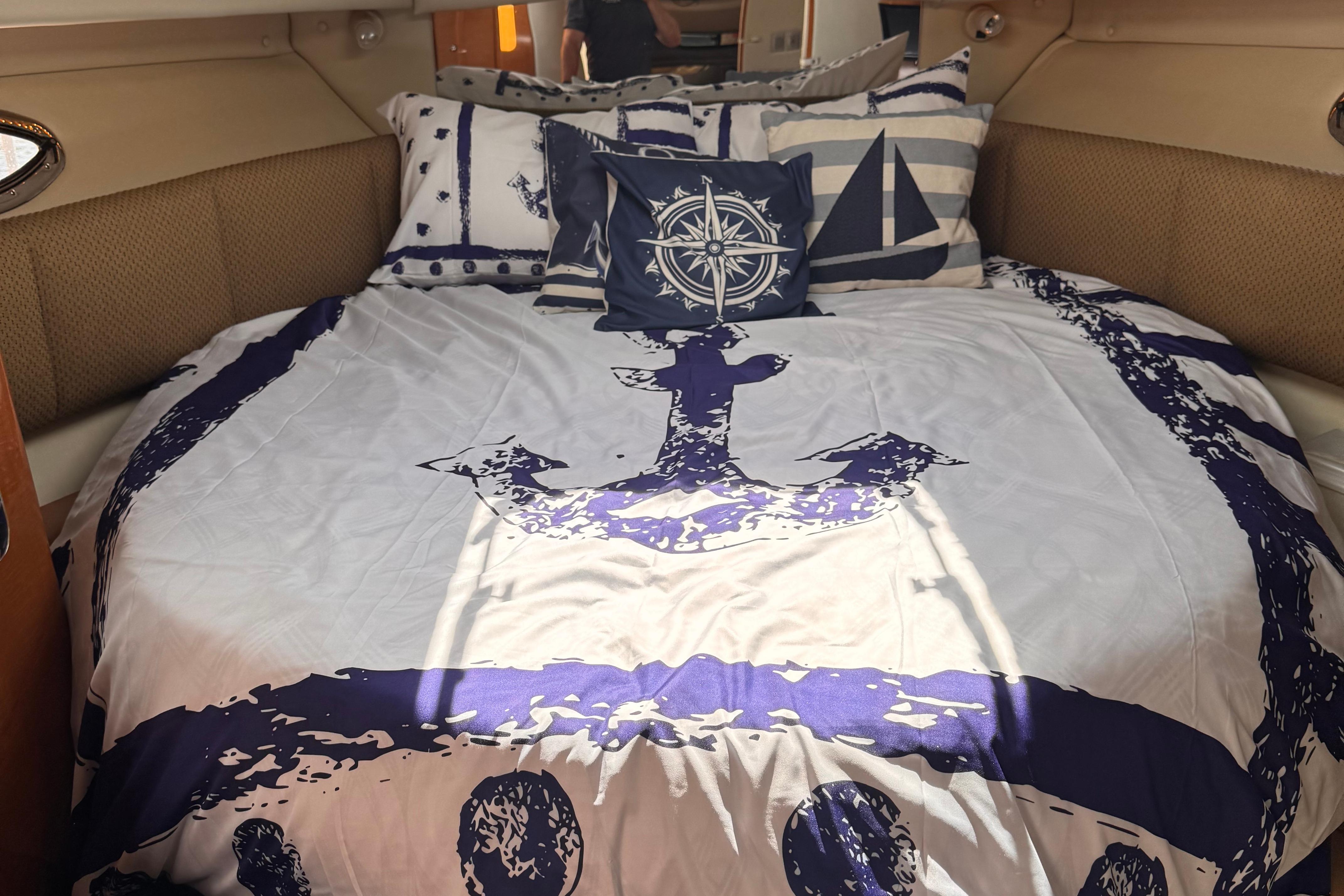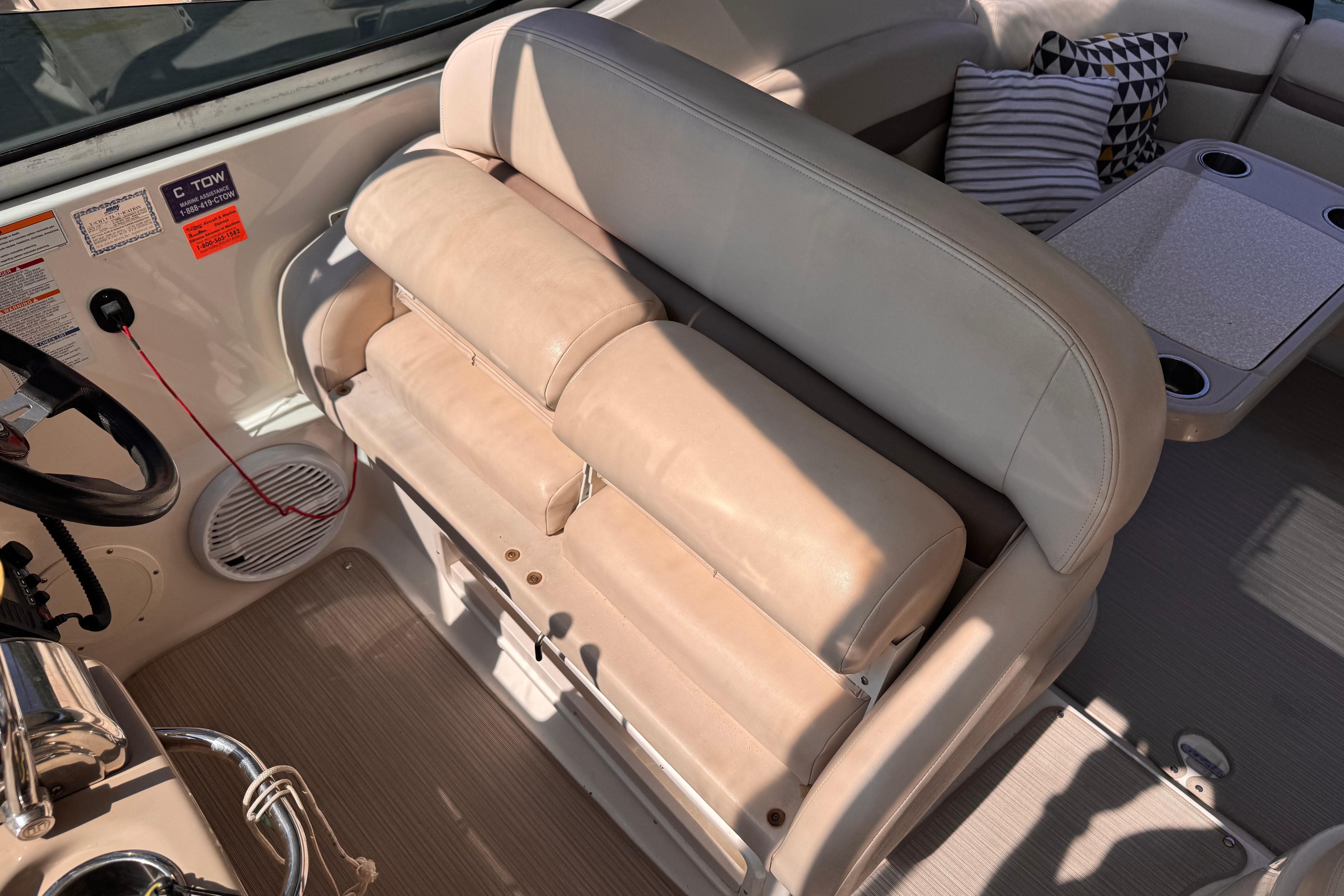 - New rear canvas c/w with new style Elastic Tie-downs 2023 - Additional Bilge pump installed 2023 and all pumps replaced at the same time - Front Bilge pump replaced 2024 - Bow Thruster motor rebuilt 2022 - Bow thruster Blade replaced 2023 - Bow thruster battery replaced 2024 - Shut Off Switch and Fusible Link for Bow Thruster replaced 2022 - House Battery and Gen Set batteries replaced 2023 - Main Engine Batteries replaced 2021 - All Battery cables replaced 2019 - All Electrical Shut Off Switches replaced 2023 - All engine exhaust manifolds and Risers replaced 2022 - Most Sensors replaced on both engines 2022/2023 - On Board Fire Extinguishing System replaced 2022 - Rudders pulled, shafts and bushings inspected and new packing 2022 - Navionics upgrade in 2022 with Garmin 7410 Marine GPS Plotter/radar - New Dome Radar and Depth Sounder 2022 - New Icom VHF IC-M506 Marine radio and Fiberglass antenna 2023 - Bottom Paint last spring - Props, shafts and Trim Tabs had “ Prop Speed “ coatings applied Spring 2023 - Boat is compounded and waxed annually - Full Service carried out by Conrad's Marine November 2024 including winterization and Shrink wrapped. - Some seat cushions and backrests reupholstered in Spring 2023 - Carpets were new in 2021 - Shower Controls at Swim Platform replaced 2023