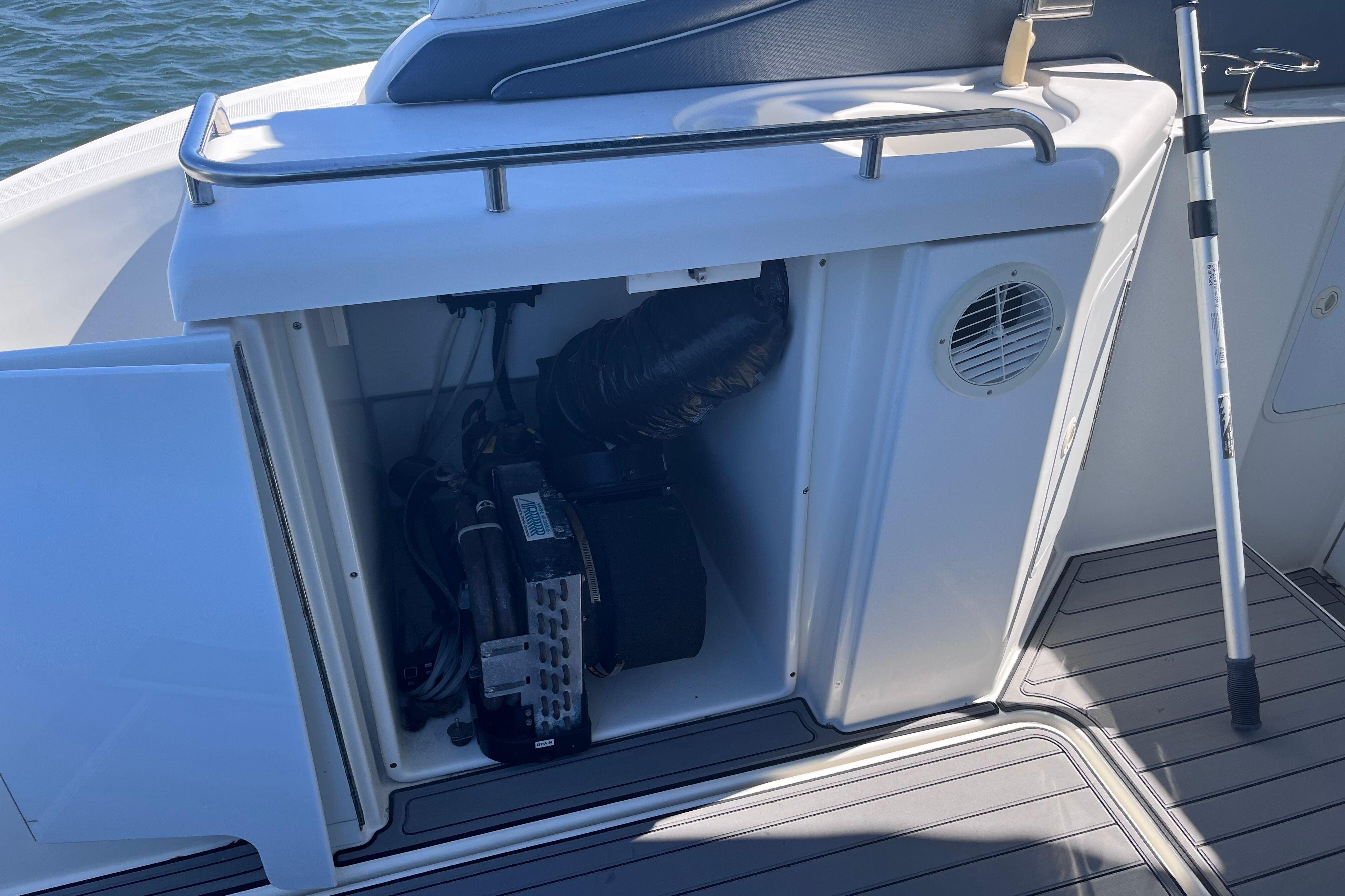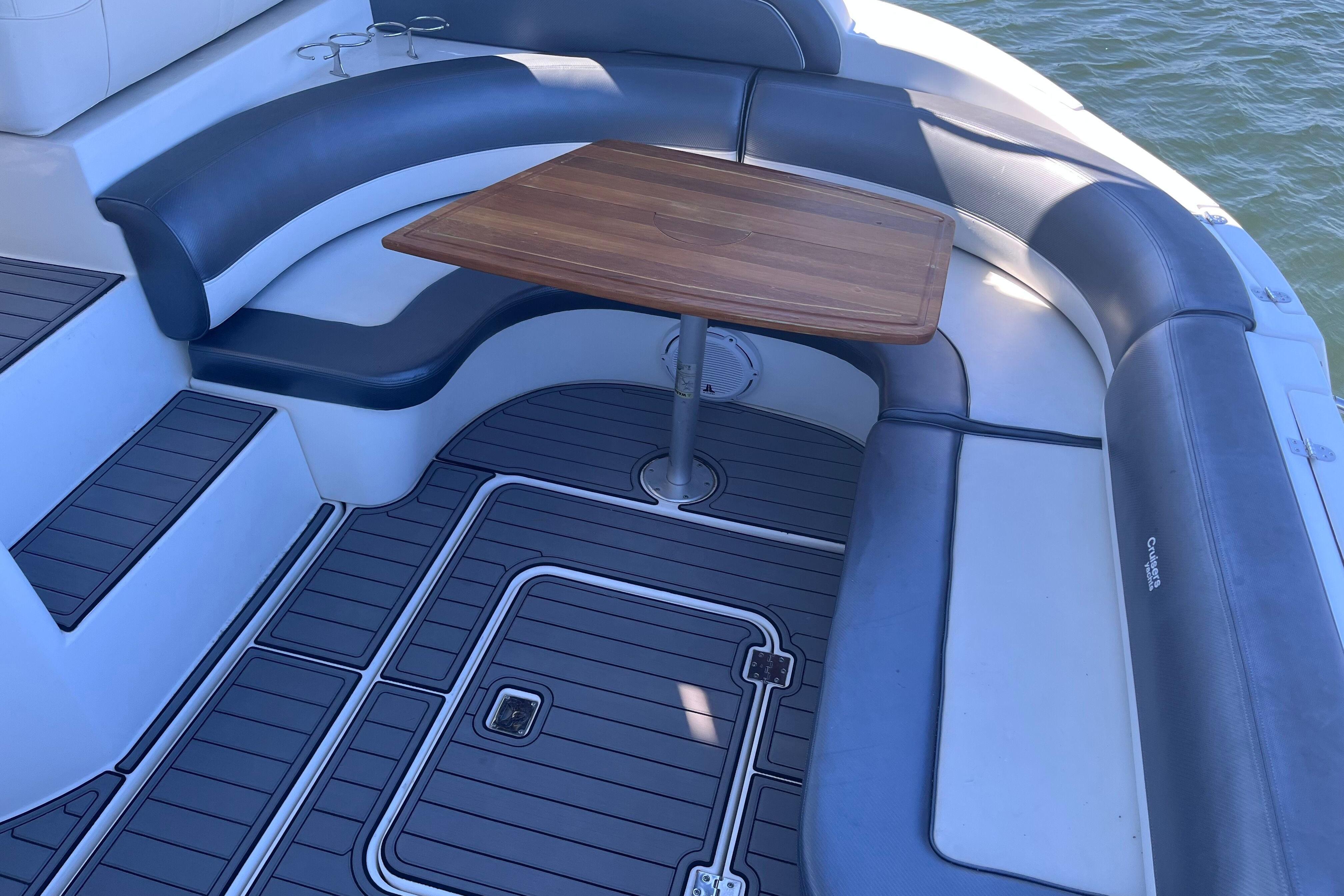 Additional highlights include a private head with shower, integrated swim platform, walk-through windshield for easy bow access, and excellent engine room access via a hydraulic hatch. Built with Cruisers Yachts’ reputation for solid construction and quality craftsmanship, this express cruiser is equally at home on day trips, weekend getaways, or extended cruising.