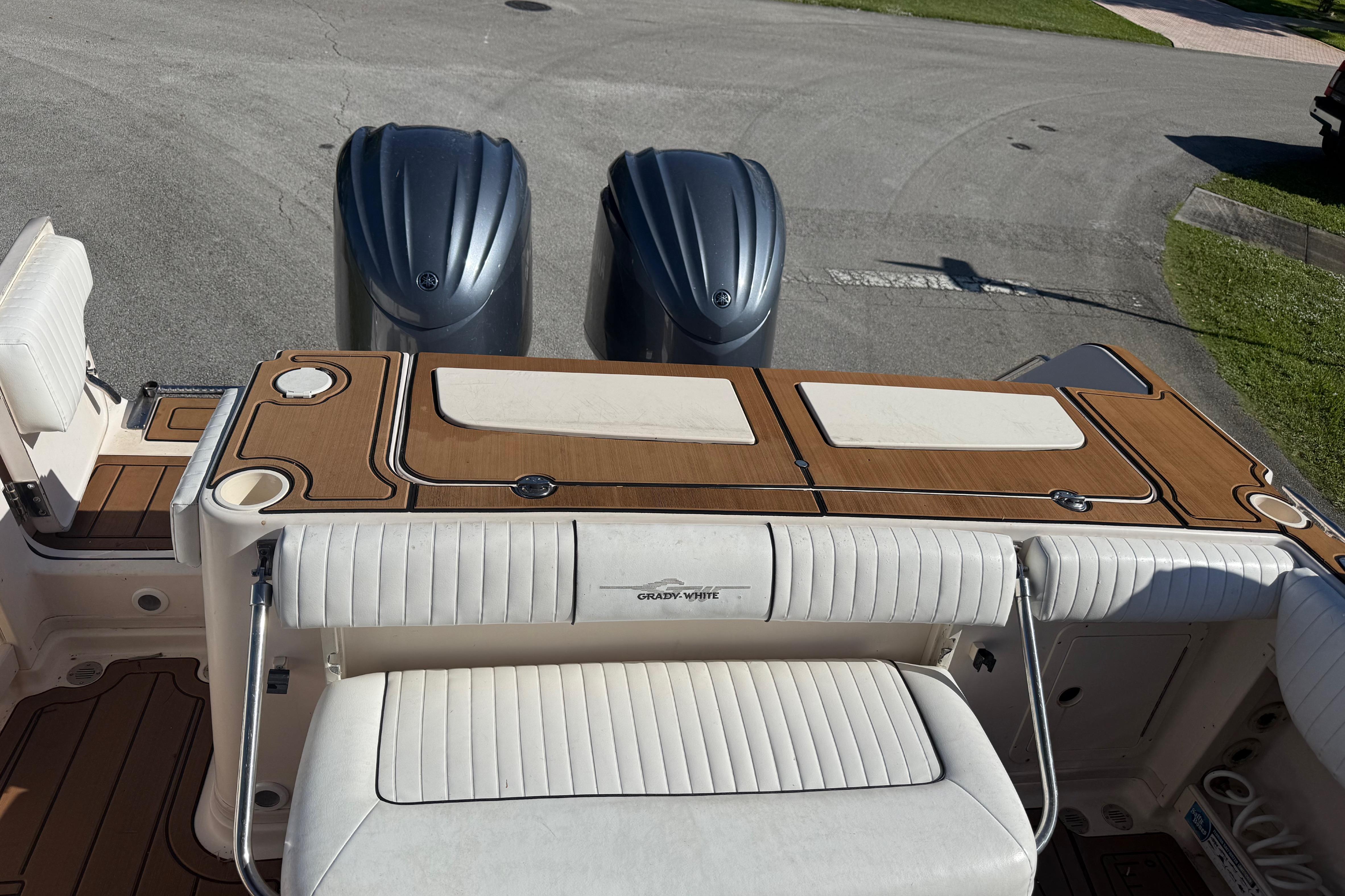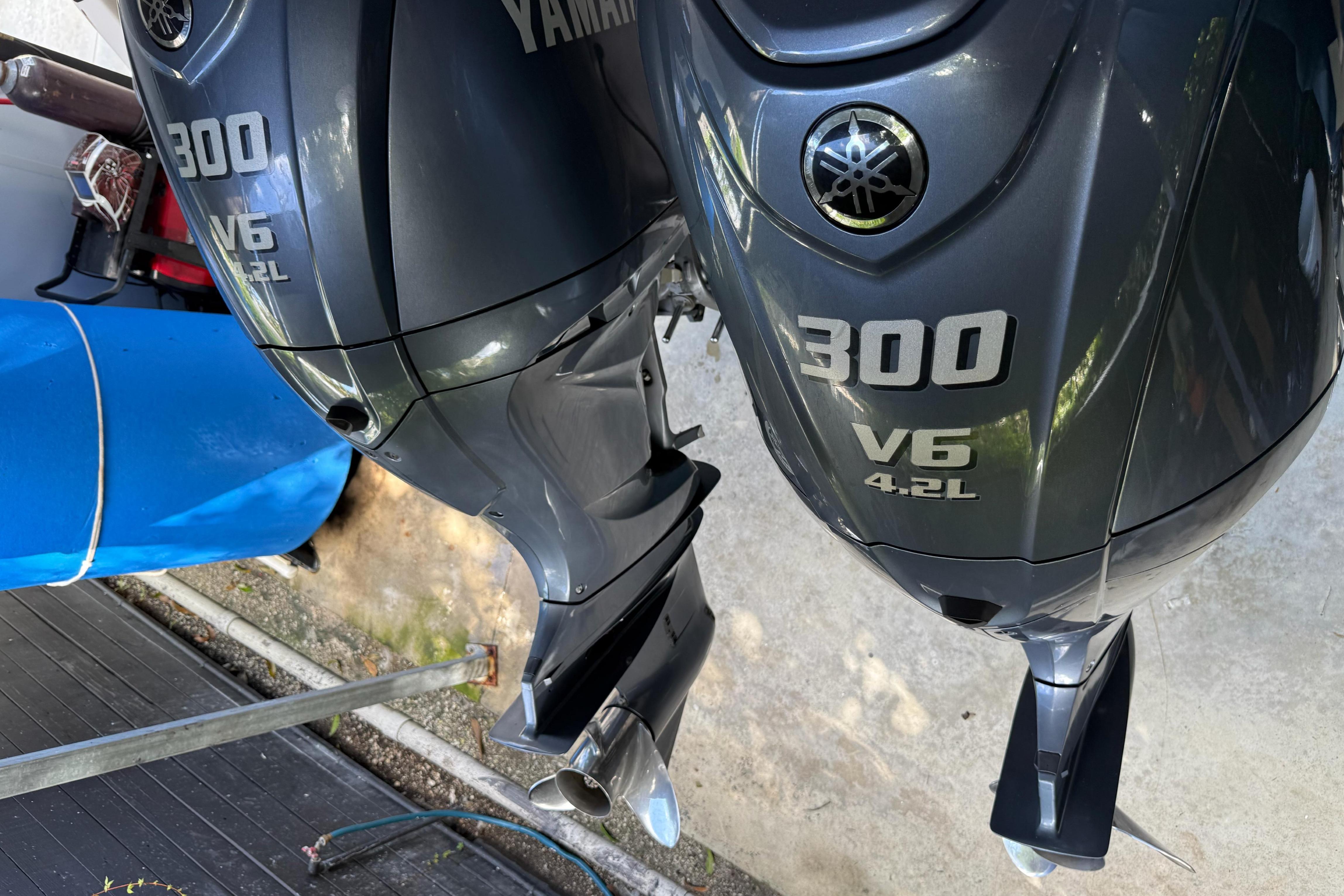 Yamaha twin engines available. Four-stroke engines also available. Max hp displayed as standard.