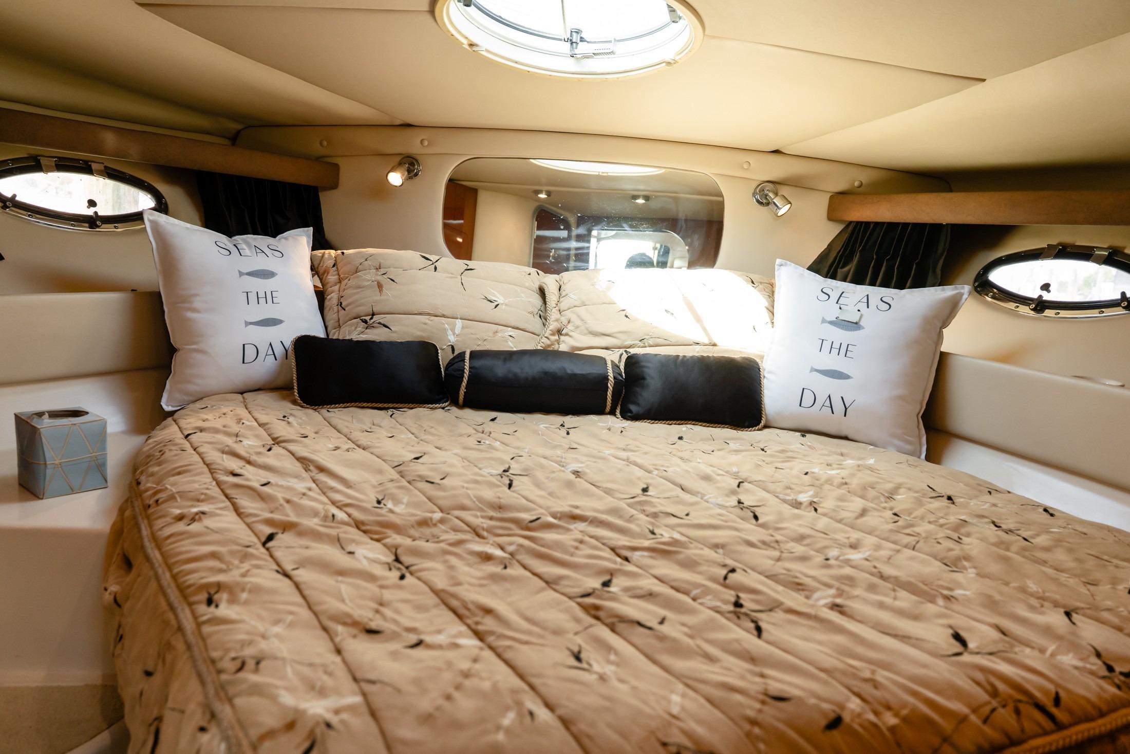 - Berth - Innerspring mattress w/custom comforter, designer pillows & sheets (new)