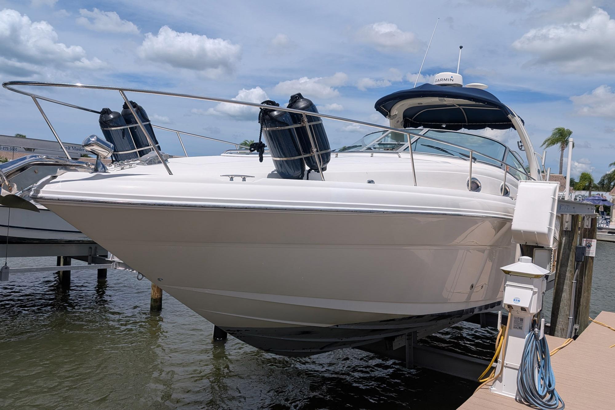 Rounding off a great balance of luxury cruiser with the fishability of an express sportfish the 340 Sportsman wears a lot of hats. 8.1L MerCruisers deliver great performance couple with V-Drives. Featuring a spacious cabin with plenty of room aboard for entertaining and spending the weekend with family, this boat goes a long way towards filling the need of spending time on the water.