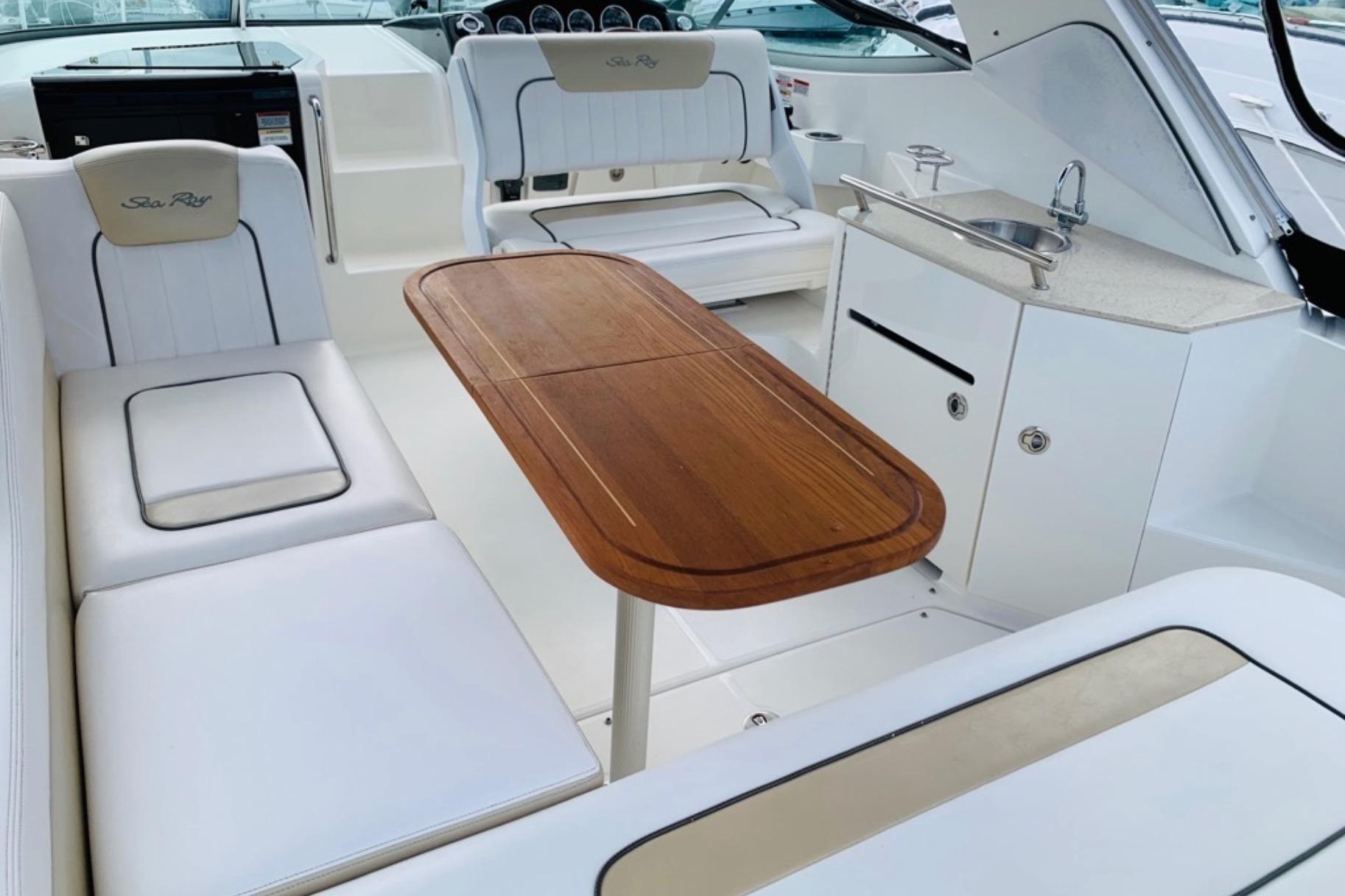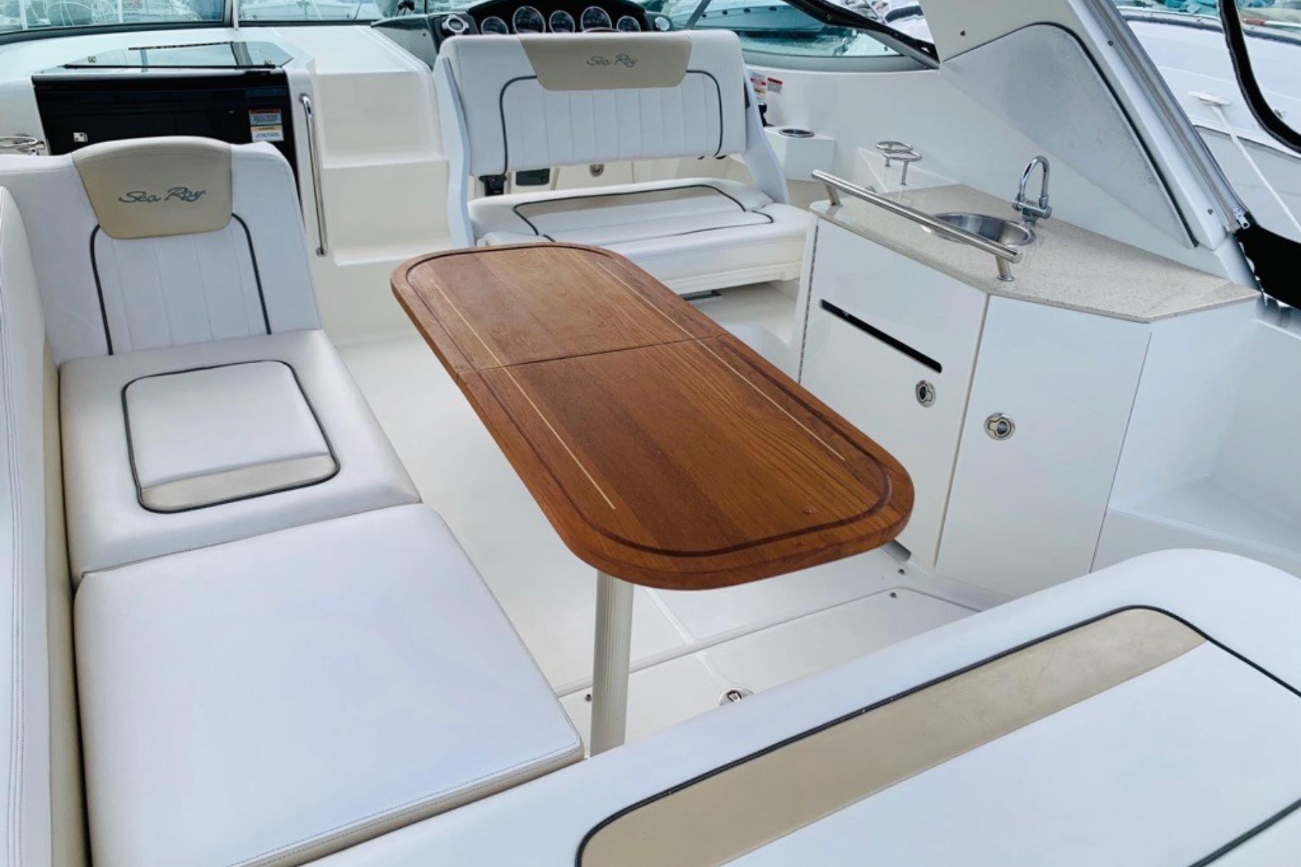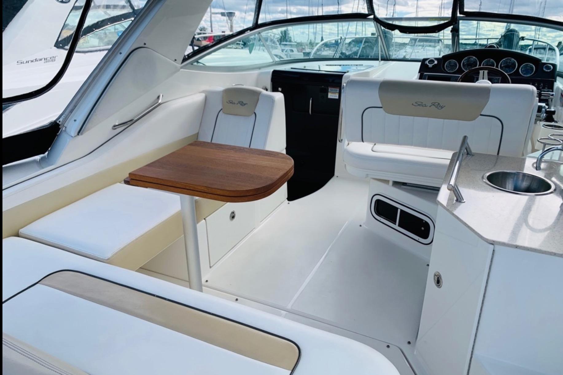 The renowned Sea Ray Sundancer lineup is known for its build quality and above average interior materials, layout and durability.