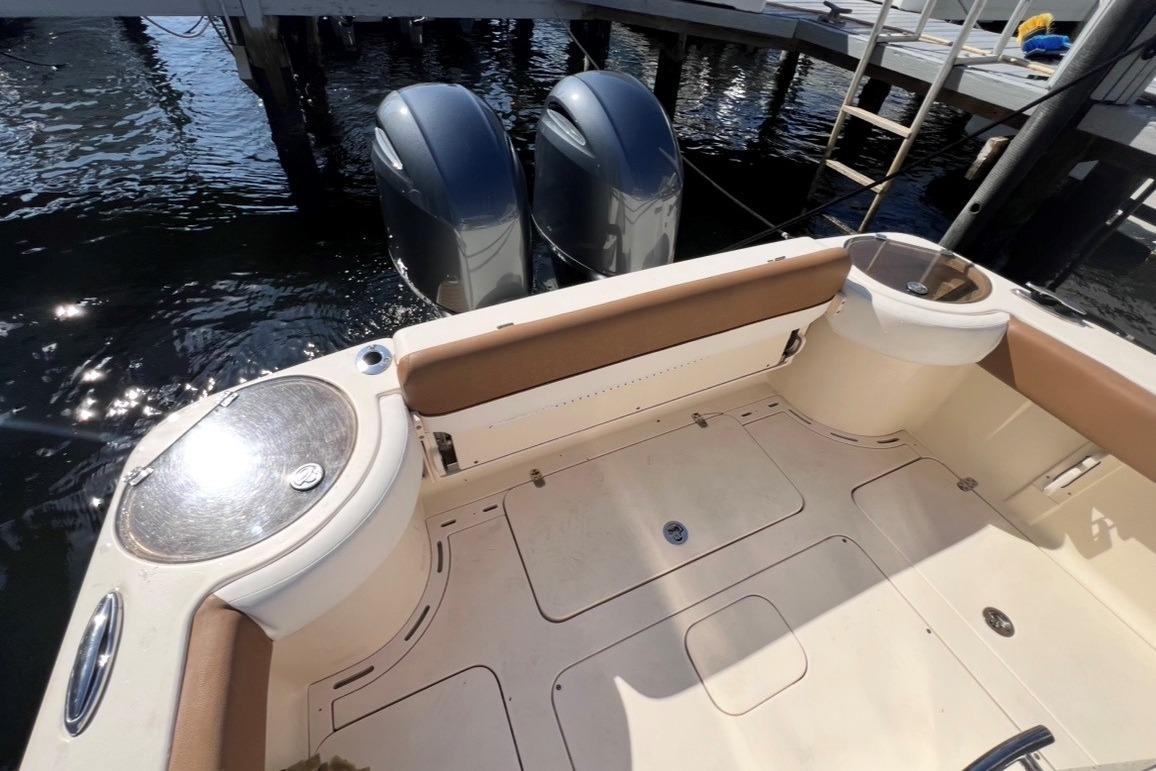 The Scout 275 LXF is a center-console sportfishing boat that seamlessly blends luxury, performance, and versatility. It is equipped with premium fishing amenities including livewells, fish boxes, and rod holders, along with innovative features such as the WaveGate door for easy transom access. Powered by twin Yamaha outboard engines, the 275 LXF delivers a smooth, confident ride. Generous storage, a console head, and advanced electronics make it an excellent choice for serious fishing, entertaining, and comfortable cruising.