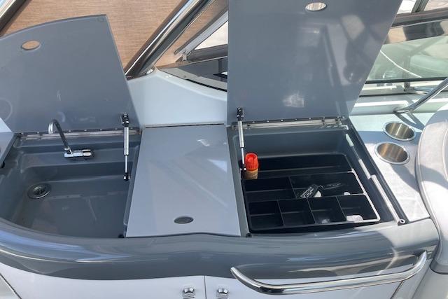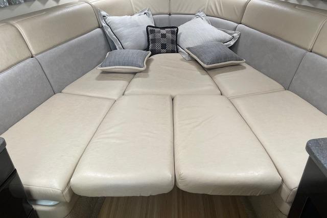 - Aft-facing sun lounge package w/storage below for tables, cushions & four fenders-converts to full-length sunpad