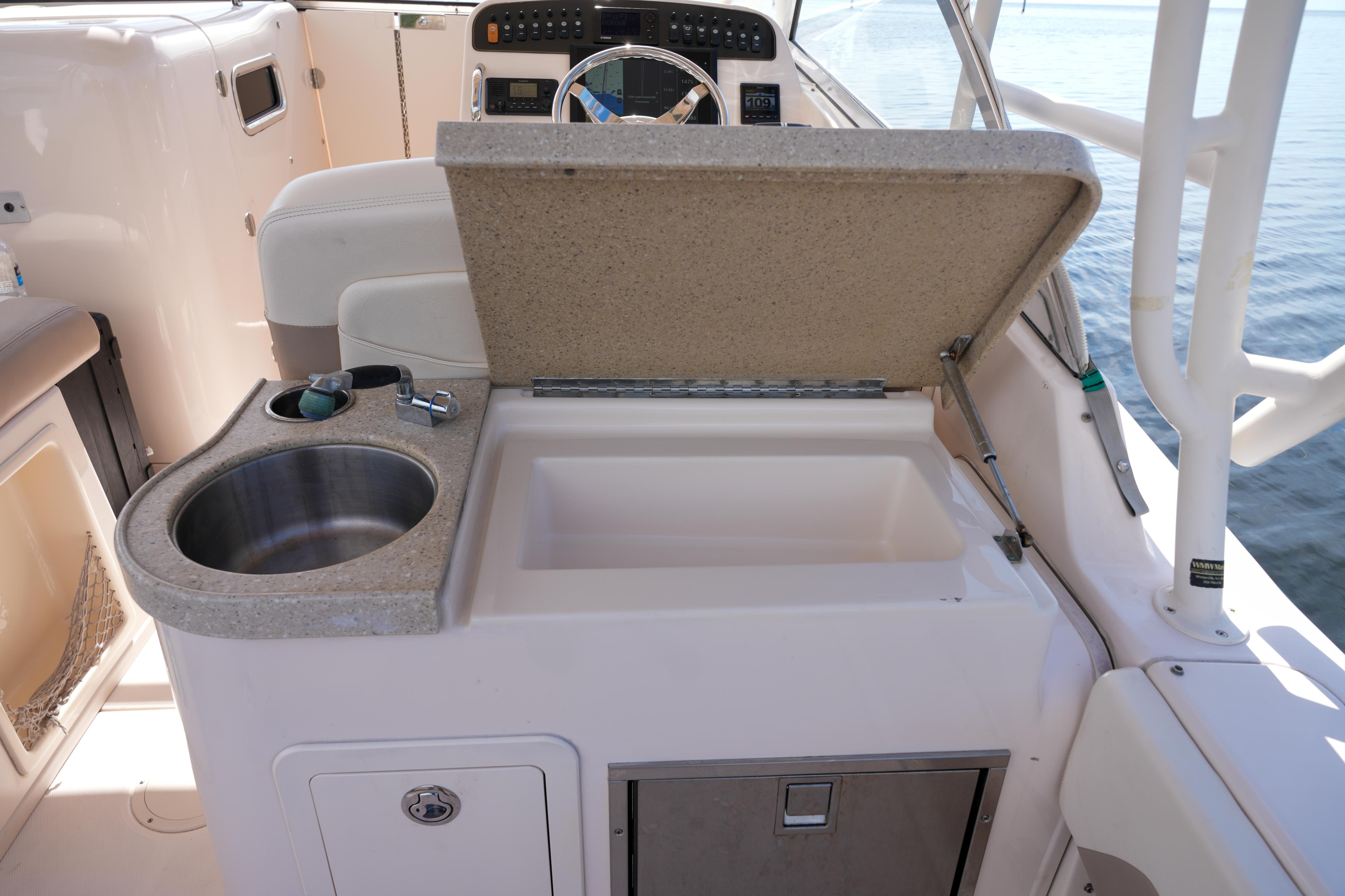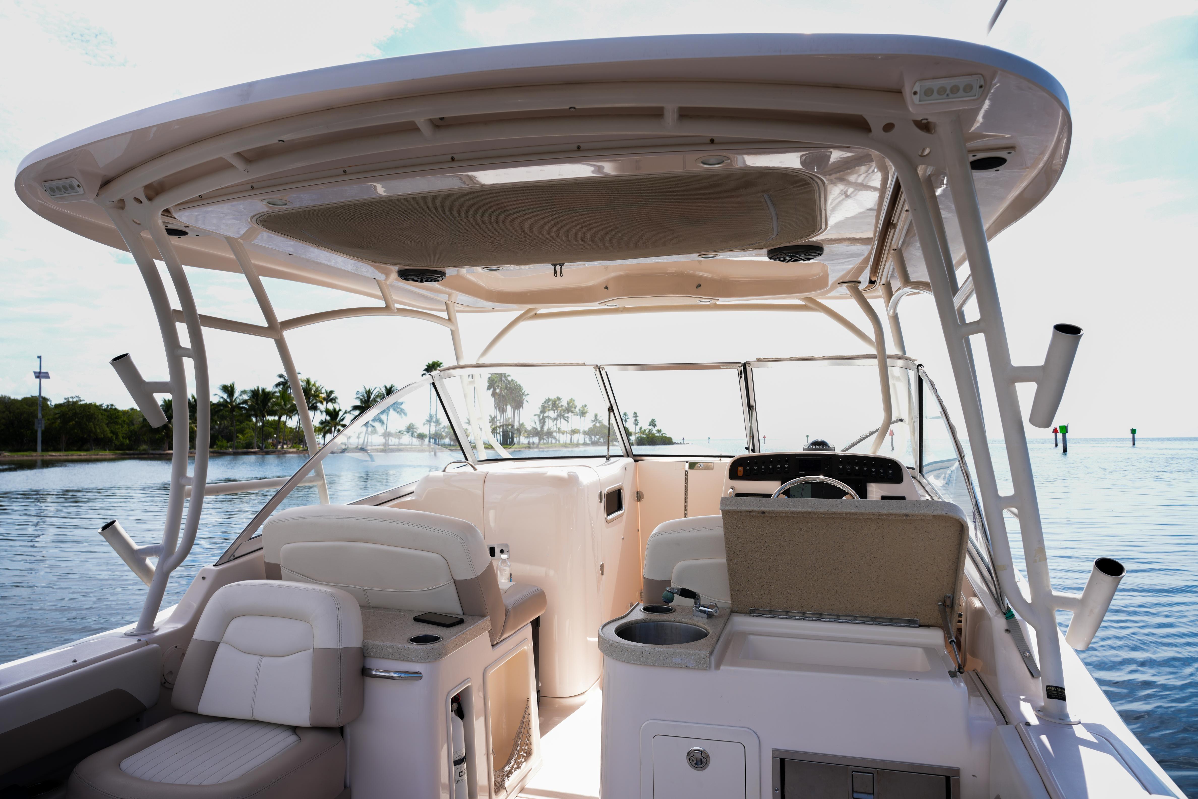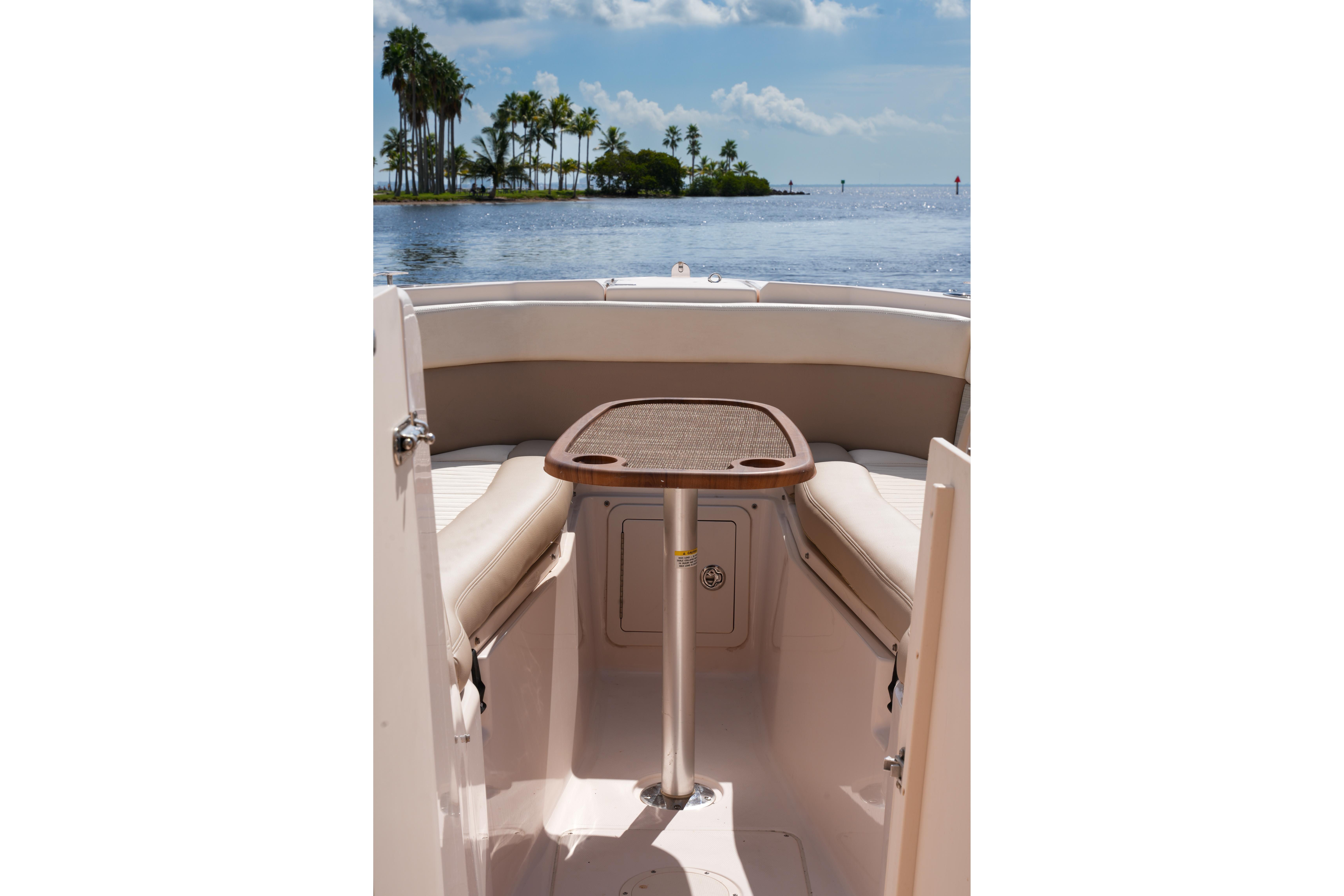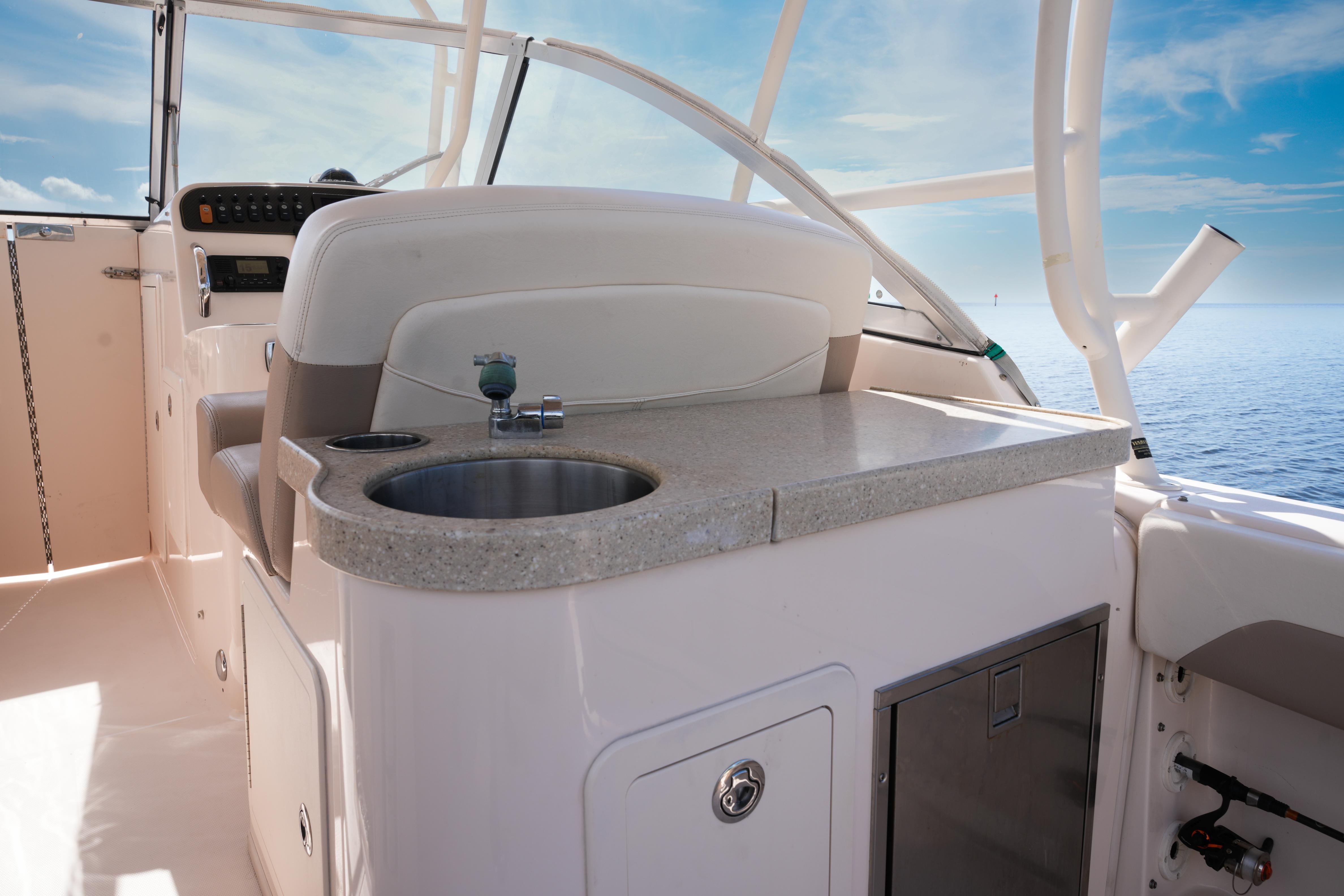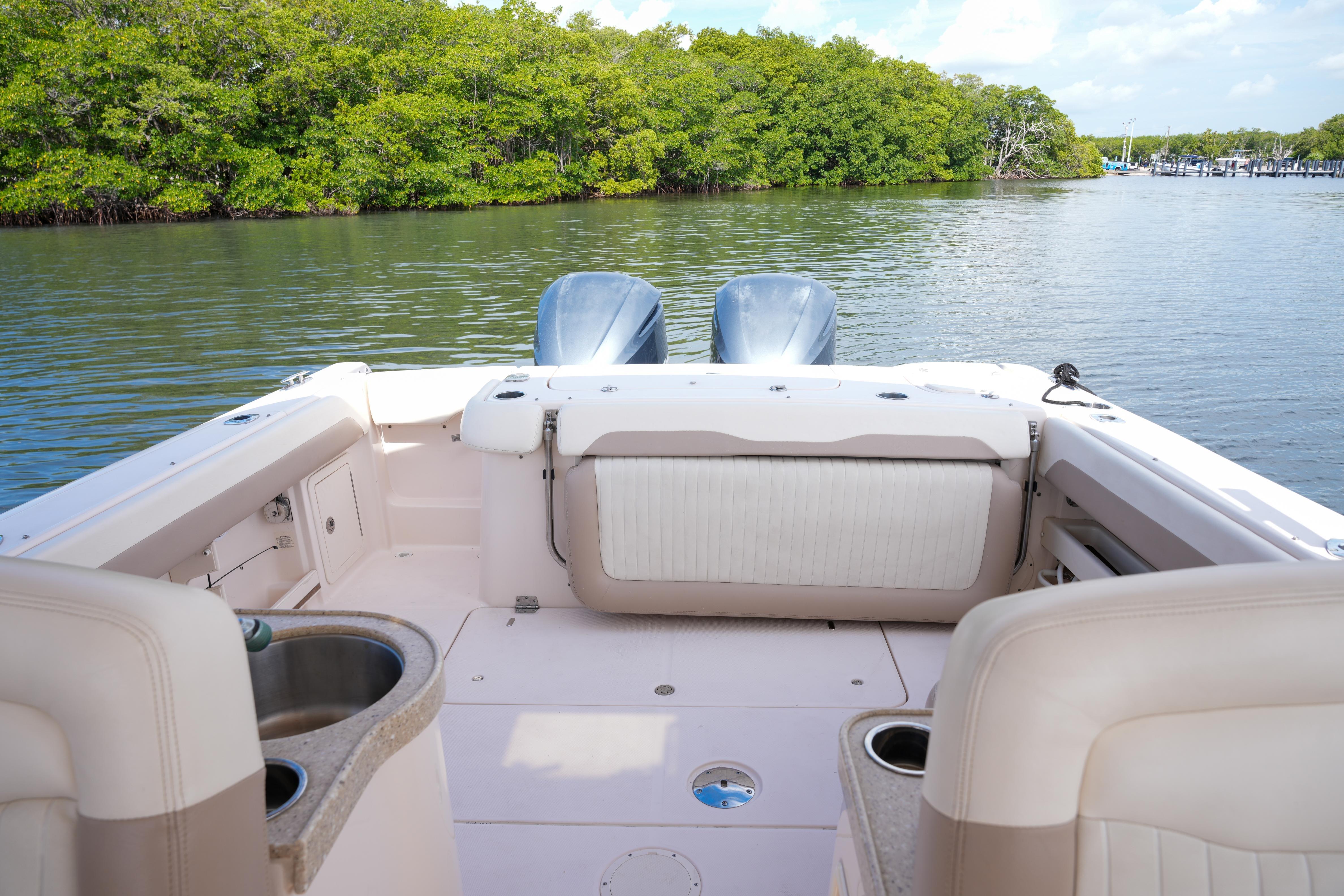 Introducing the 2014 Grady-White Freedom 307, a remarkable walkaround boat that combines elegance with functionality. With an overall length of 30.4 feet, this vessel boasts a robust fiberglass hull designed in a deep Vee shape, ensuring a smooth and stable ride even in choppy waters. Powered by twin Yamaha outboard engines, each delivering an impressive 300 horsepower, this boat promises exhilarating performance and reliability. The Freedom 307 is equipped with a head, providing convenience for extended outings. Designed for comfort and versatility, it offers ample space for relaxation and enjoyment, making it perfect for family adventures or fishing trips. The thoughtful layout and quality craftsmanship of Grady-White ensure that this boat is not only a pleasure to operate but also a joy to behold. Experience the thrill of the water with the Freedom 307, where every journey becomes a memorable escape.