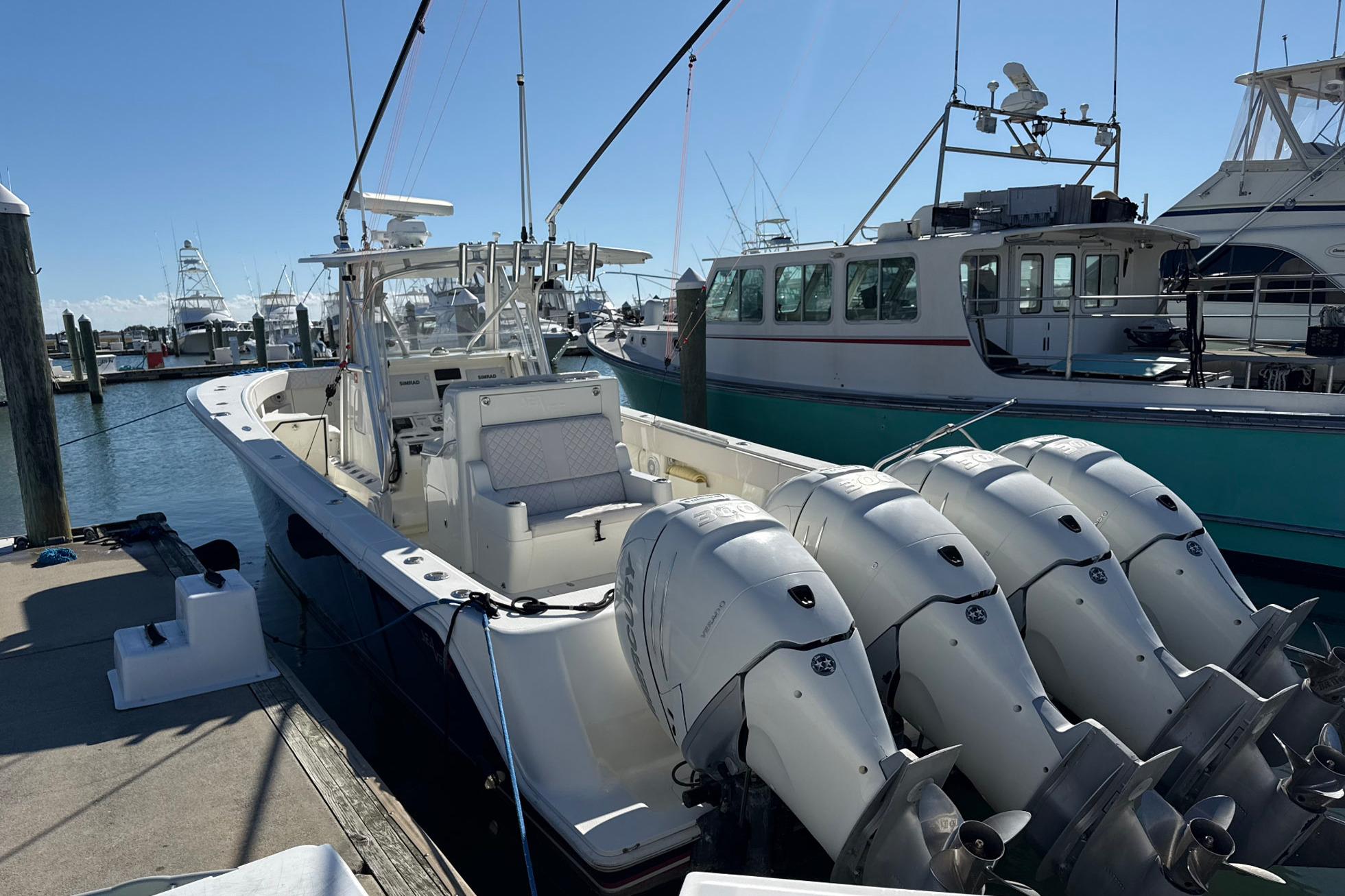 Powered by quad Mercury Verado 300hp outboards, this 39’ SeaVee delivers exhilarating performance with a 37-knot cruise and a top speed of 54 knots. The 390Z’s stepped hull design ensures exceptional efficiency, speed, and handling — even in challenging offshore conditions.