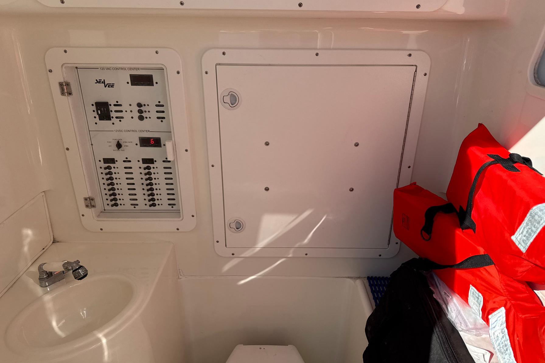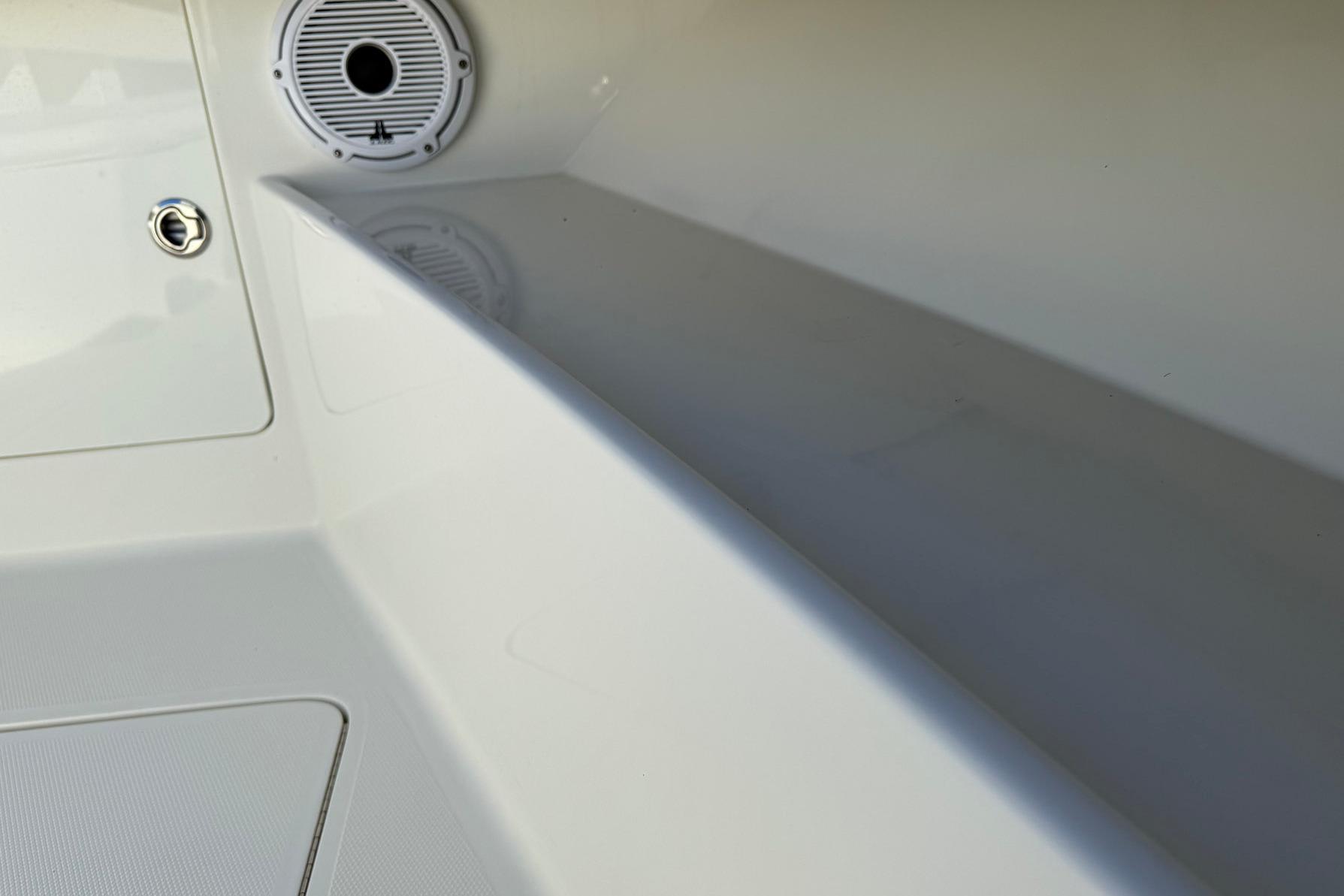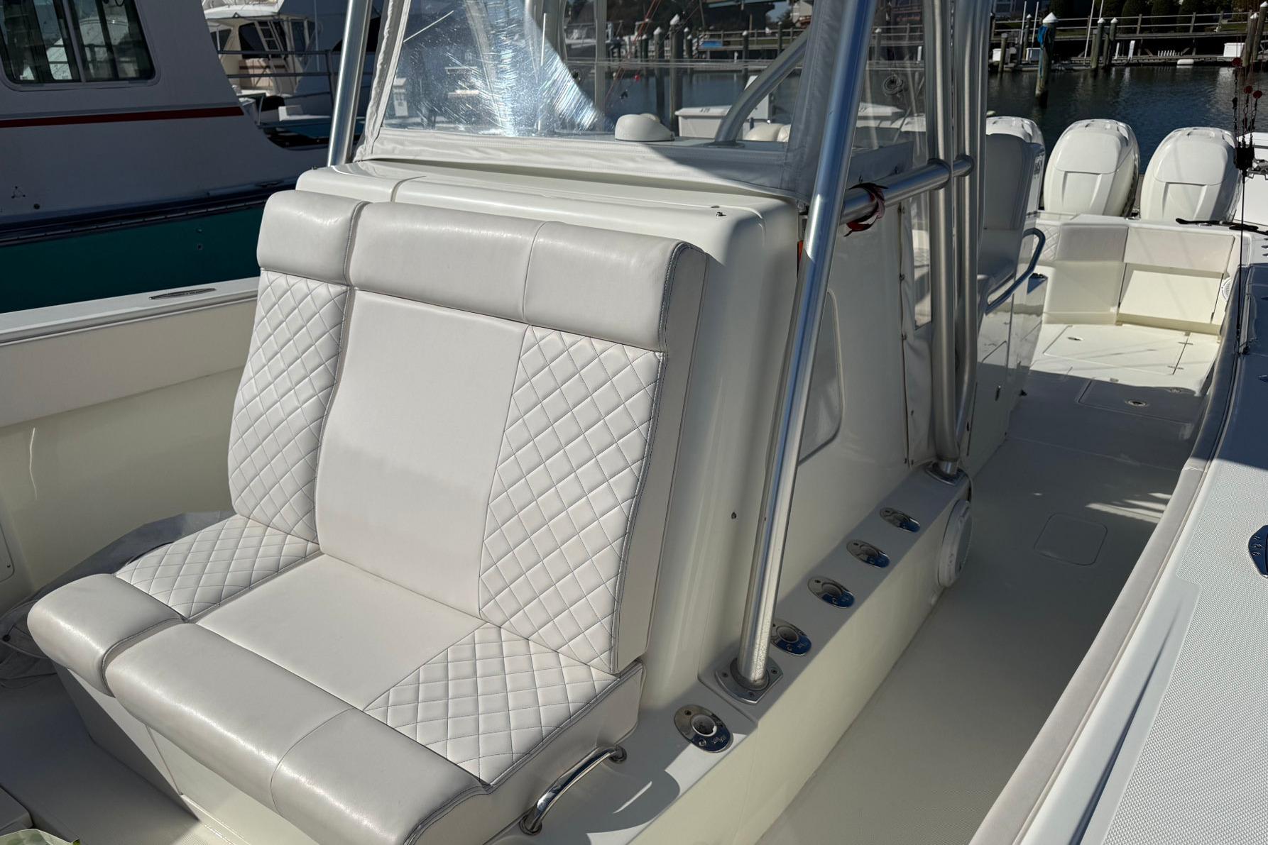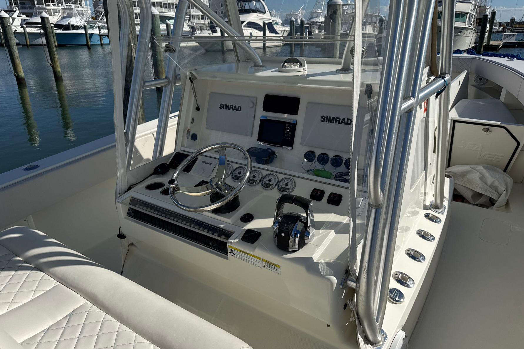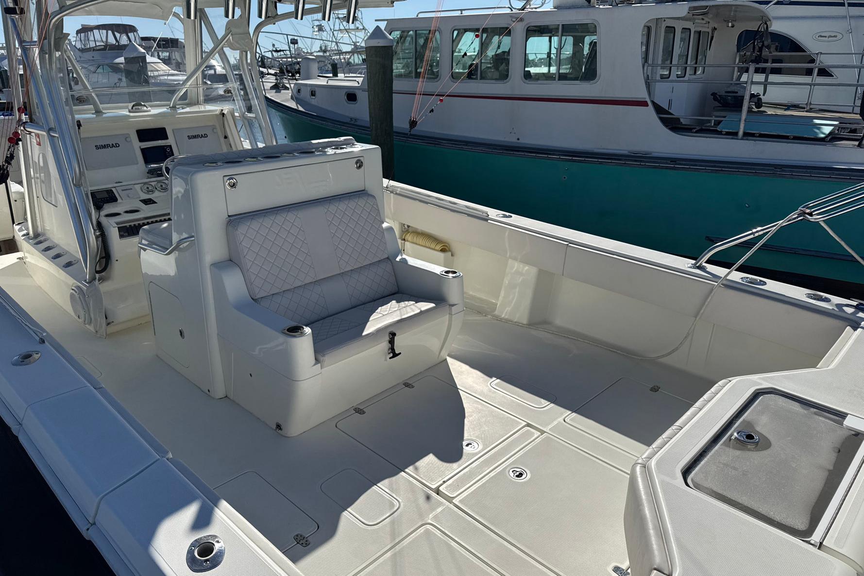 At the helm, you’ll find a full suite of Simrad electronics, offering state-of-the-art navigation and fish-finding capabilities. The thoughtfully designed deck layout provides ample storage, oversized fish boxes, live wells, and rod holders throughout, making it a true tournament-ready fishing machine.